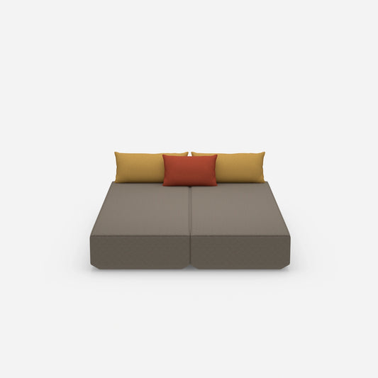 Die Schlafmodule lassen sich leicht erweitern. Lose Rücken- und Seitenlehnen machen daraus ein vollwertiges Sofa. So entsteht aus einer Liegefläche schnell ein bequemer Sitzplatz.