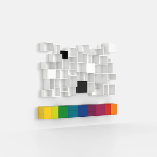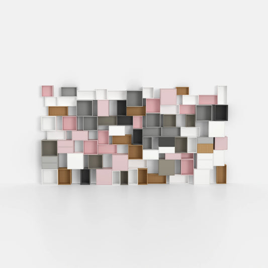 Mit dem Cubit® Konfigurator gestalten Sie Ihre Regalwand nach eigenen Wünschen. Wählen Sie Farben, Materialien und Funktionen wie Schubladen oder Türen.