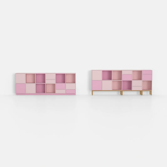 Durchdachtes Modulraster mit Schubladen, offenen Fächern und Türen schafft Ordnung. Farben und Materialien lassen sich an den Wohnstil anpassen.