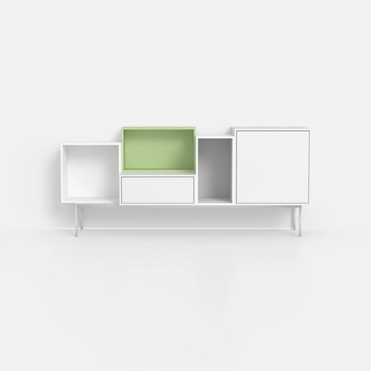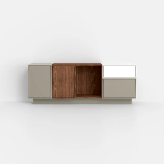 Unser Sideboard kombiniert modernes Design mit durchdachten Funktionen. Die Modulvielfalt mit offenen und geschlossenen Modulen ermöglicht eine strukturierte Aufbewahrung.