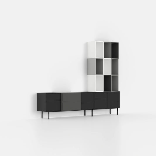 Jeder Wohnraum hat seine eigene Architektur. Gestalten Sie Ihr TV-Regal nach Maß! Wählen Sie Farben, Module und Zubehör passend zu Ihrem Stil.