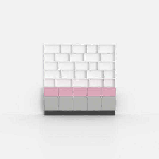 With Cubit, every piece of furniture consists of precisely fitting modules. This allows you to configure a shelving unit with doors exactly to your requirements! Regardless of whether you prefer a bookcase with doors, a drawer module or a combination of the two.