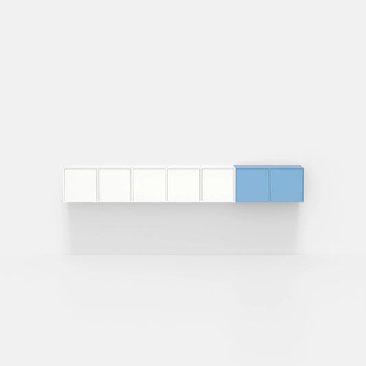 Combine your freestanding bookcase with matching hanging shelves with doors - ideal for small rooms.