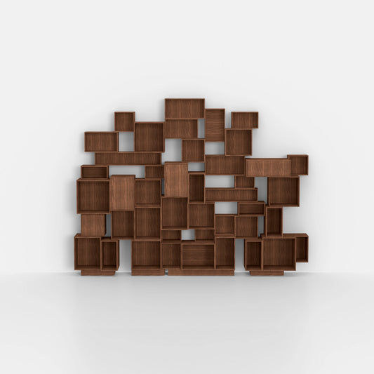 Our modular bookcase is ideal for the study, dining room or as an eye-catcher in the living room. Each of our shelves can be customised! Add shelf modules, combine open compartments with a bookcase with doors or integrate a drawer for extra storage space.