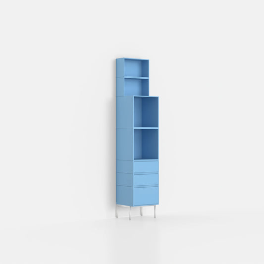 This innovative modular product makes optimal use of limited space. It can be freestanding, wall-mounted, or combined with a sideboard.