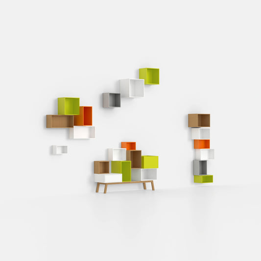 Cubit® shelves are available in various colours and materials! They can be configured modularly: