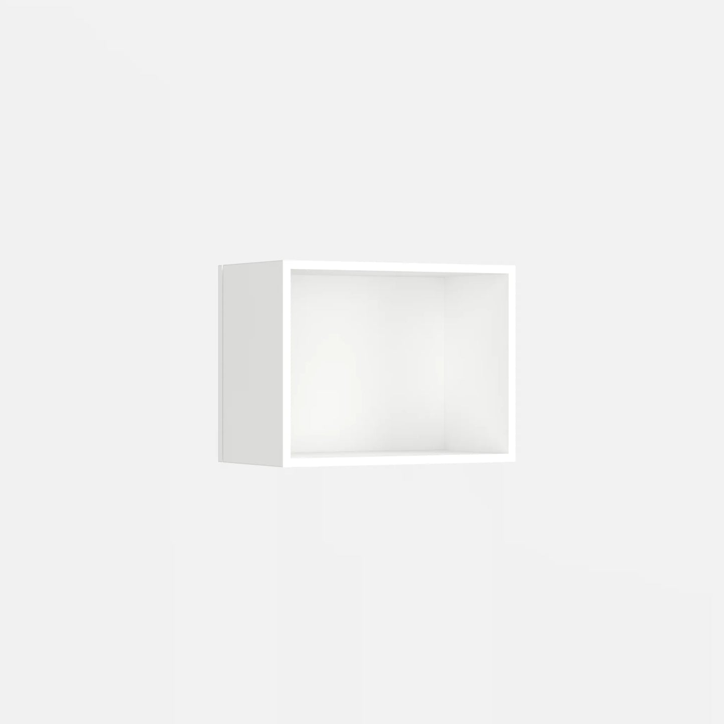 - The solid rear wall of the shelving system is made of 23 mm MDF.