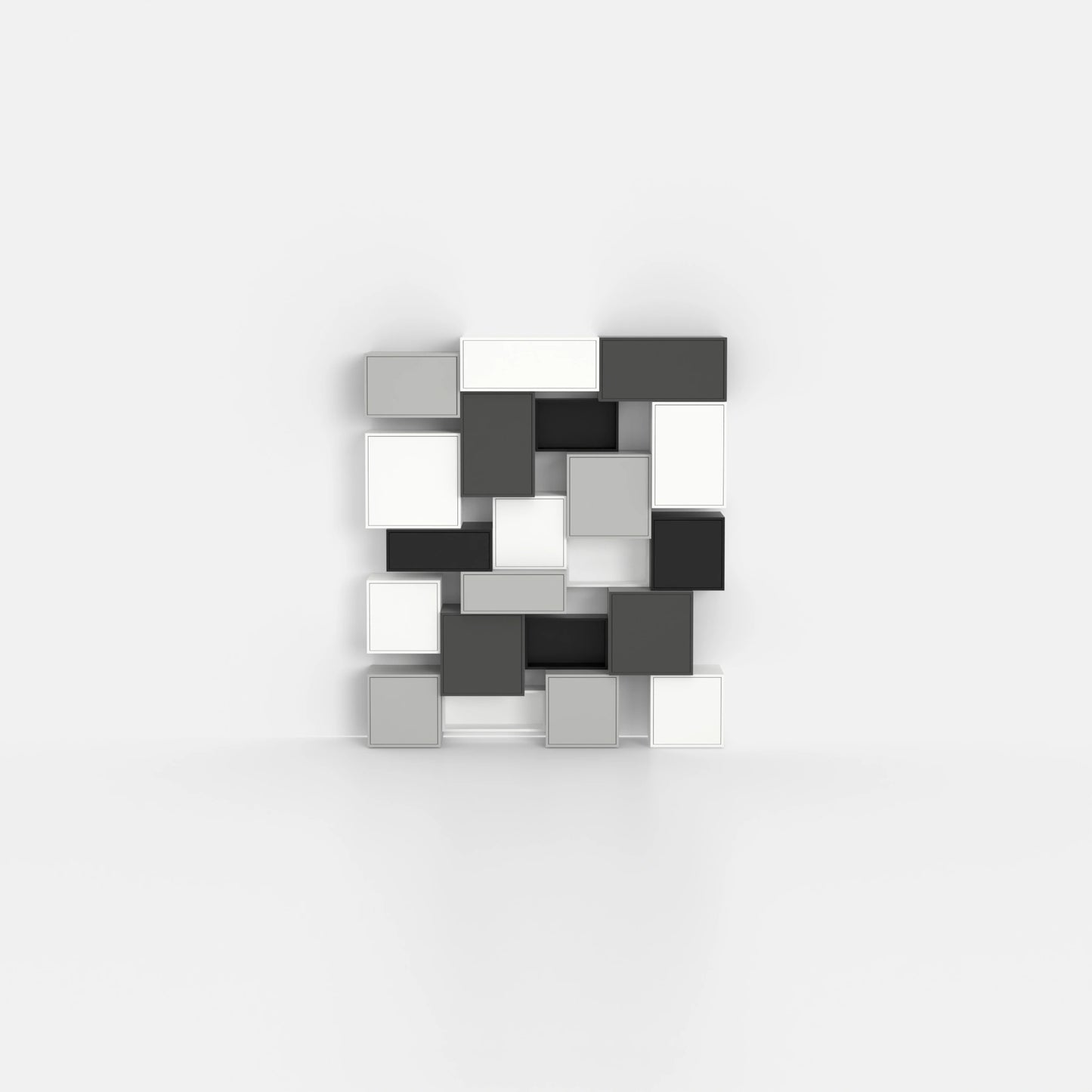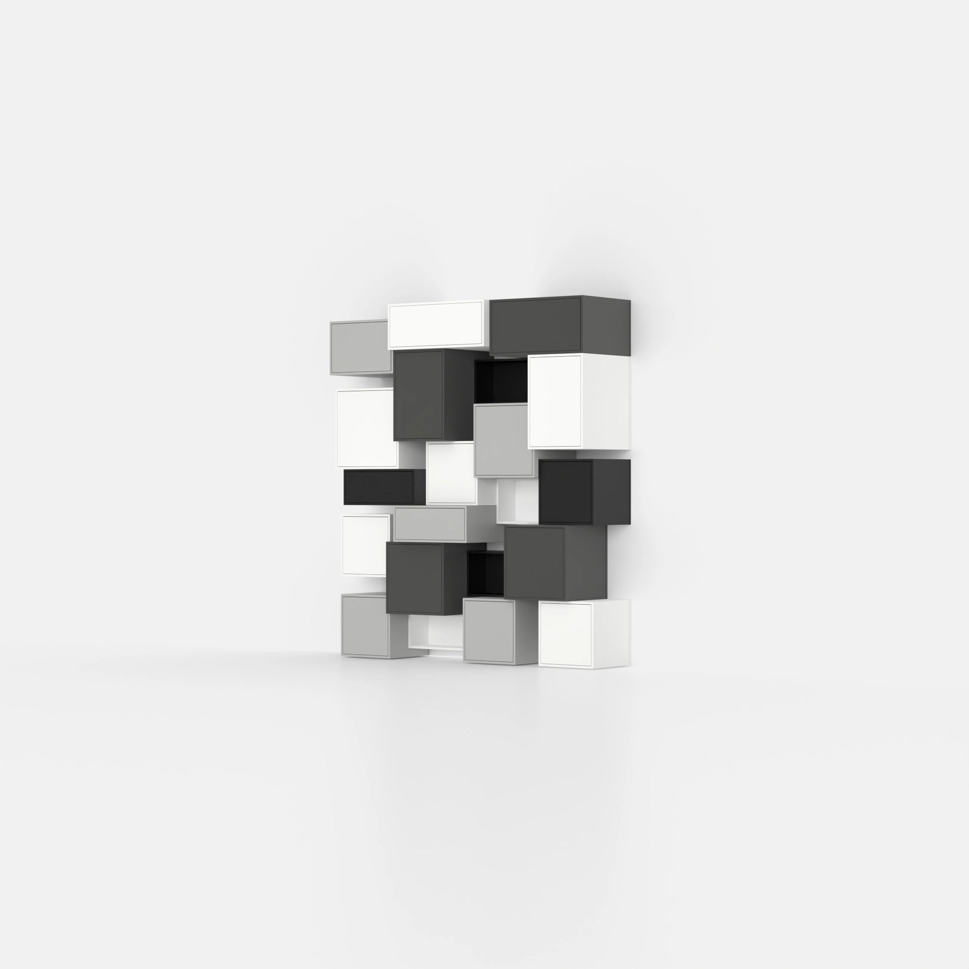 The RK1025 door shelf changes the way you organise your rooms. At 156 cm high, 136 cm wide and 41 cm deep, it creates order with 21 practical modules. Do you need more structure? This shelf meets exactly that need.