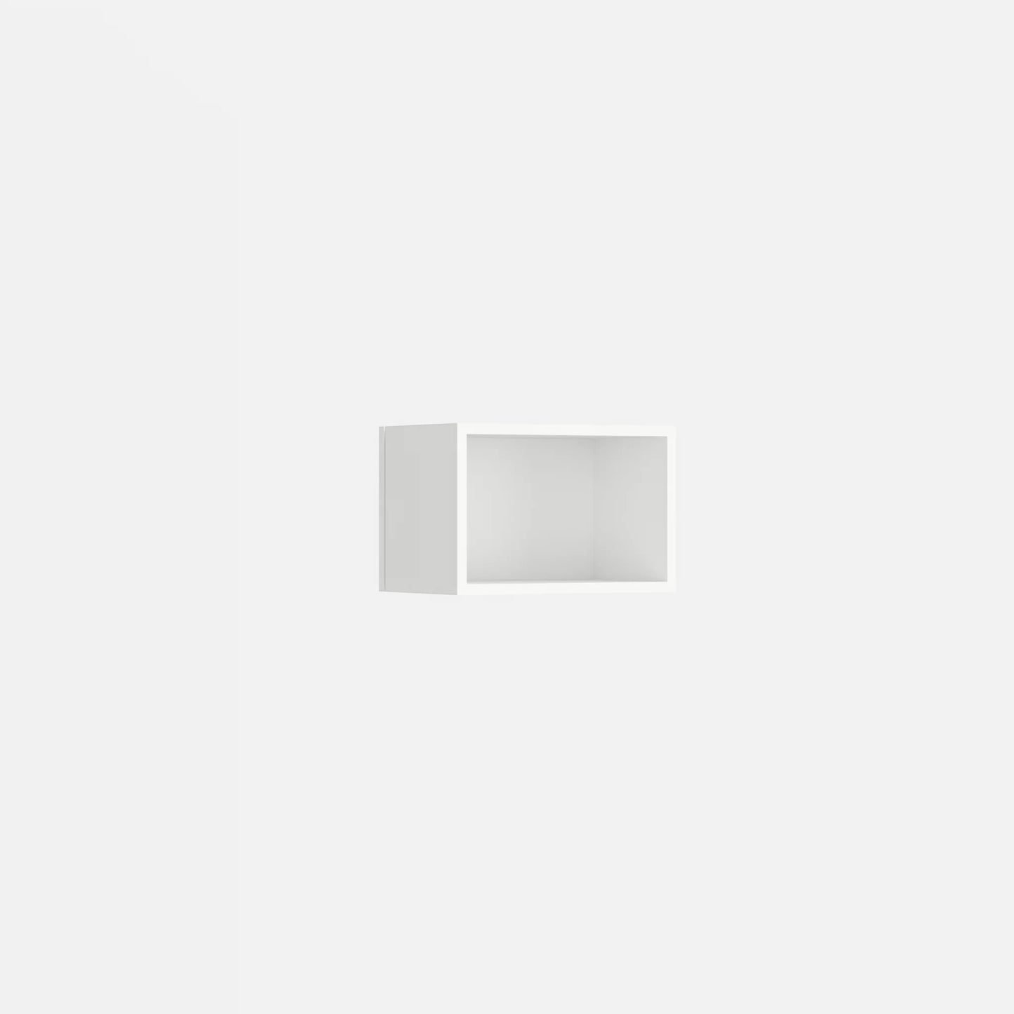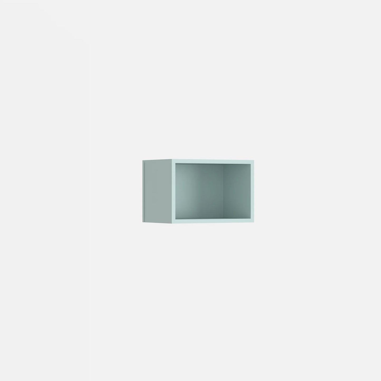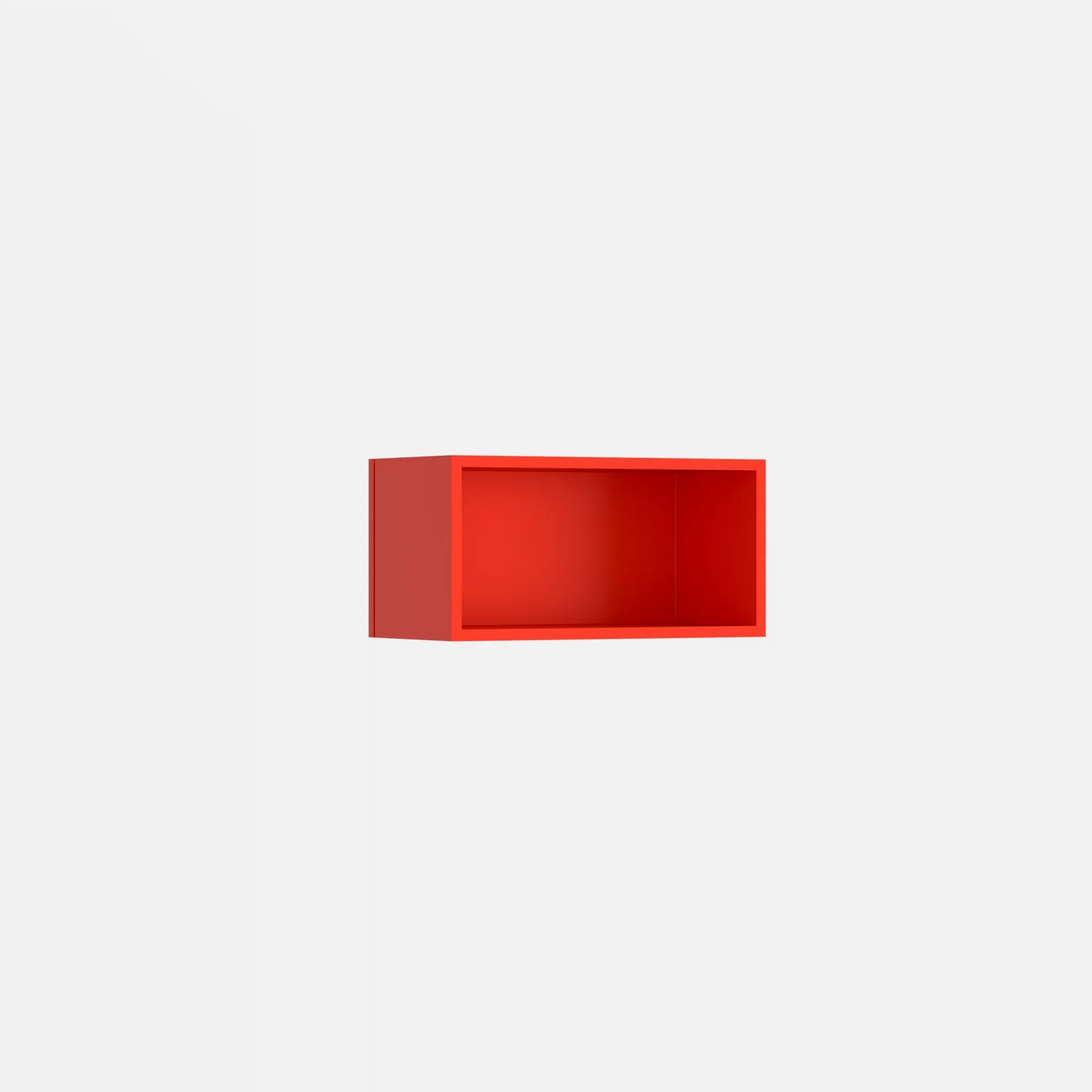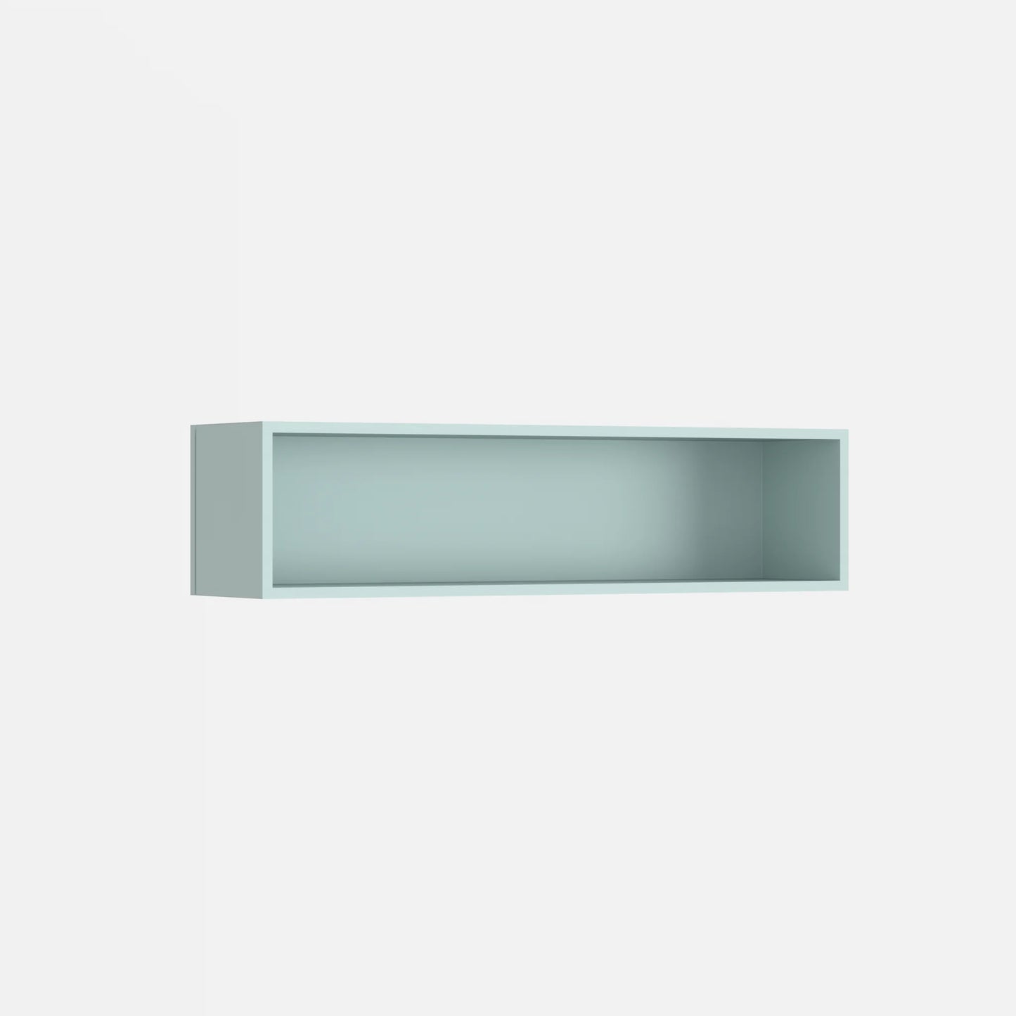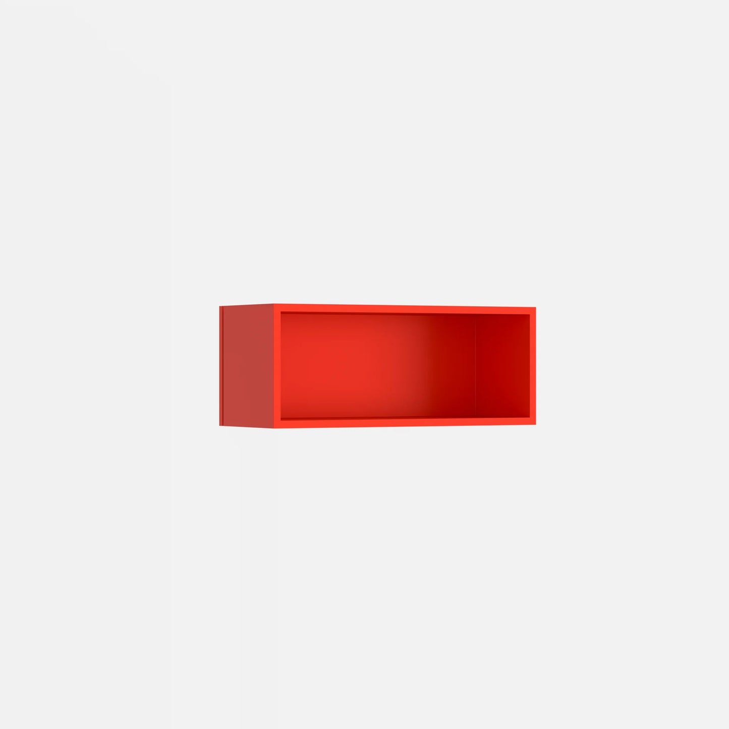 - The solid rear wall of the shelving system is made of 23 mm MDF.