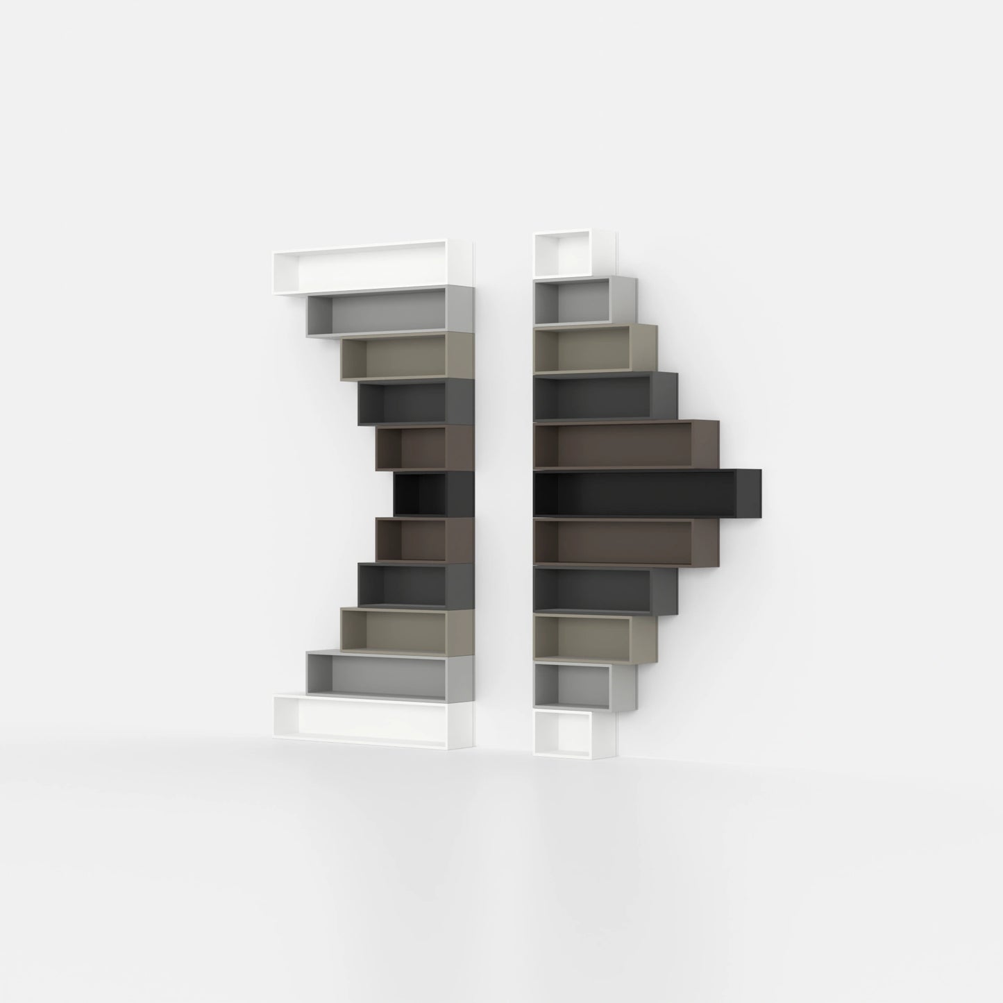 Choose from colors such as white, light grey, fango grey light, dark grey, fango grey and black. These options allow you to combine the shelf harmoniously with your room design or use it as an eye-catcher.