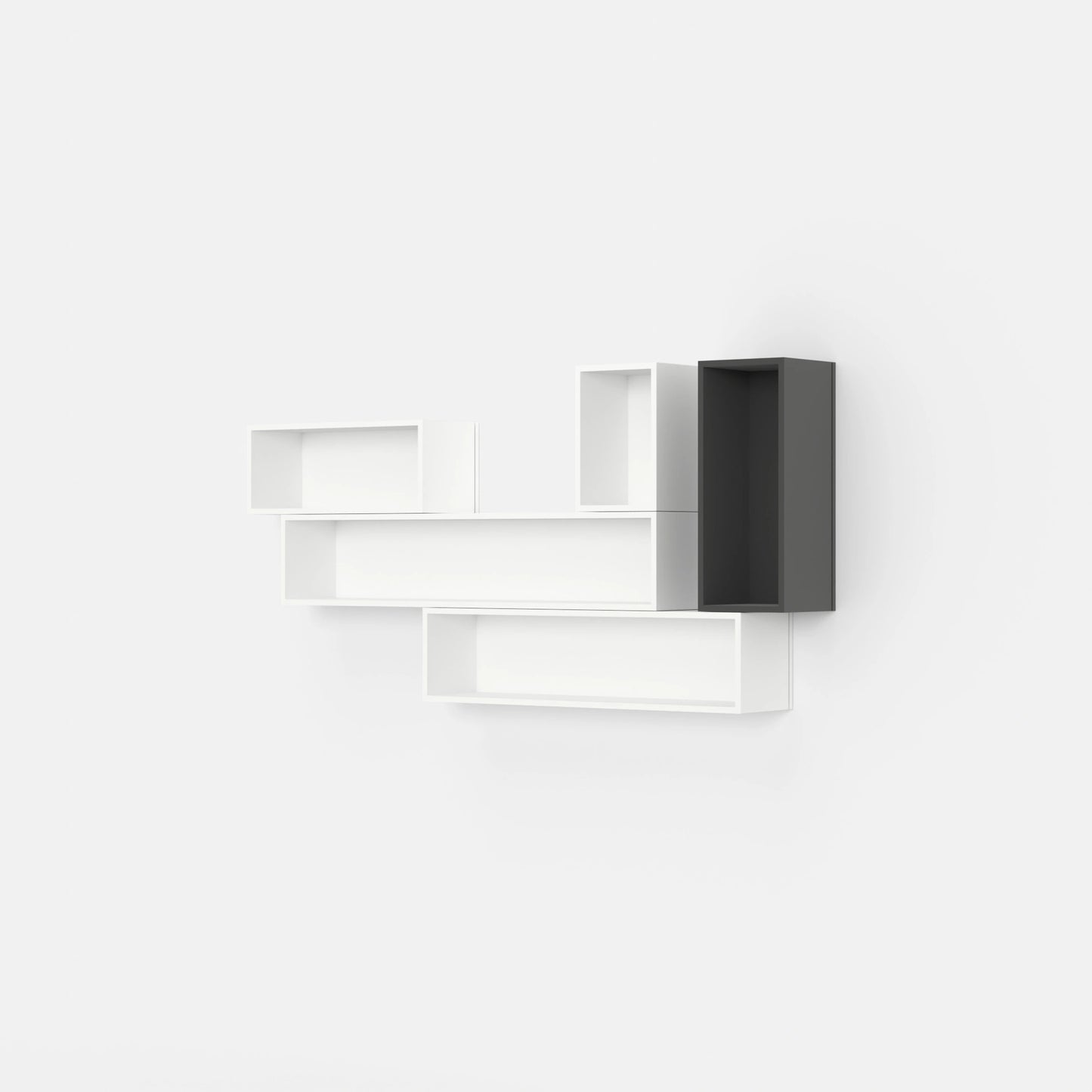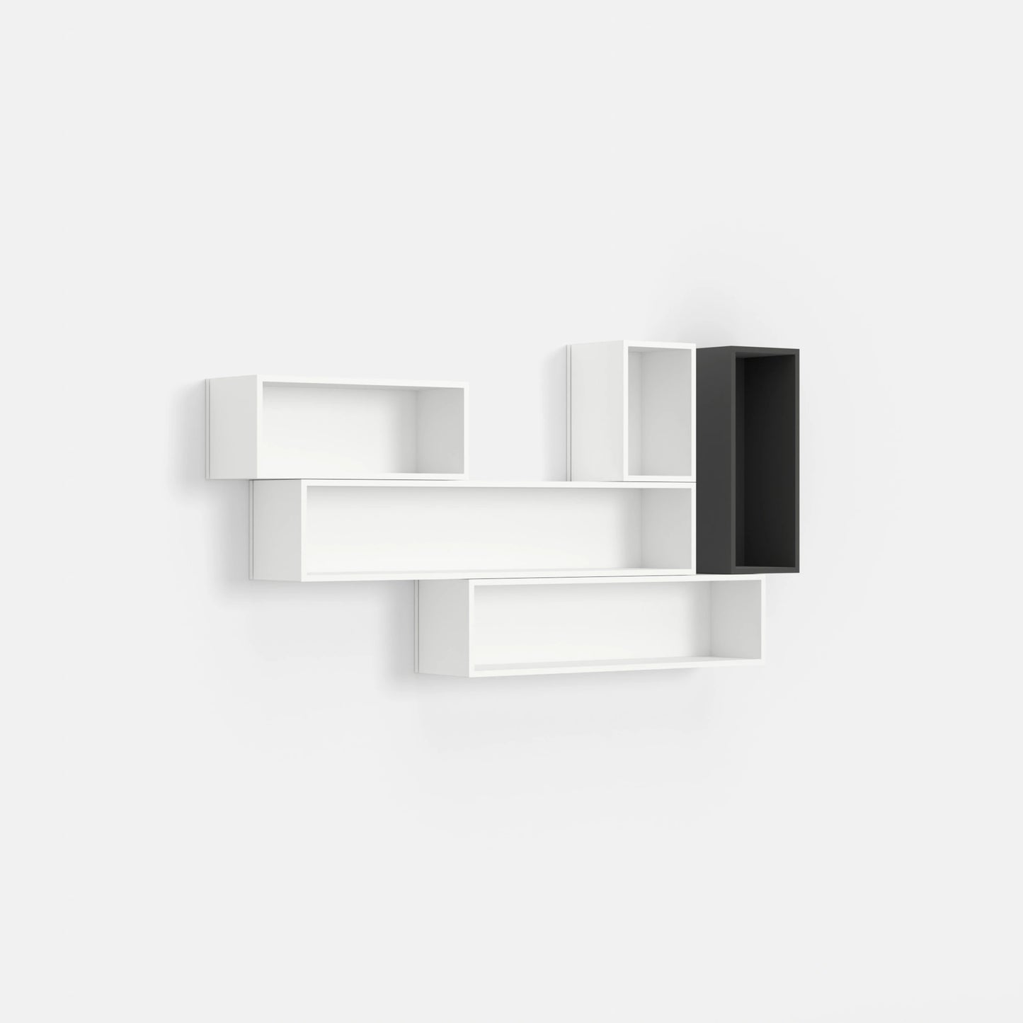 • The solid rear wall of the shelving system is made of 23 mm MDF.