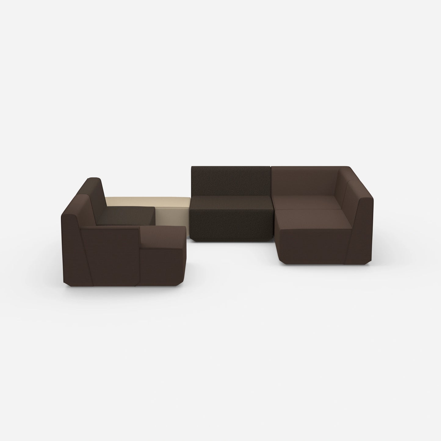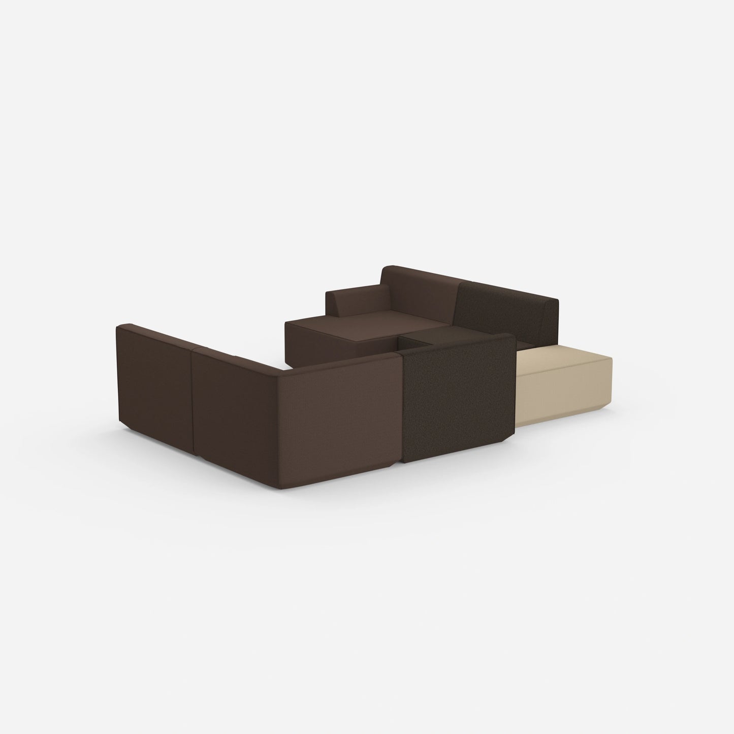 The convertible Sofa lounge in shades of brown is a real highlight among the sofa lounges. Six modules offer flexibility and style. They consist of three back modules, a left recamier module, a versatile pouf module and a left corner module. These elements fit together seamlessly to create an open, compact and versatile seating area.