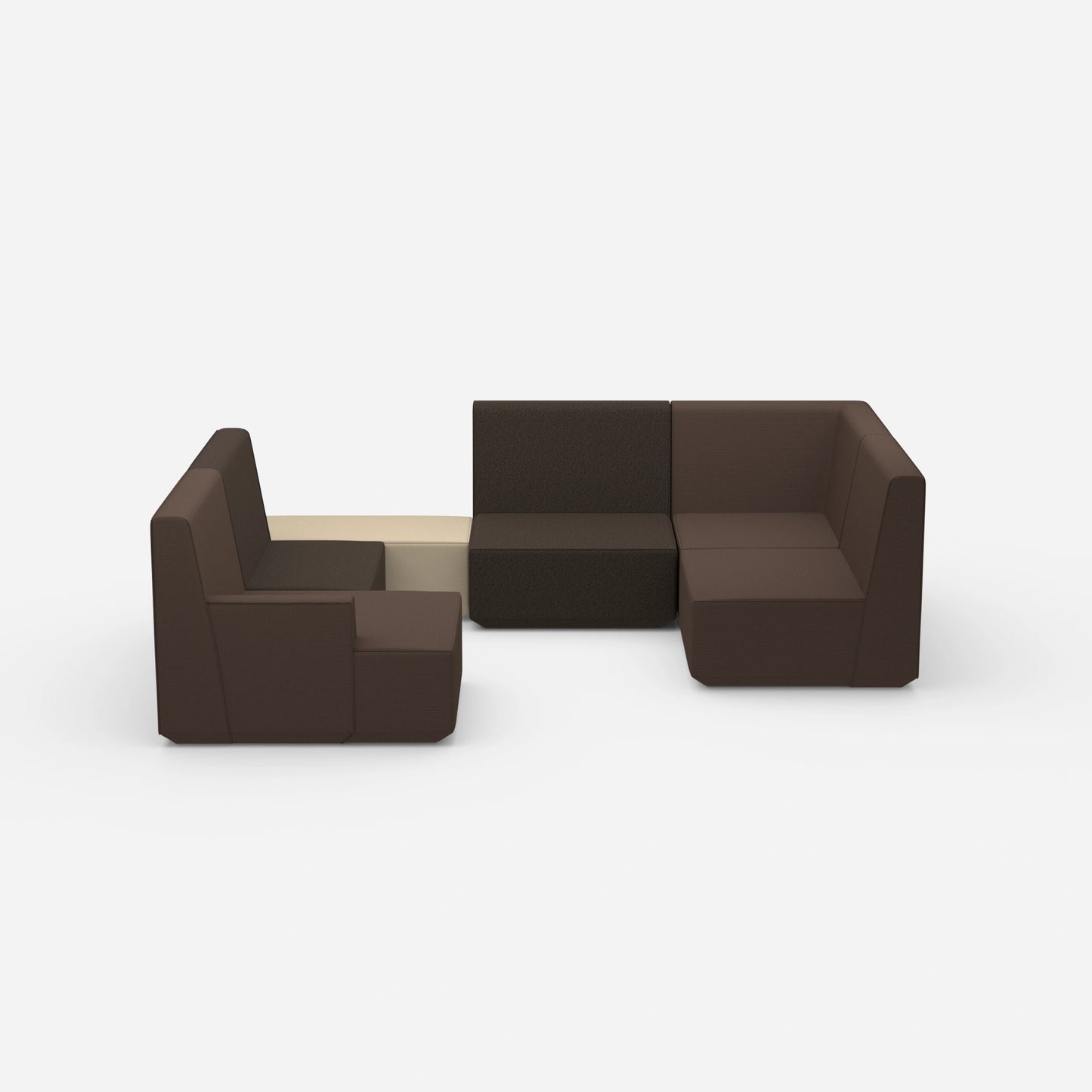 Differently configured Cubit sofa modules in a large, open space - shows the variety of possible combinations and colours