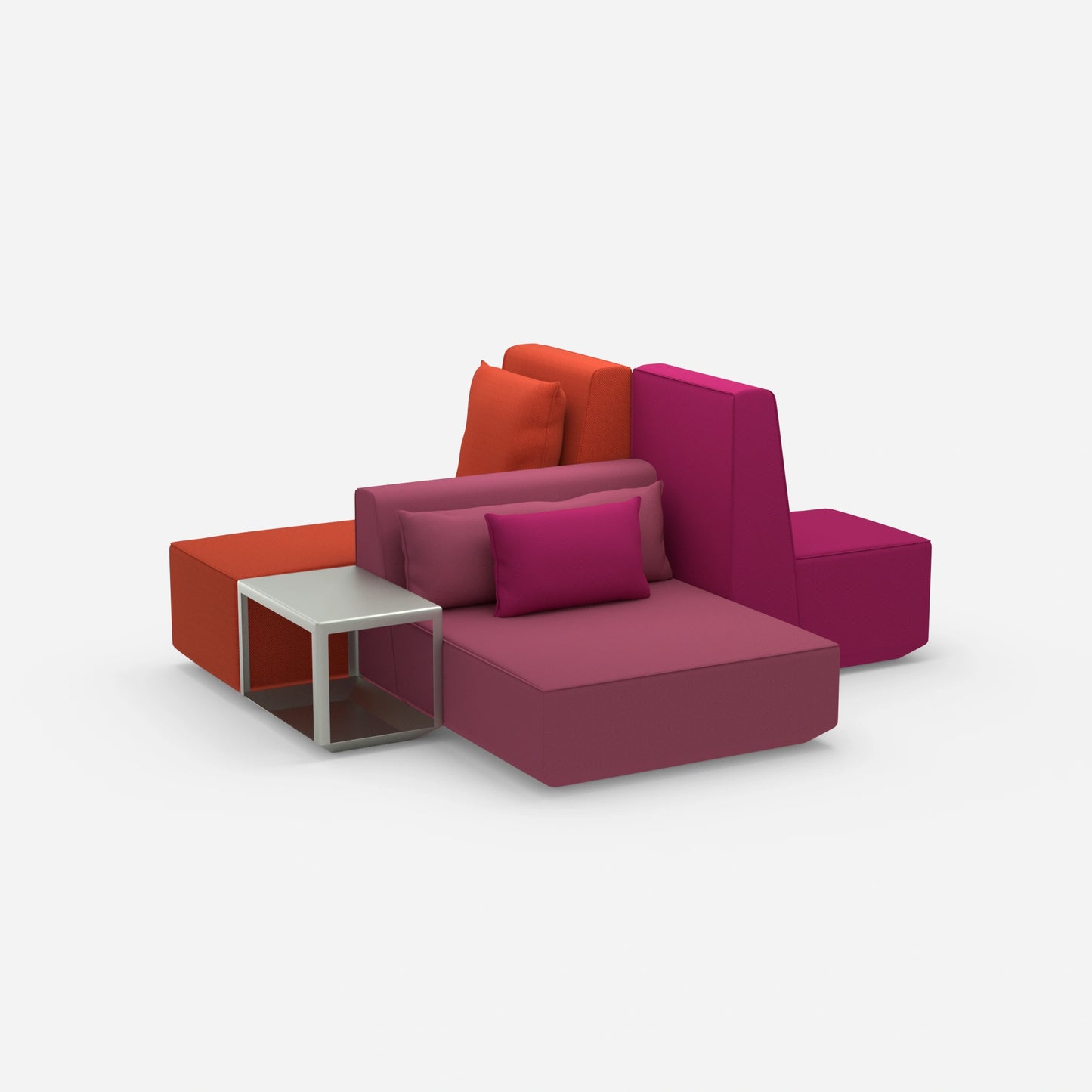 Differently configured Cubit sofa modules in a large, open space - shows the variety of possible combinations and colours