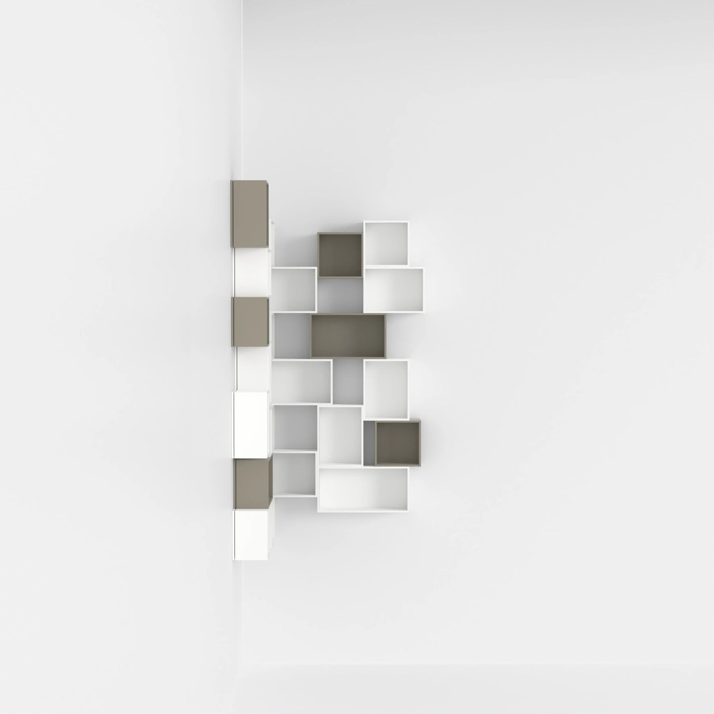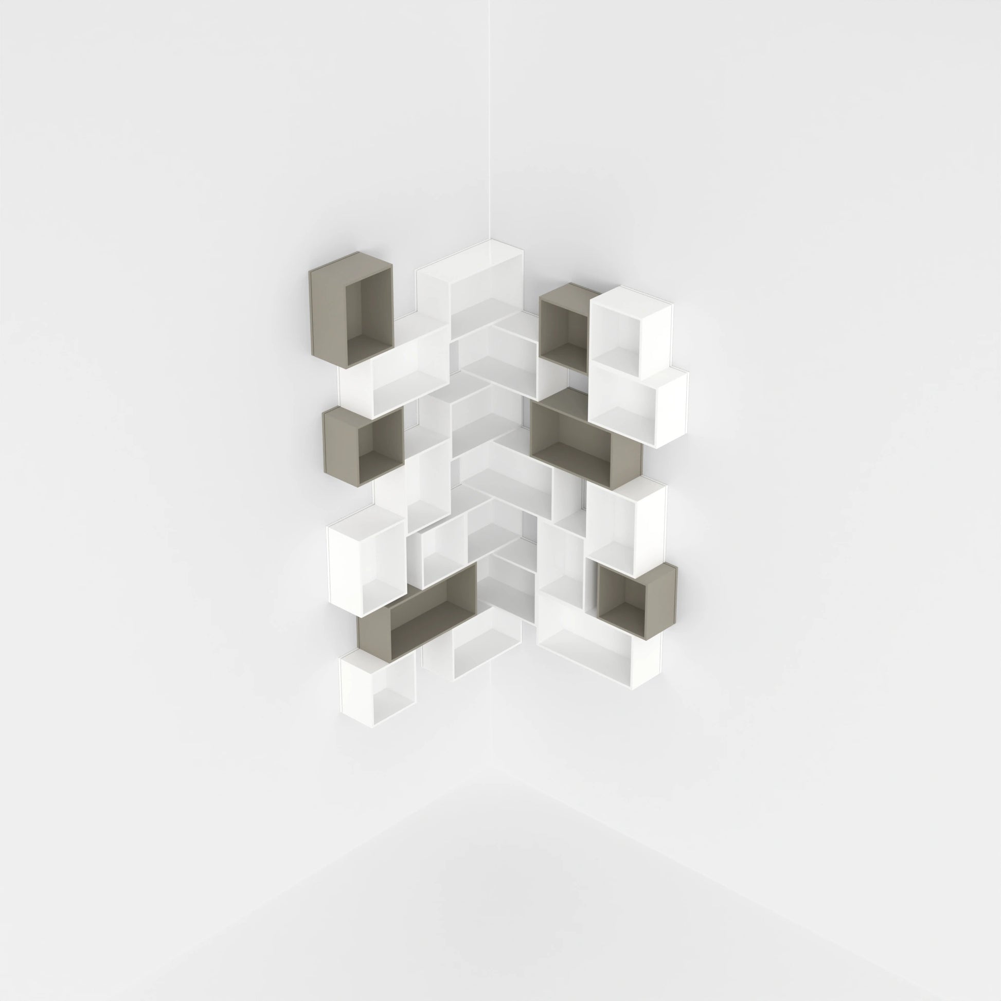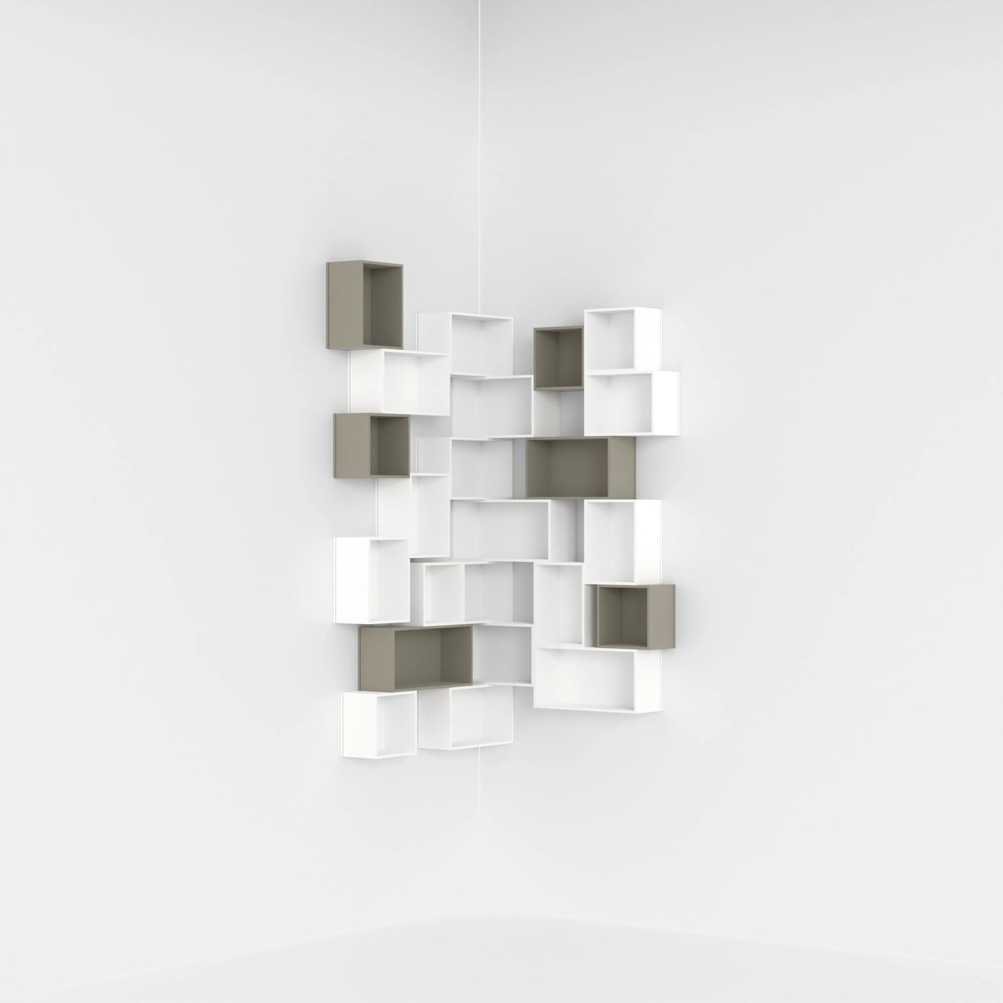 The RK115 Corner shelving transforms your corners into functional storage space. With 23 modules over a width of 188 cm and a height of 184 cm, it is impressively flexible. Do you need more organization? This modular structure adapts to your needs. Available in white or fango grey light, the shelf brings harmony to any room. White brings brightness, while fango grey light calms. Thanks to its compact depth of 17 cm, it is ideal for living rooms, bedrooms or offices. Books, decorations and more can be stored here in style. Make optimum use of the available space. The RK115 makes your home more practical and gives it modern charm at the same time. Opt for a shelf that offers more than just storage space.