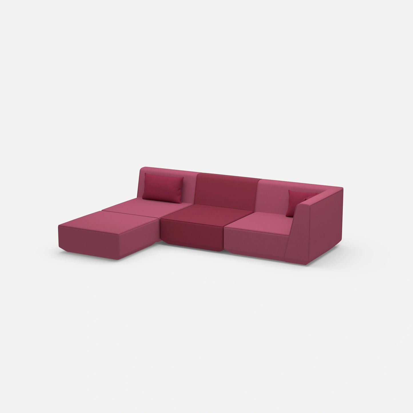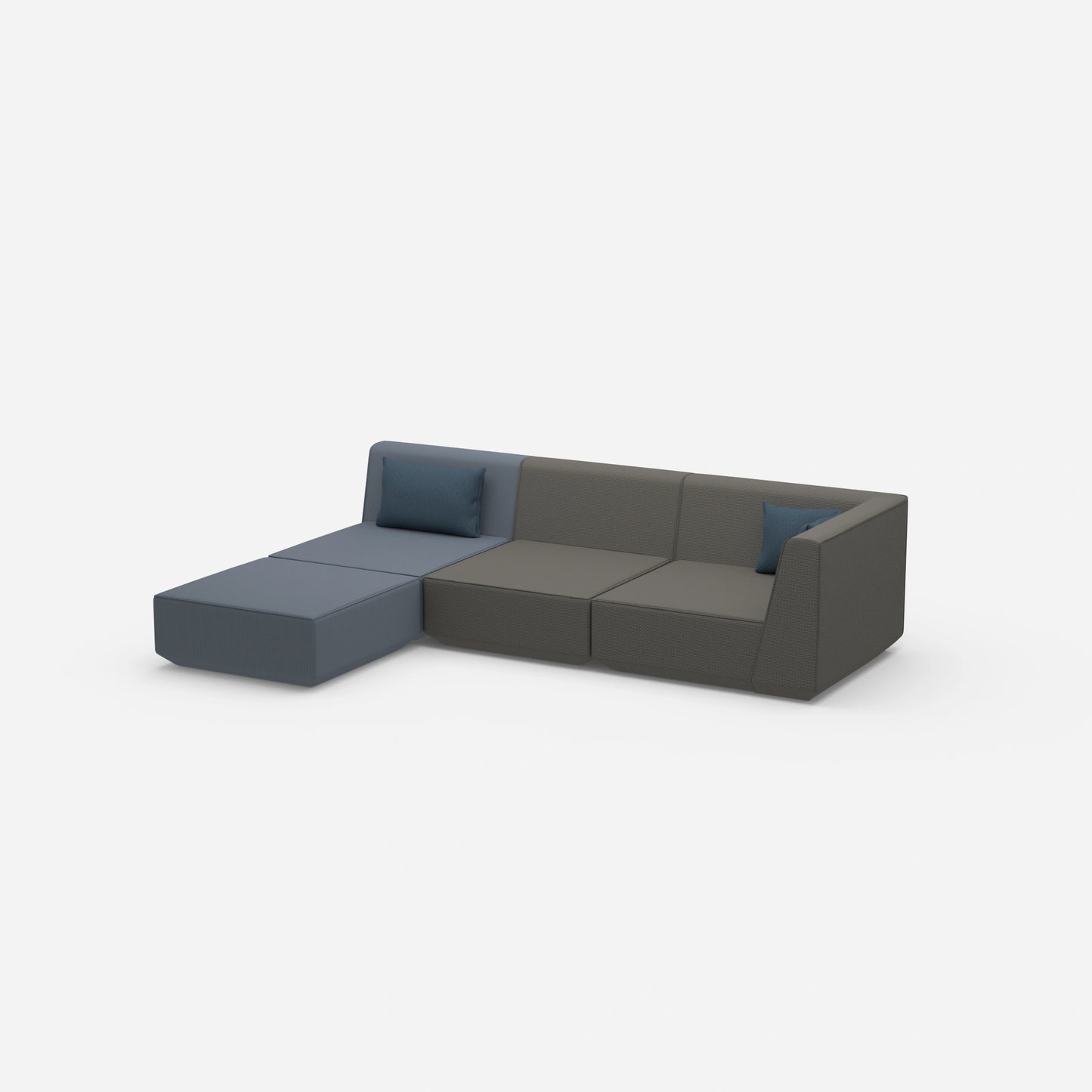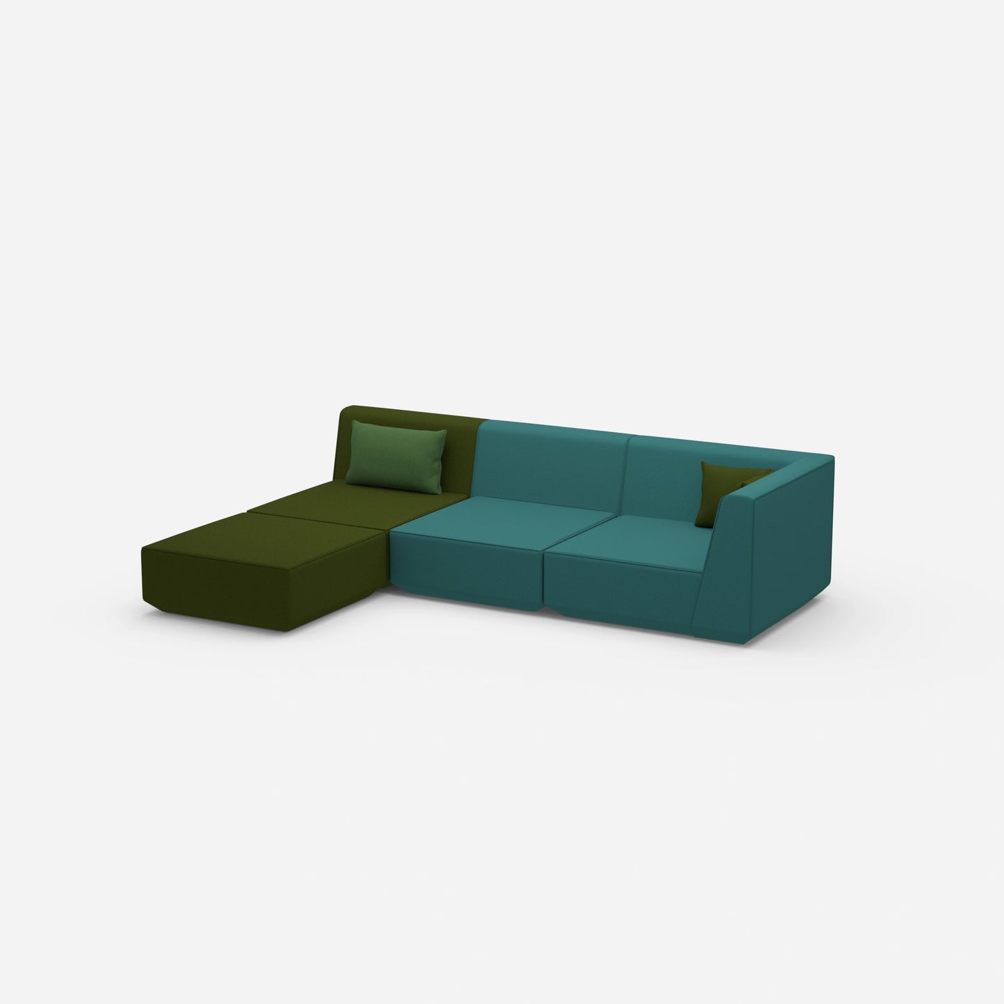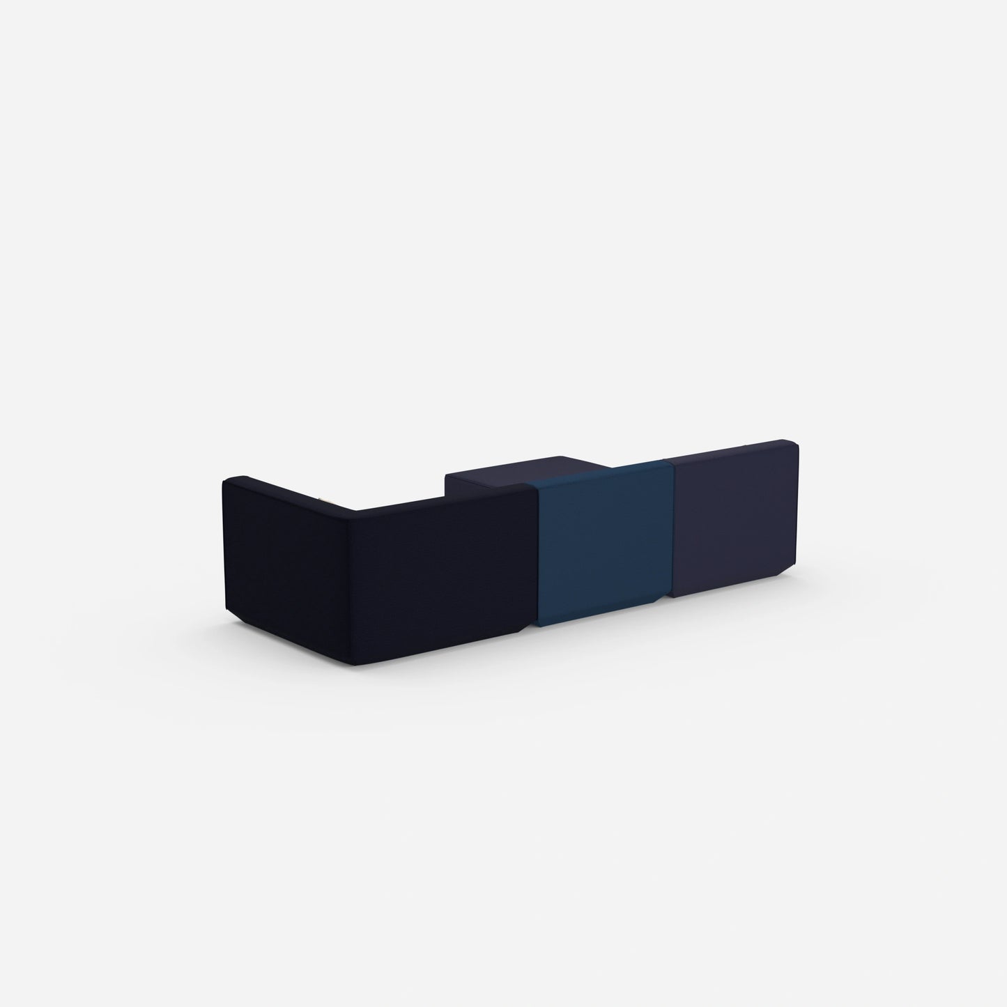 Differently configured Cubit sofa modules in a large, open space - shows the variety of possible combinations and colours