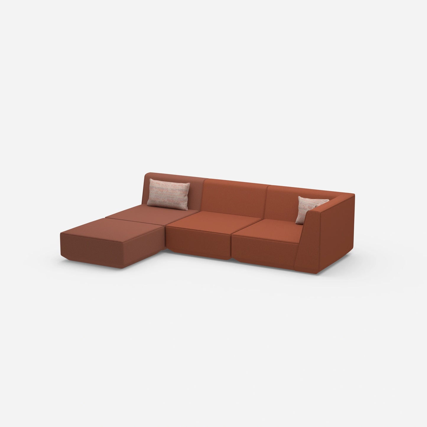 The Corner sofa configurable radiates versatility in the world of Corner sofas . With four modules, including a pouf module, two backrest modules and a right corner module, it offers flexibility. A double cushion and an additional cushion round off the design. These modules create an open yet compact seating landscape.