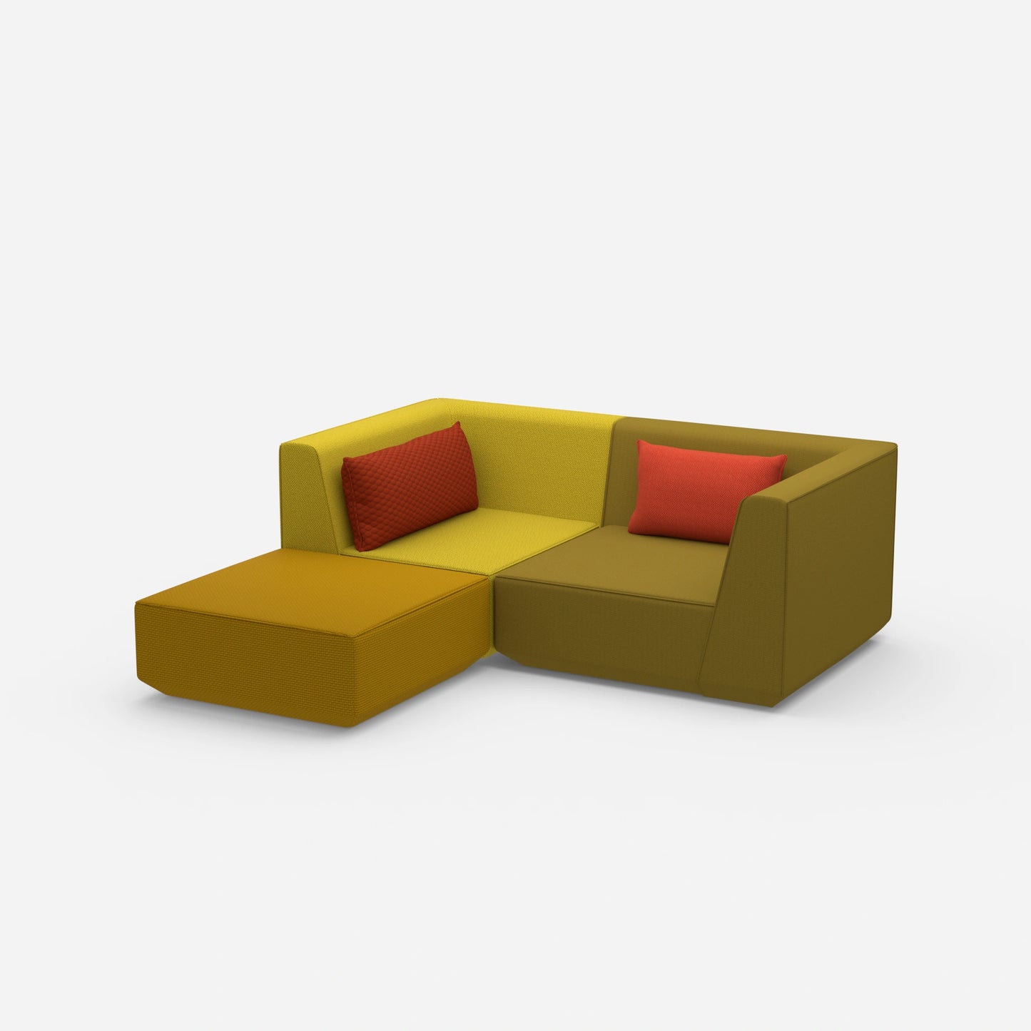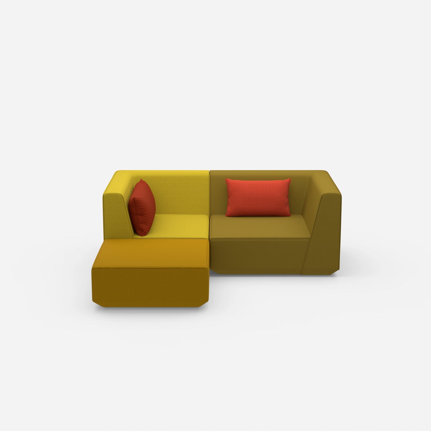 Modular Cubit sofa with two side-by-side seating elements in vibrant yellow and blue
