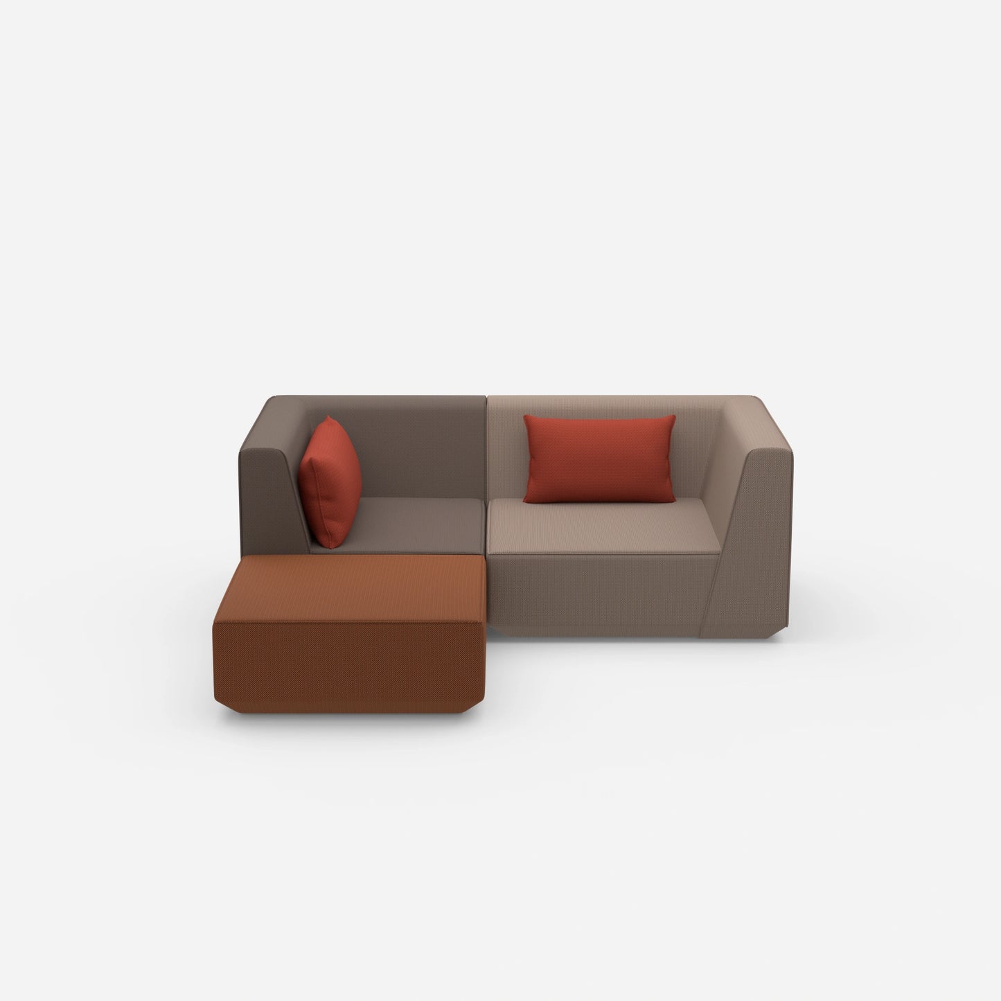 1 x pouf module, 2 x cushions, 1 x corner module right, 1 x corner module left