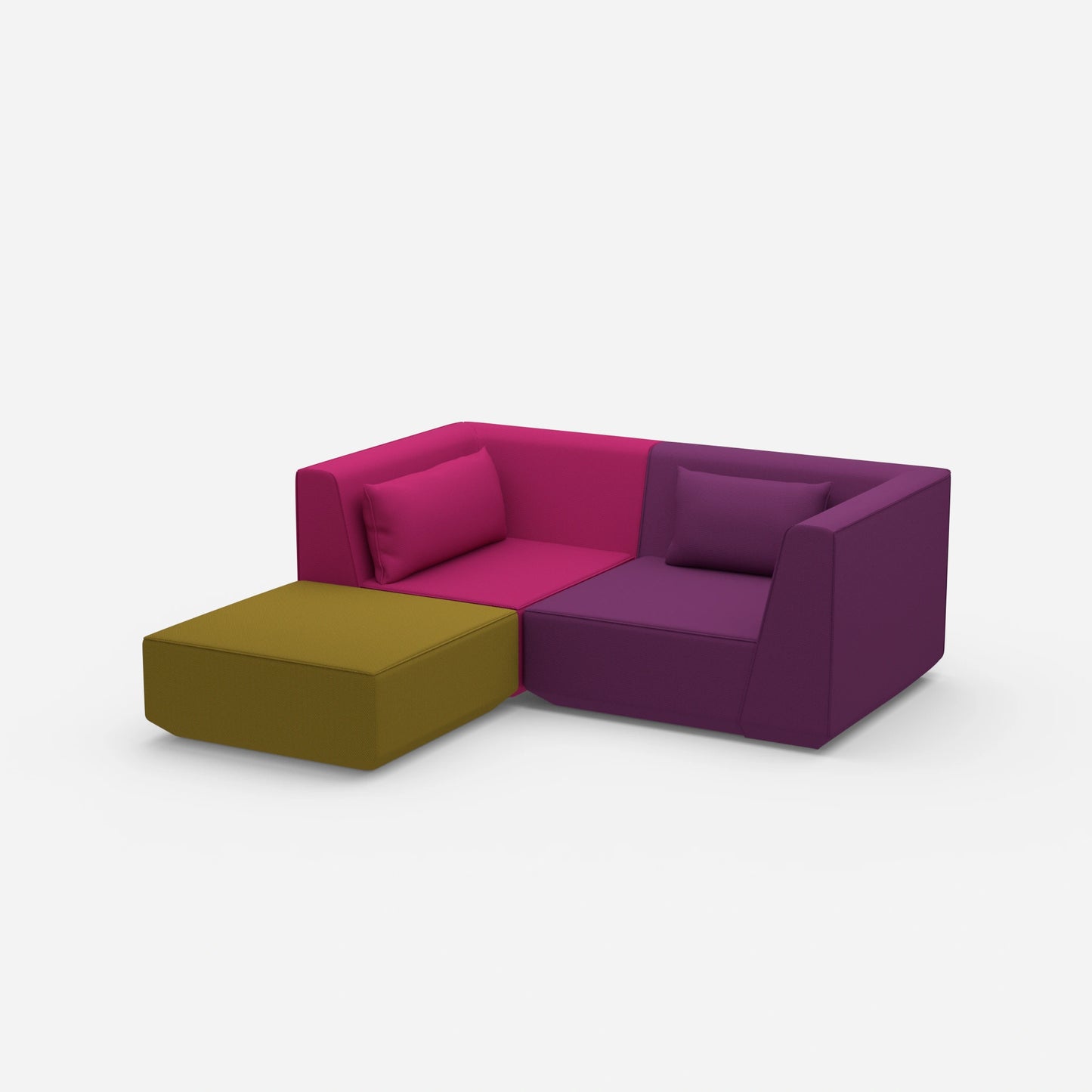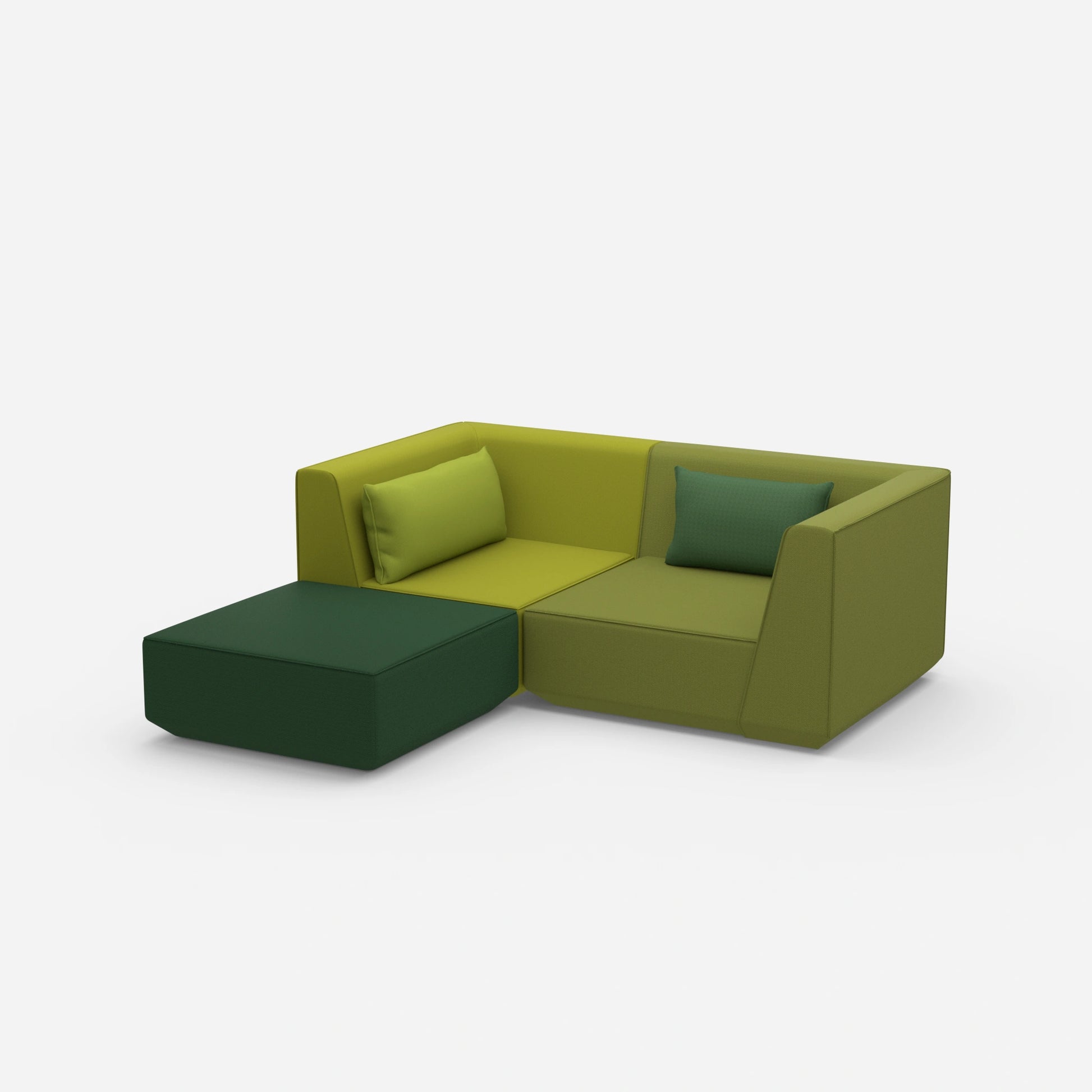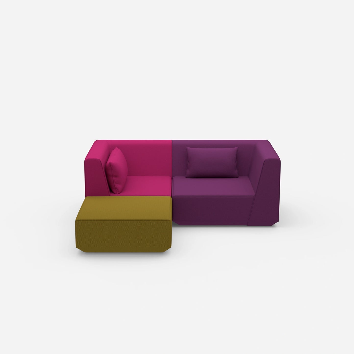 Differently configured Cubit sofa modules in a large, open space - shows the variety of possible combinations and colours