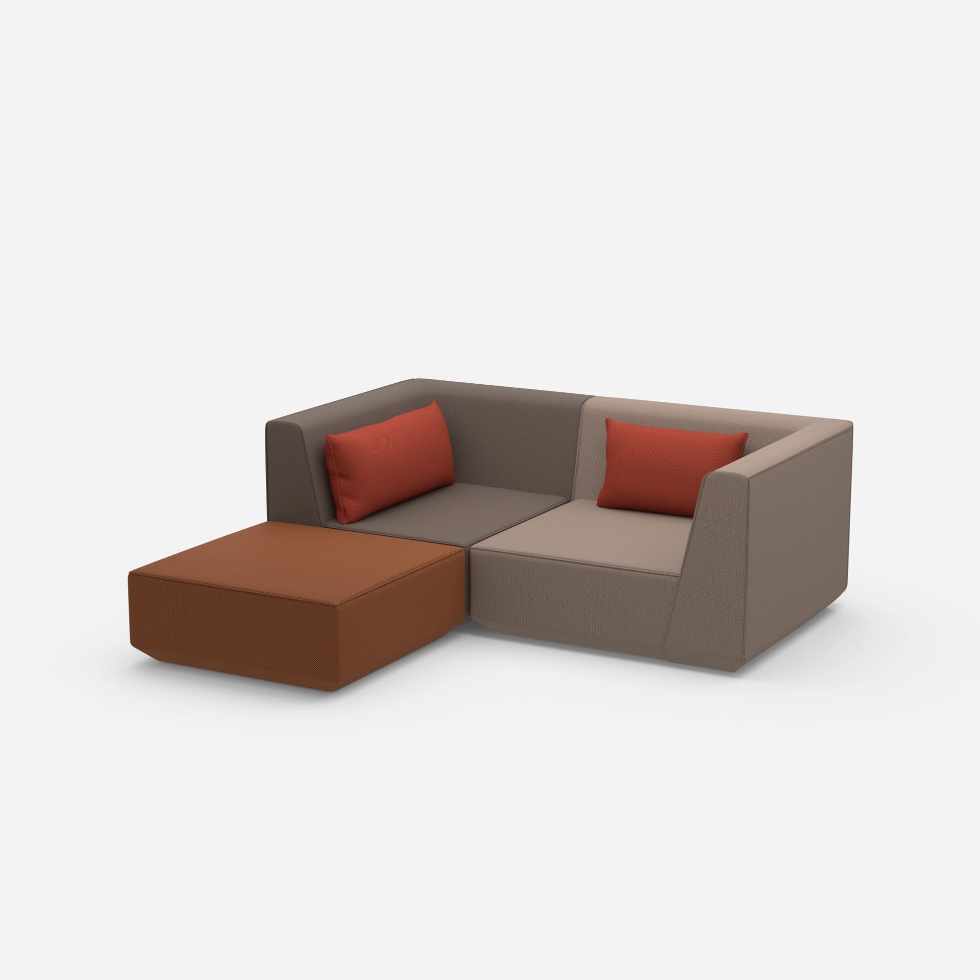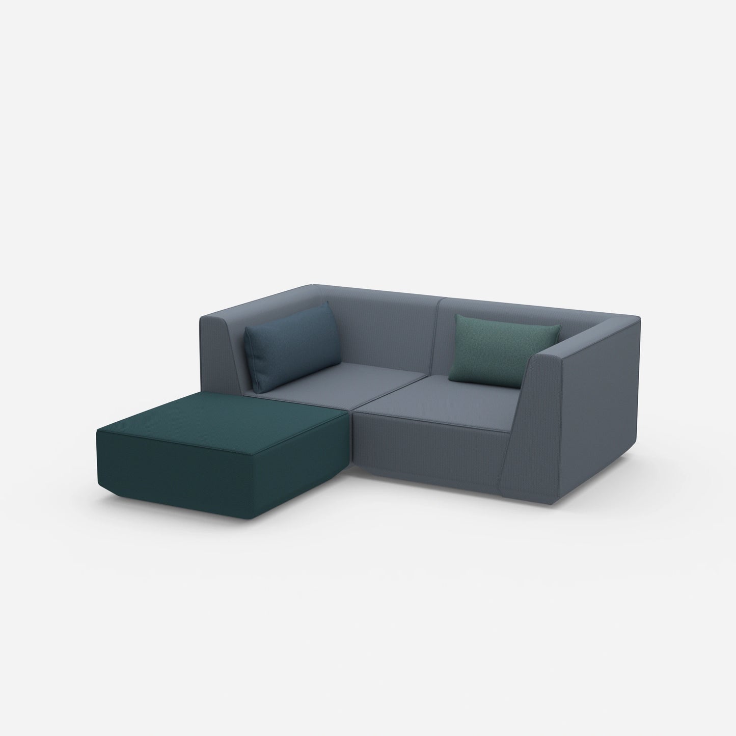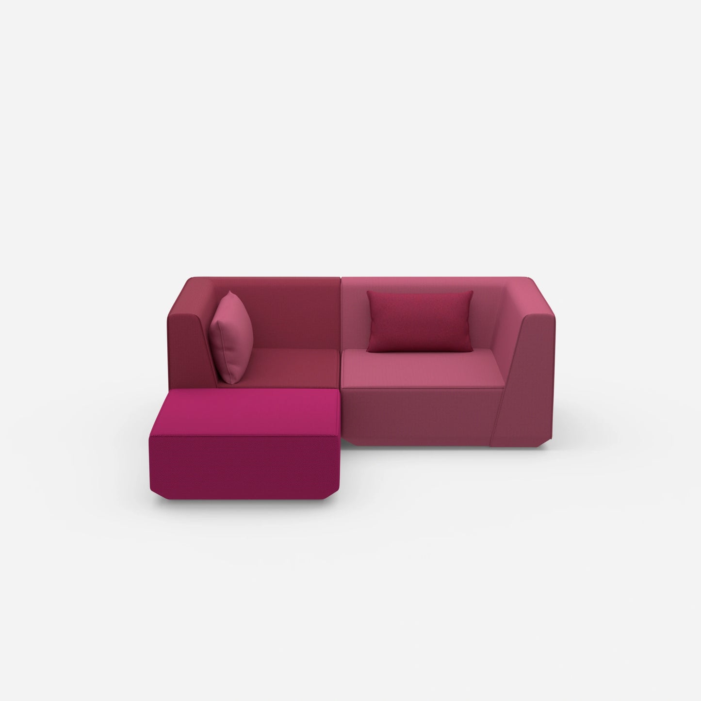 Differently configured Cubit sofa modules in a large, open space - shows the variety of possible combinations and colours