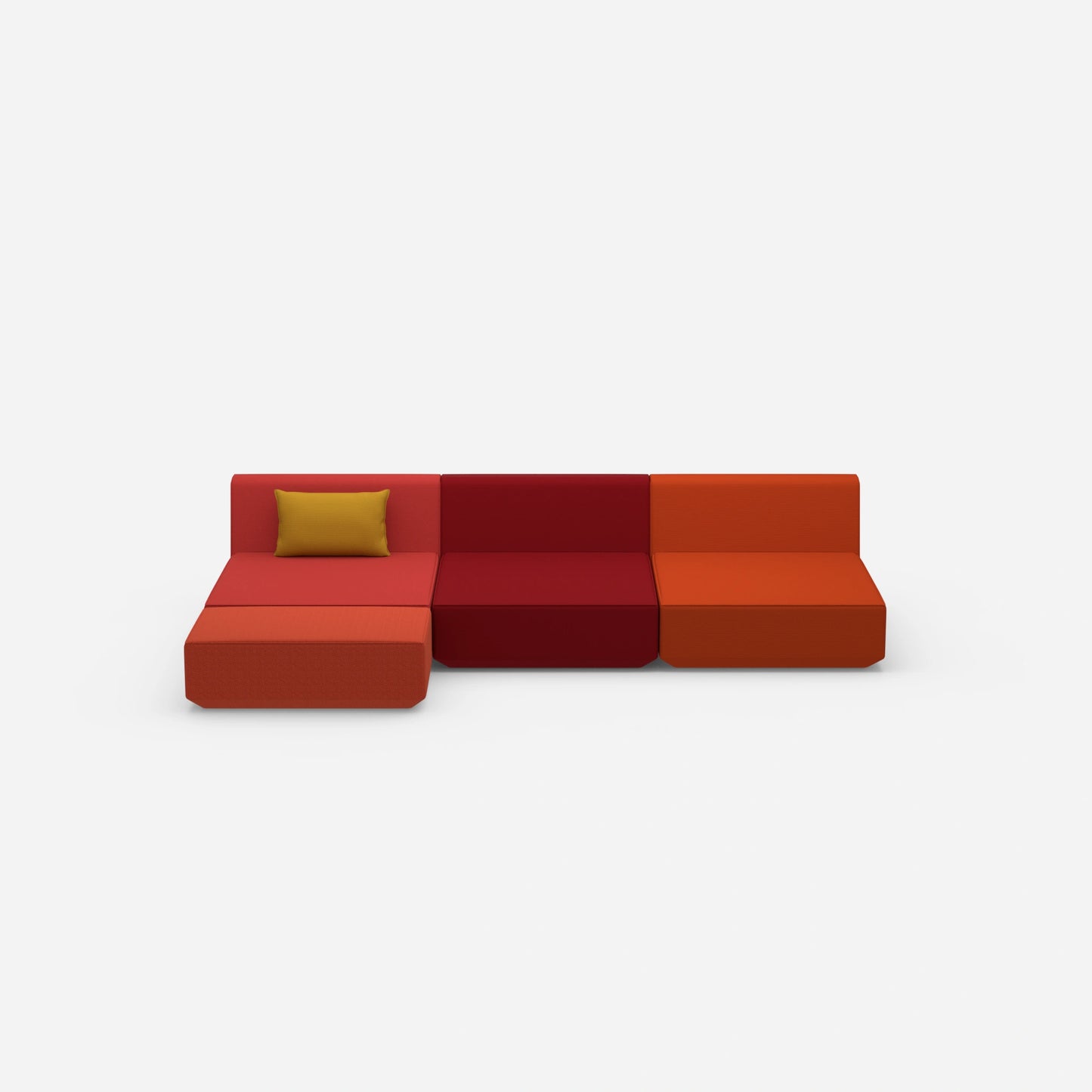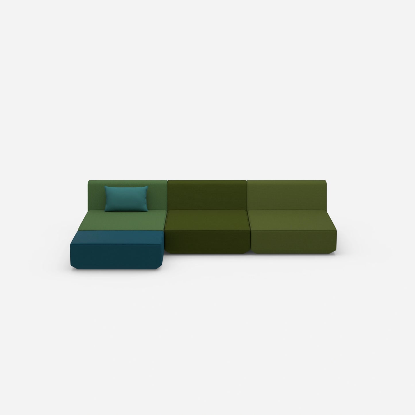 Differently configured Cubit sofa modules in a large, open space - shows the variety of possible combinations and colours