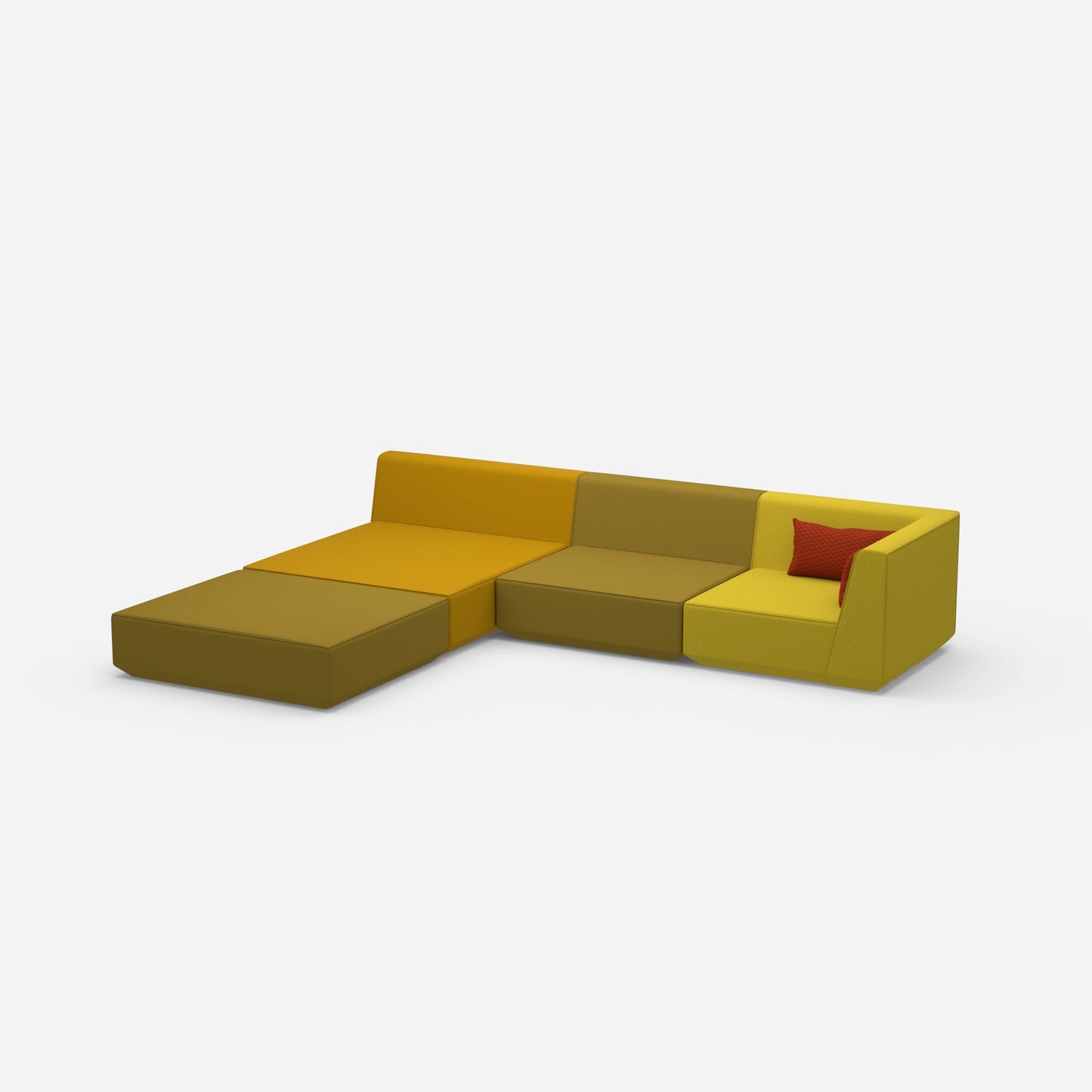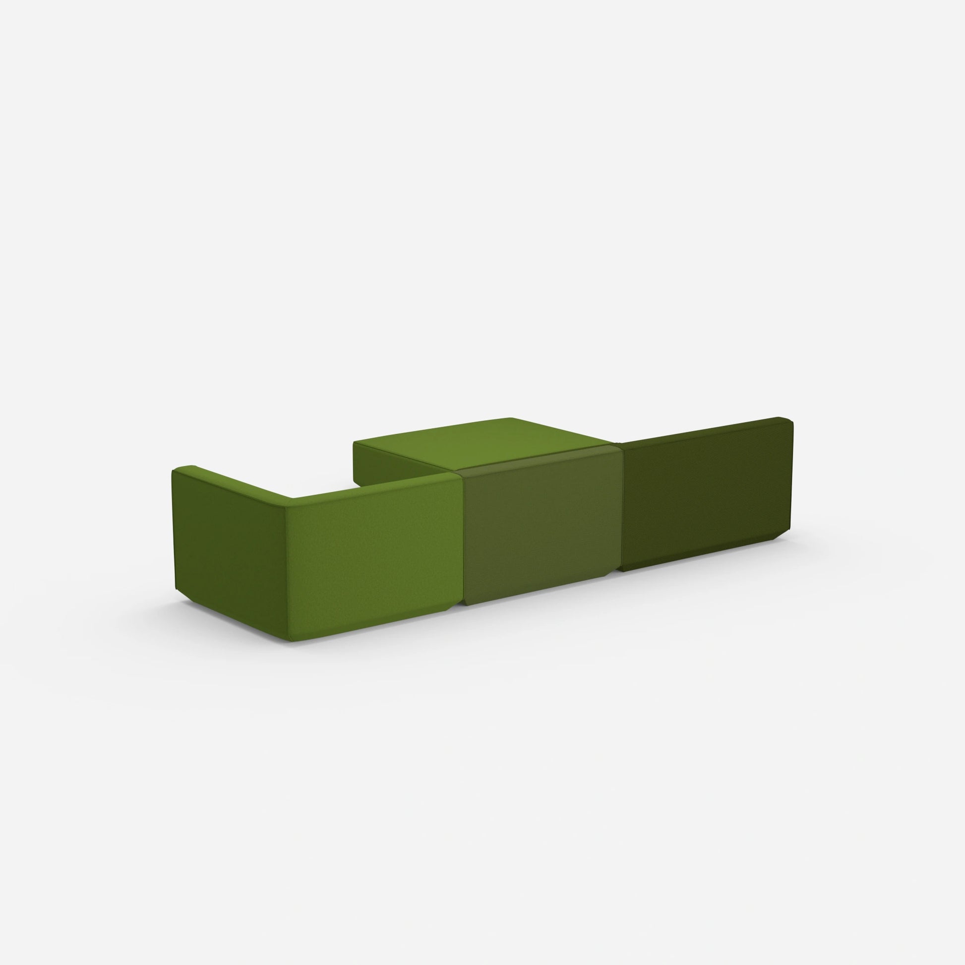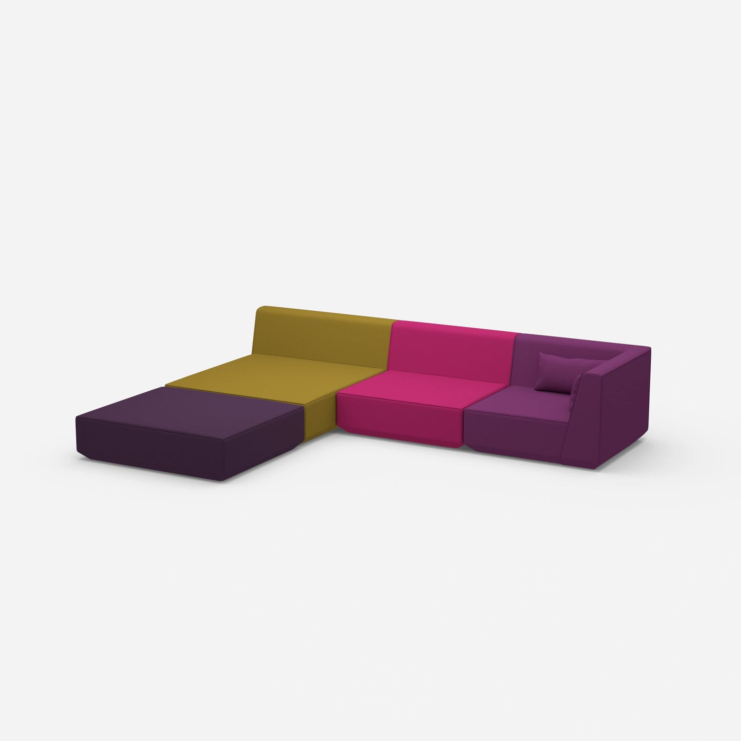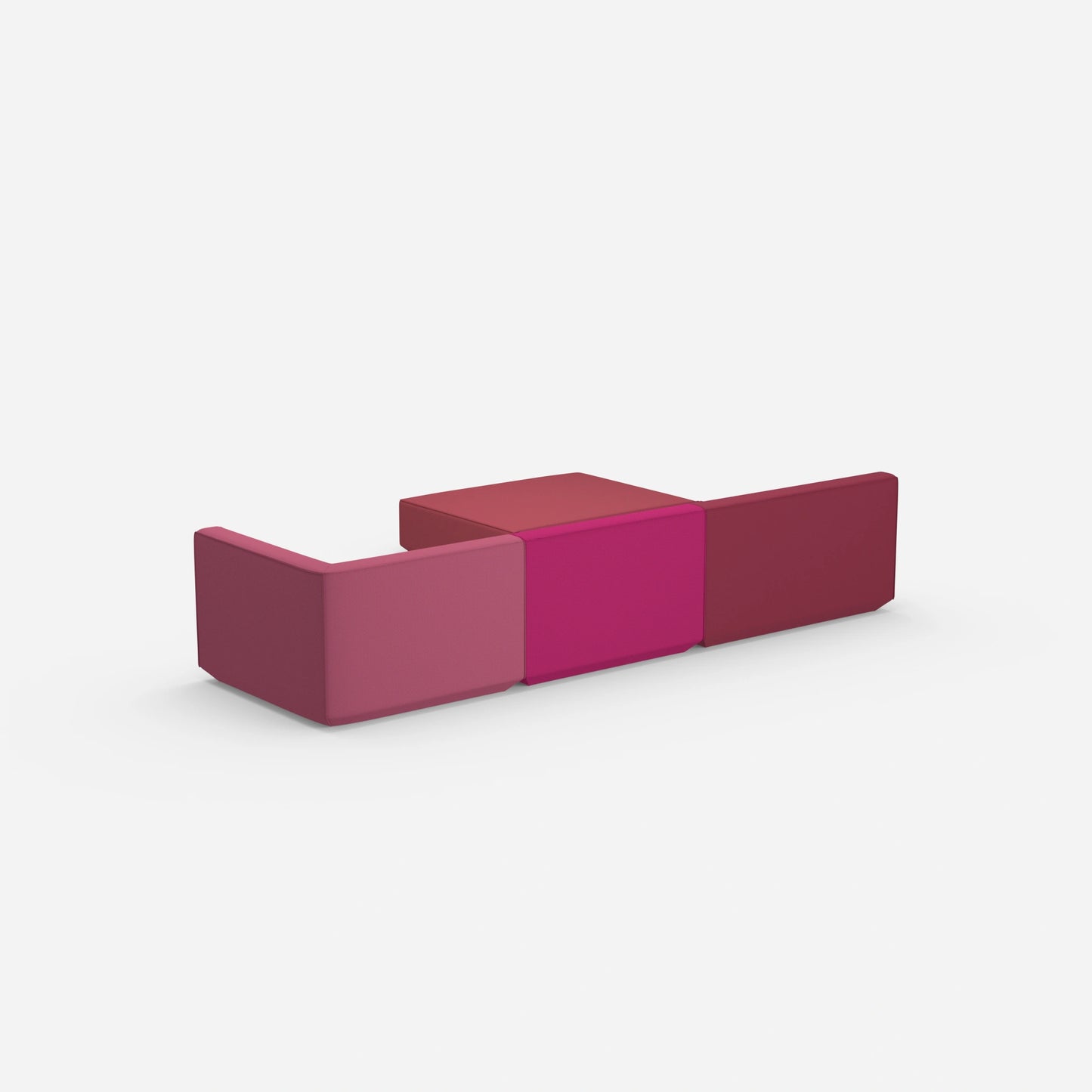 Differently configured Cubit sofa modules in a large, open space - shows the variety of possible combinations and colours