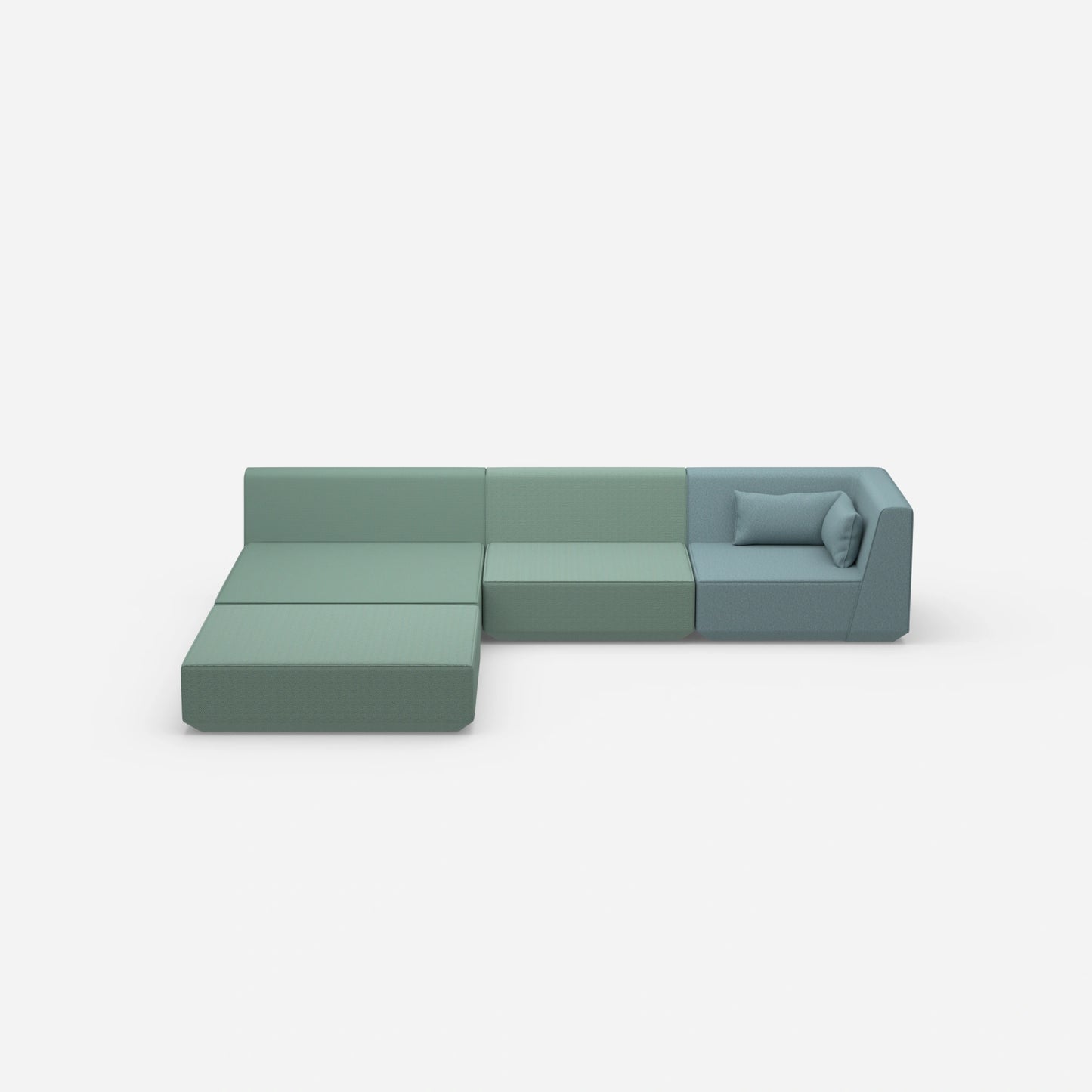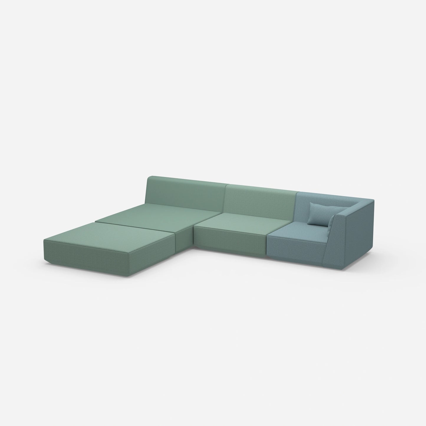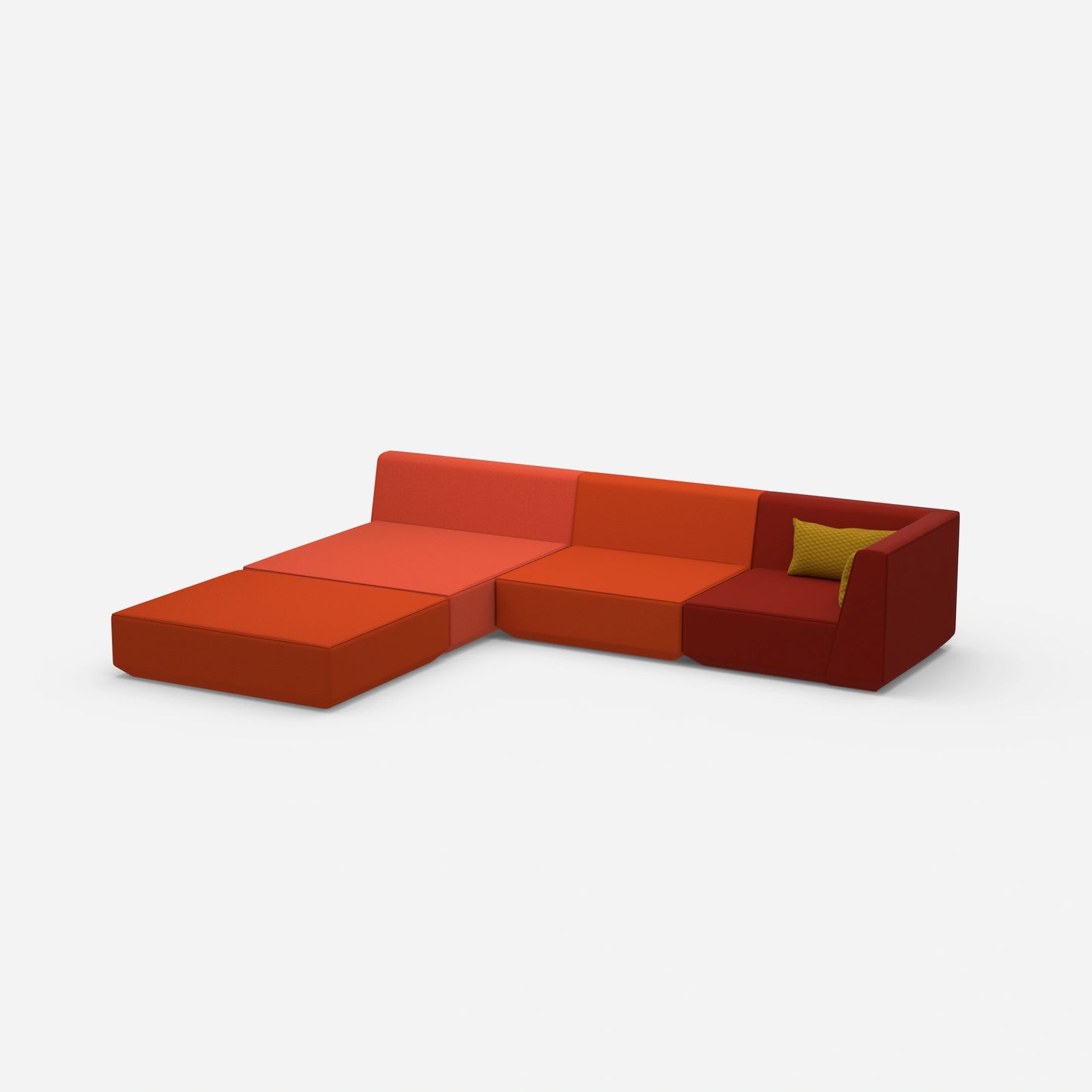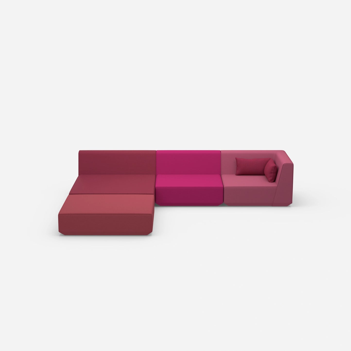 Differently configured Cubit sofa modules in a large, open space - shows the variety of possible combinations and colours