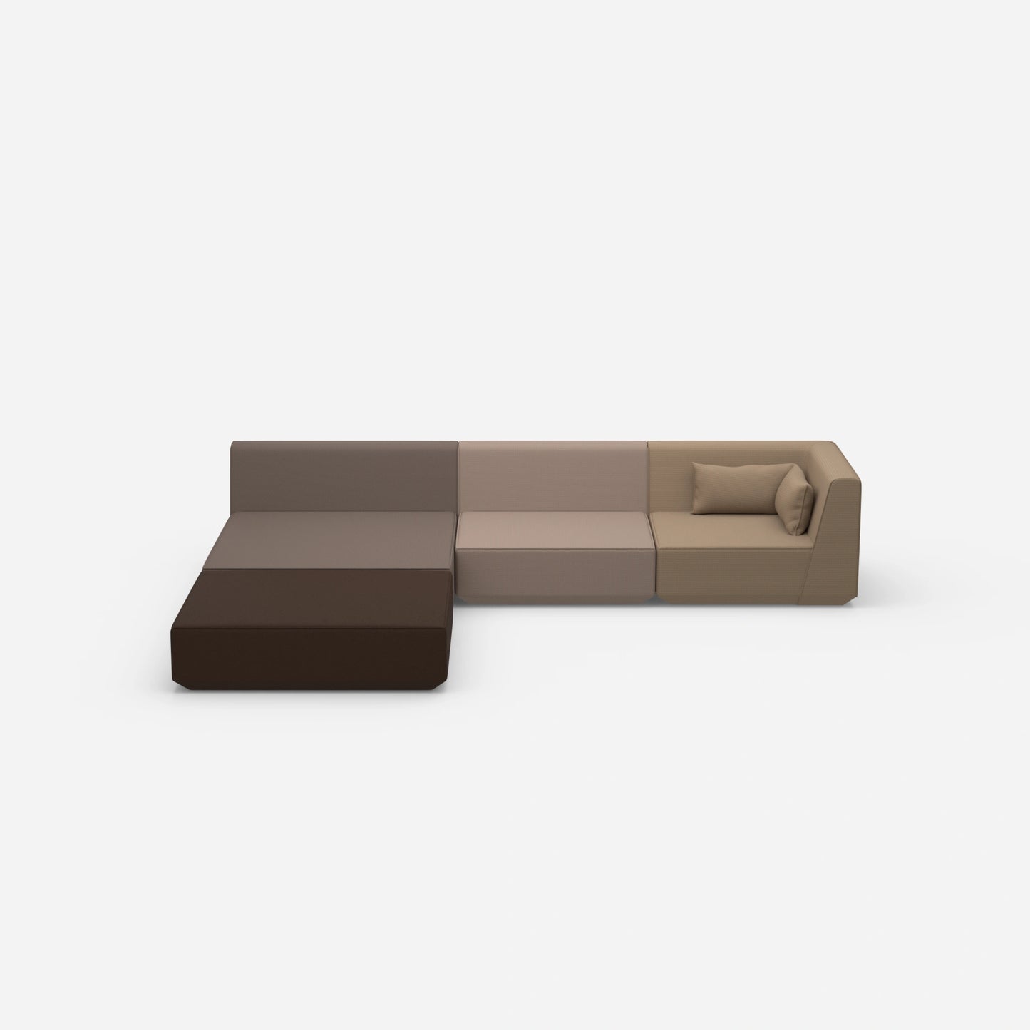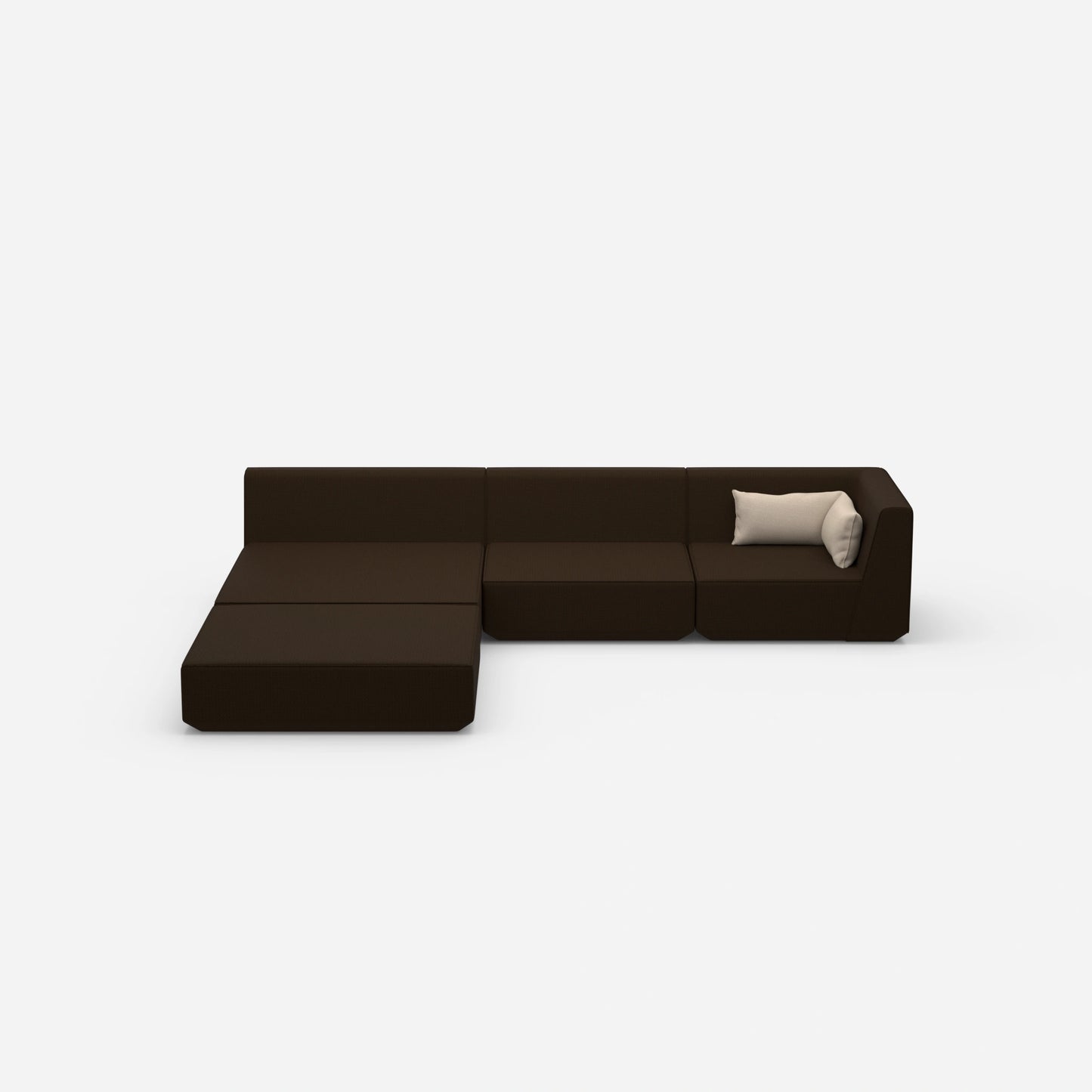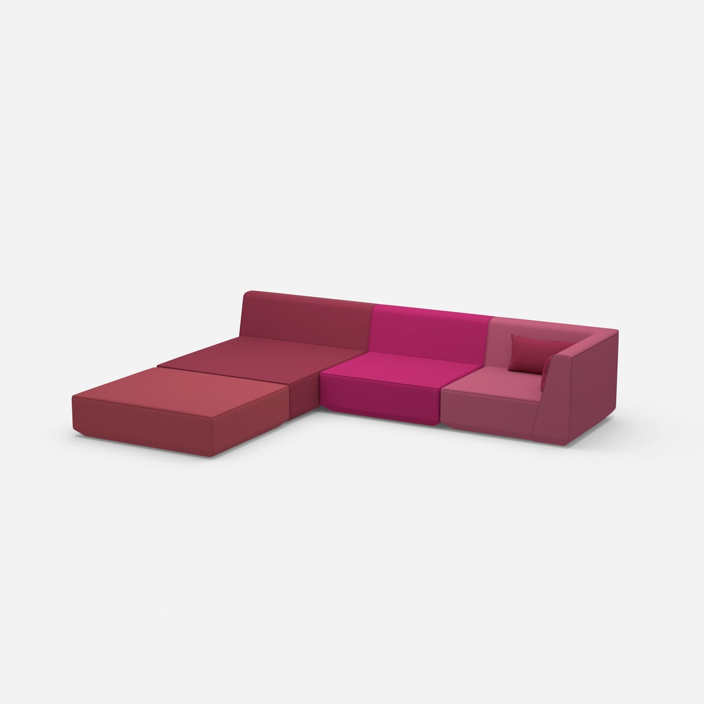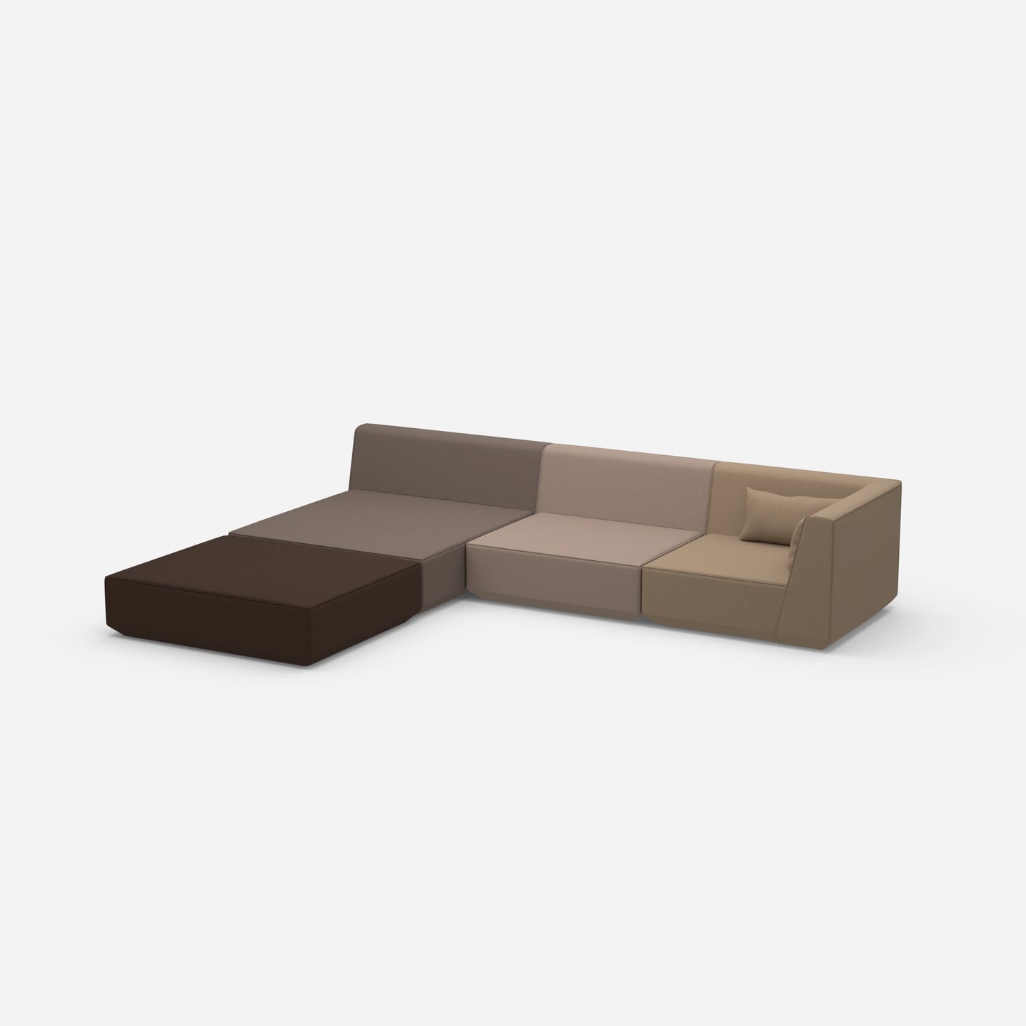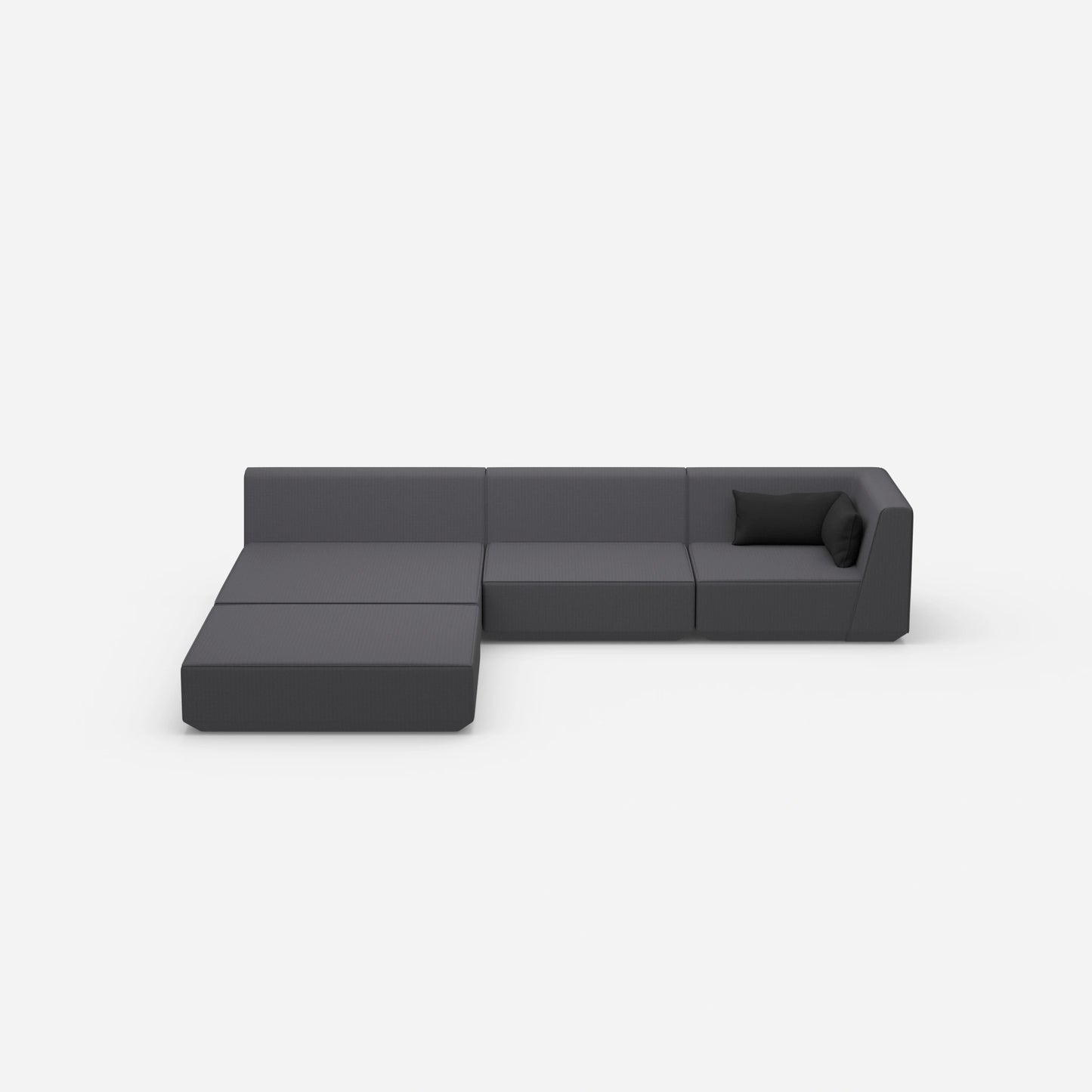 The Corner sofa wide reclining surface offers more than just seating. It is a Corner sofa that is characterized by its modular structure. With four sofa modules, including two back modules, a pouf module and a right corner module, it adapts flexibly to your needs. A double cushion completes the ensemble and provides additional comfort.