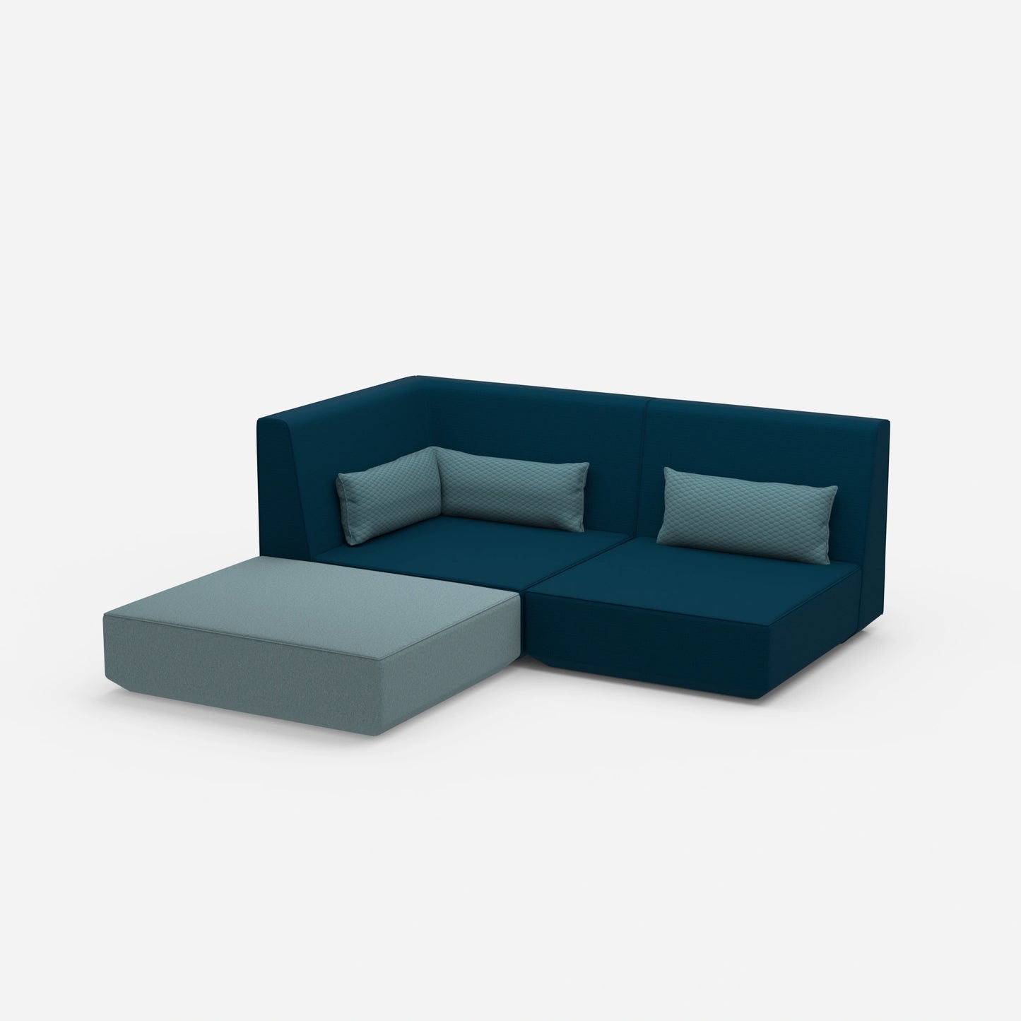 This sofa impresses with its modular structure. A pouf module and a double cushion create flexible seating options. The corner module on the left combines harmoniously with the back module. This combination creates a compact yet open design. The versatility of this sofa adapts to any living situation.
