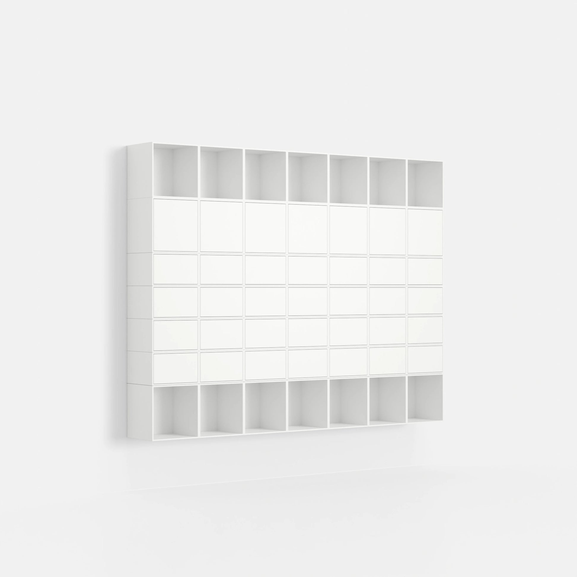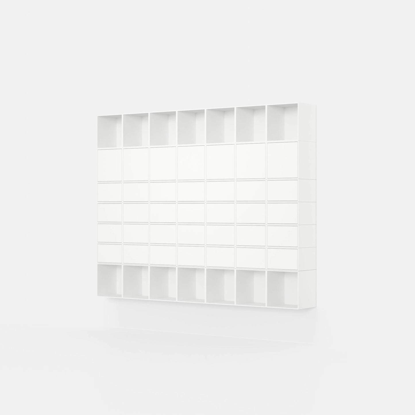 The RK1161 drawer unit in brilliant white will revolutionise your organisation. With 49 modules, it offers space for all your items. The dimensions of 280 cm wide, 216 cm high and 37 cm deep make it a flexible storage space miracle in any room.