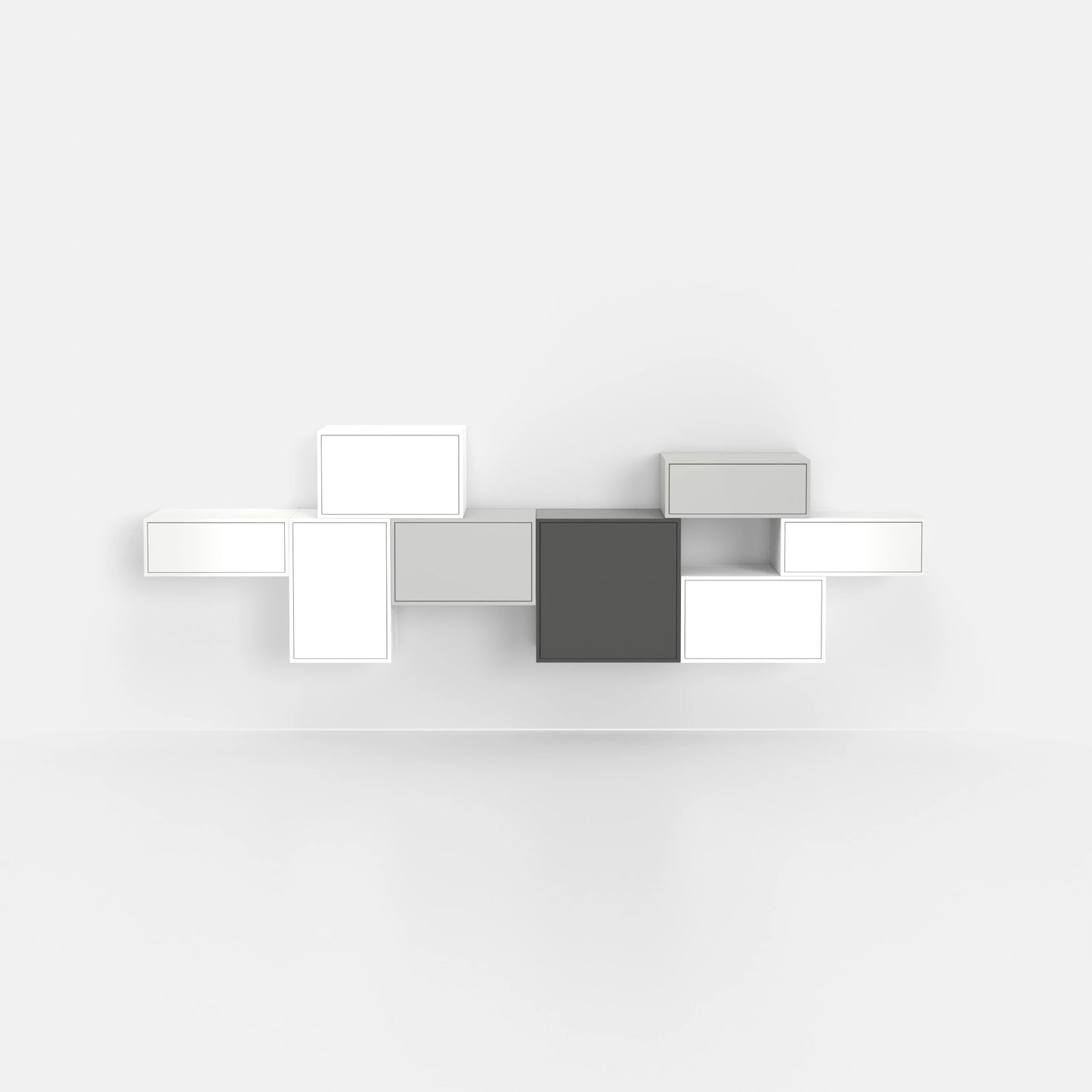 Available in white, dark grey and light grey , the shelf integrates elegantly into various living styles. The choice of colors ensures harmonious accents in your interior. Adapt the look to your surroundings without compromising on style.