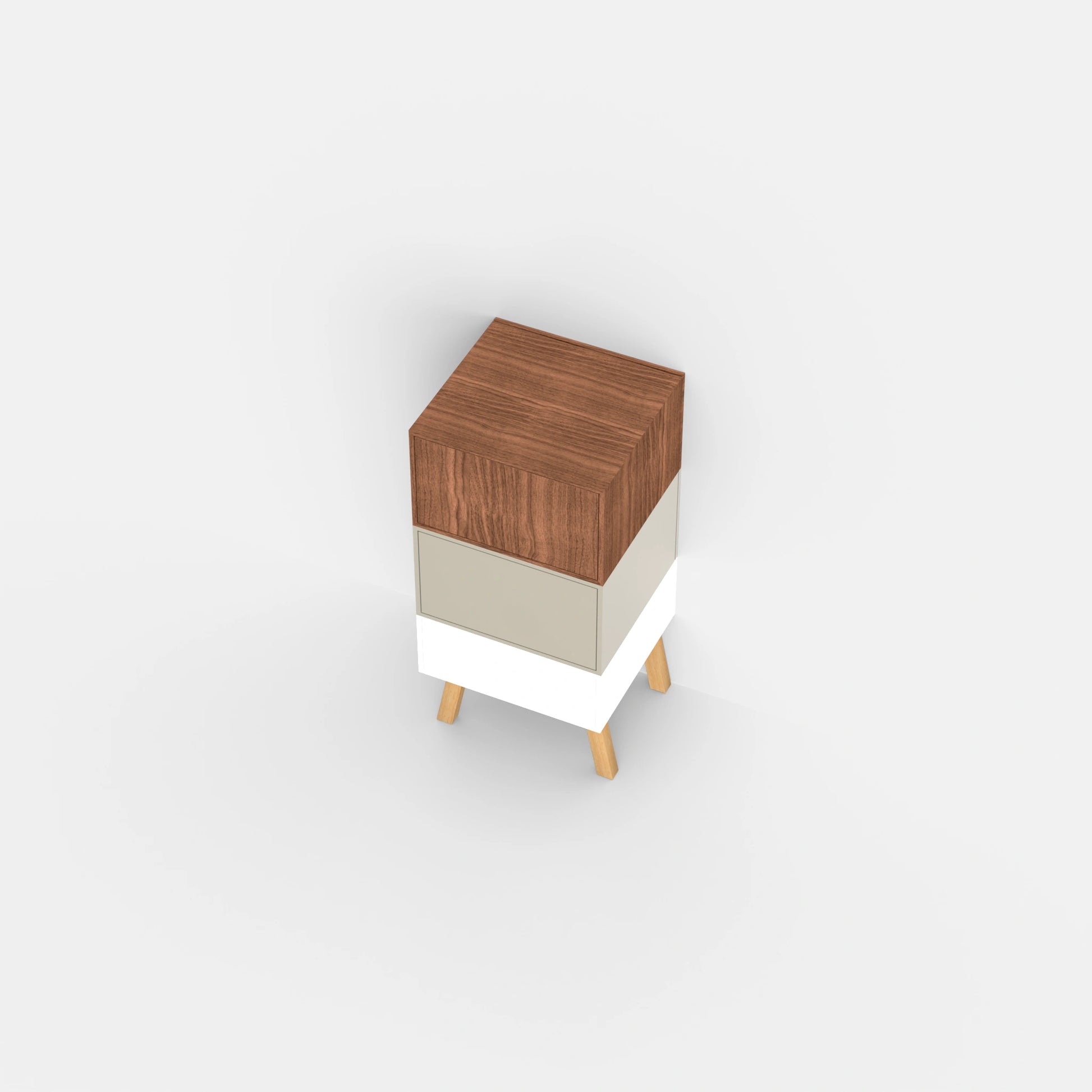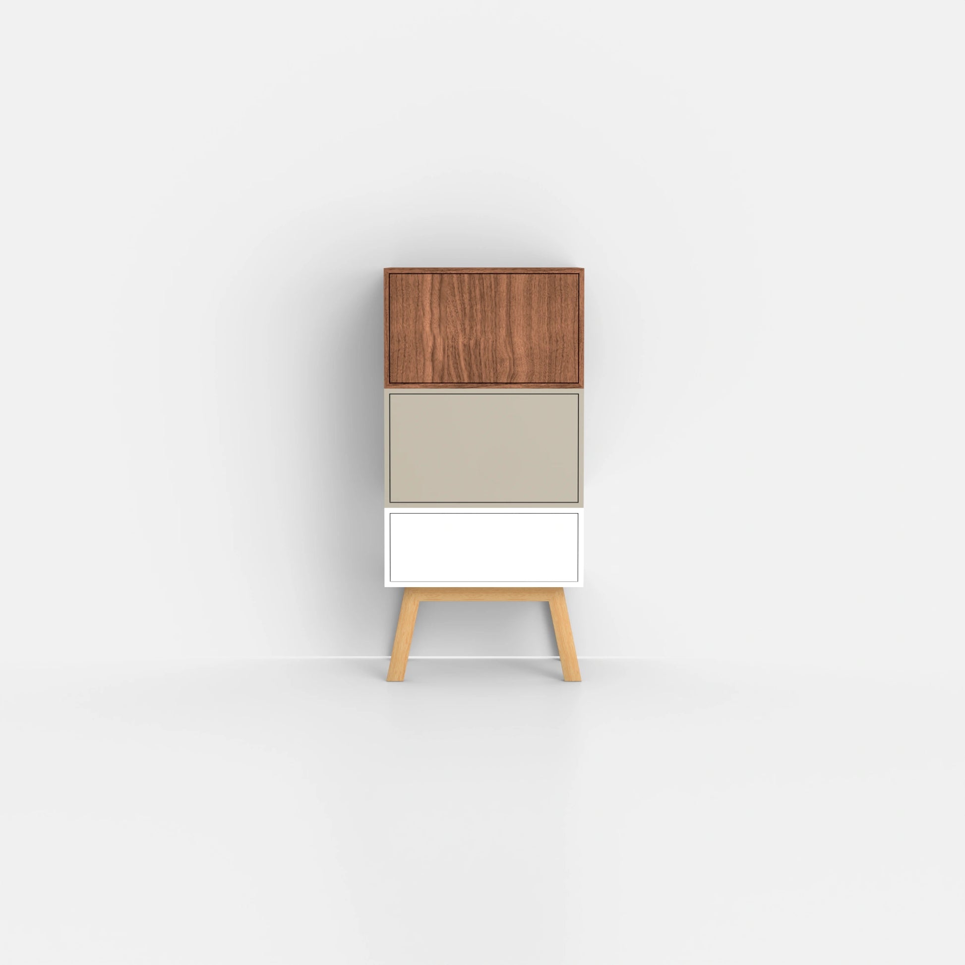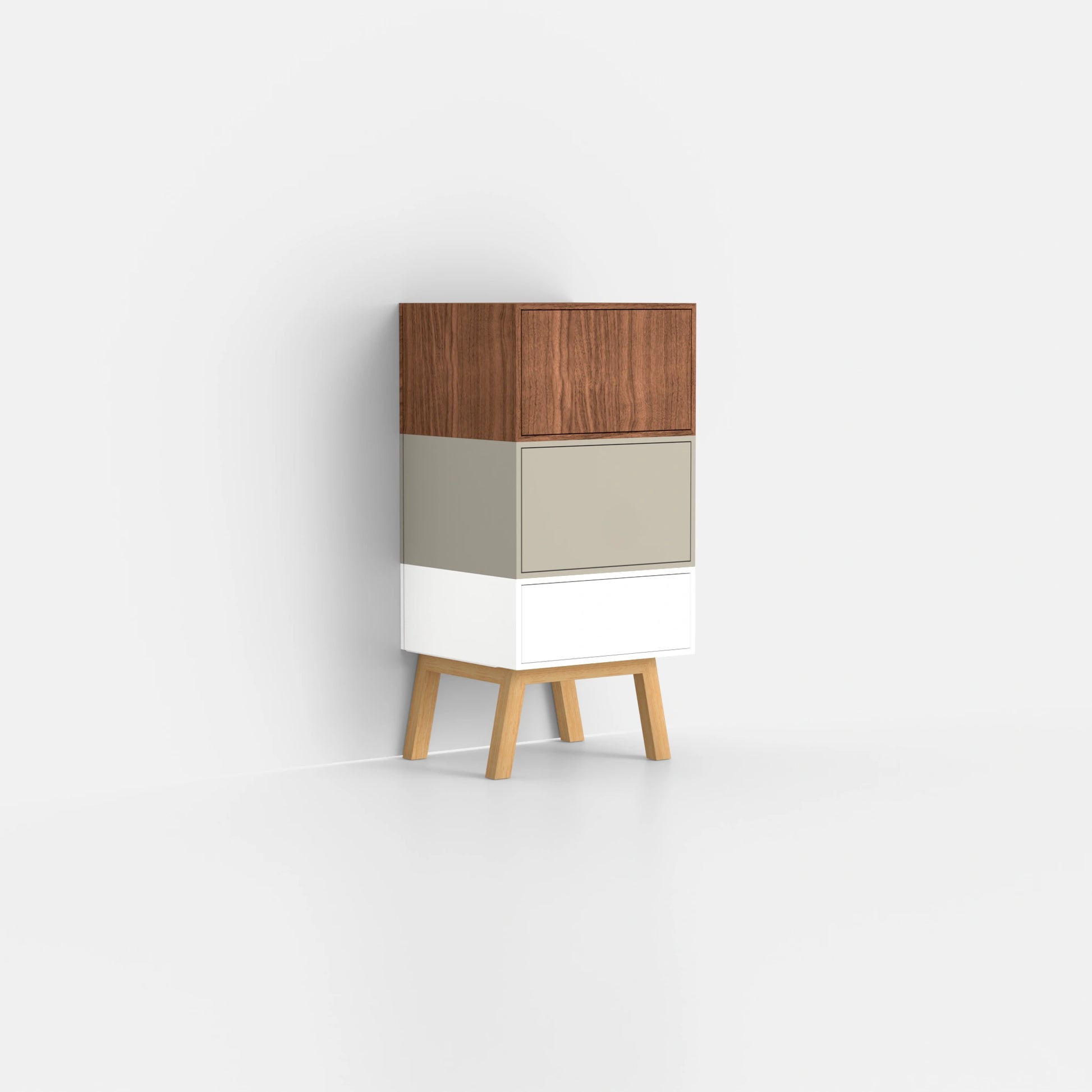 The SB031 drawer unit maximises storage space with its compact dimensions of 40 cm wide, 37 cm deep and 84 cm high. Four spacious modules provide room for all your items. Elegant colours such as white, walnut and fango grey light allow for versatile customisation.