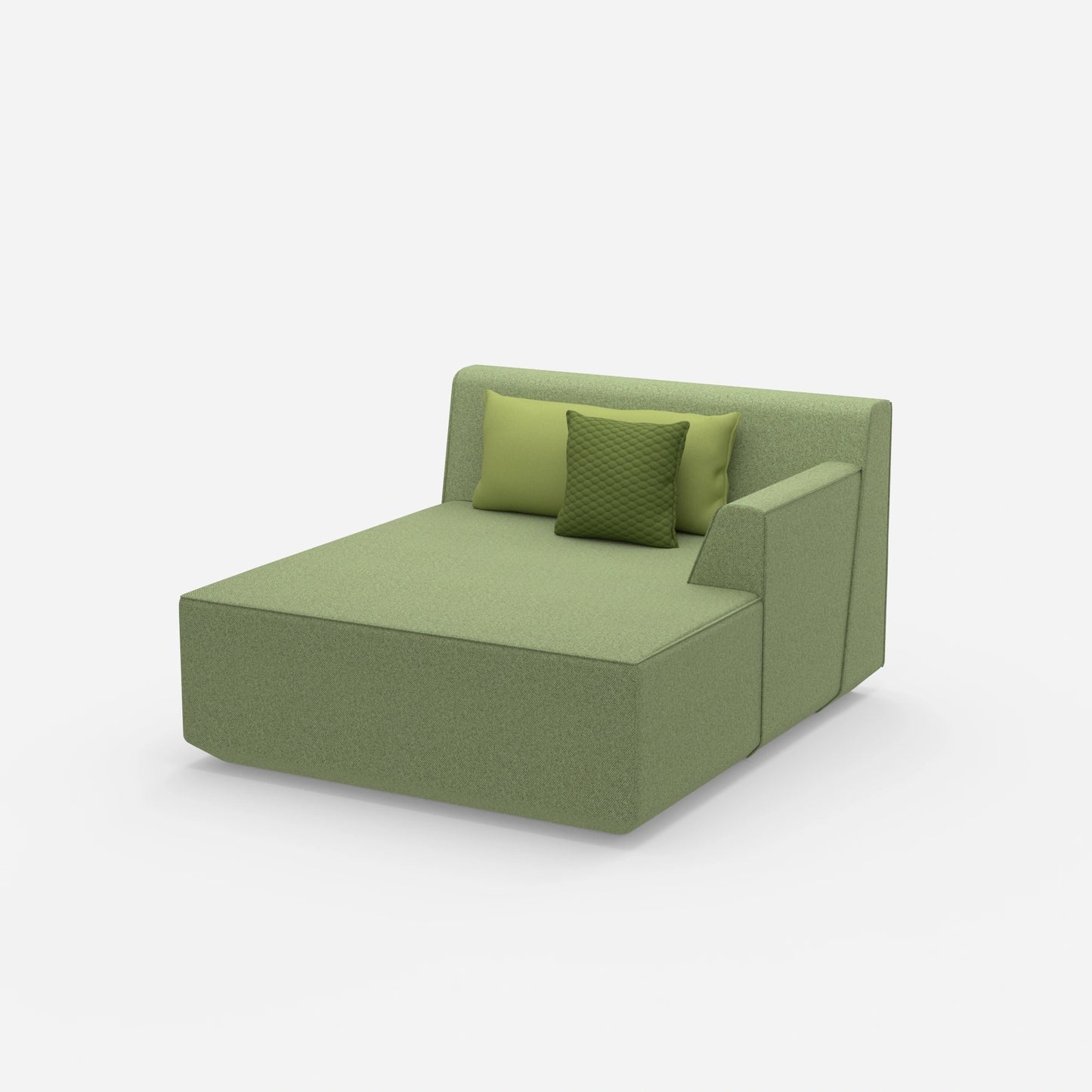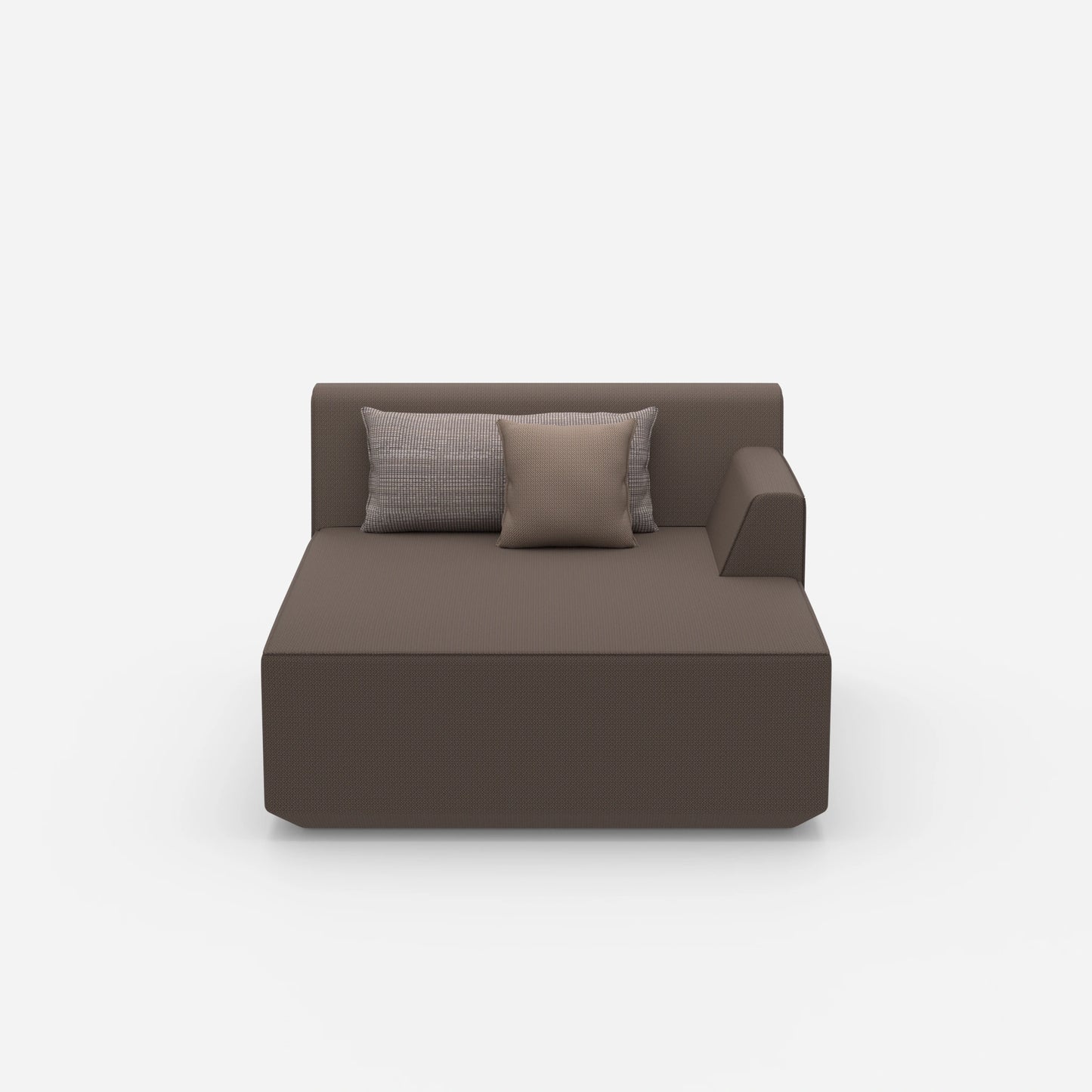 The chaise longue for 2 brings a breath of fresh air to the world of seating furniture. In the daybeds category, it offers a well thought-out structure with a clever modular design consisting of a right-hand chaise longue module and two cushions. This arrangement creates an open and versatile way to relax.