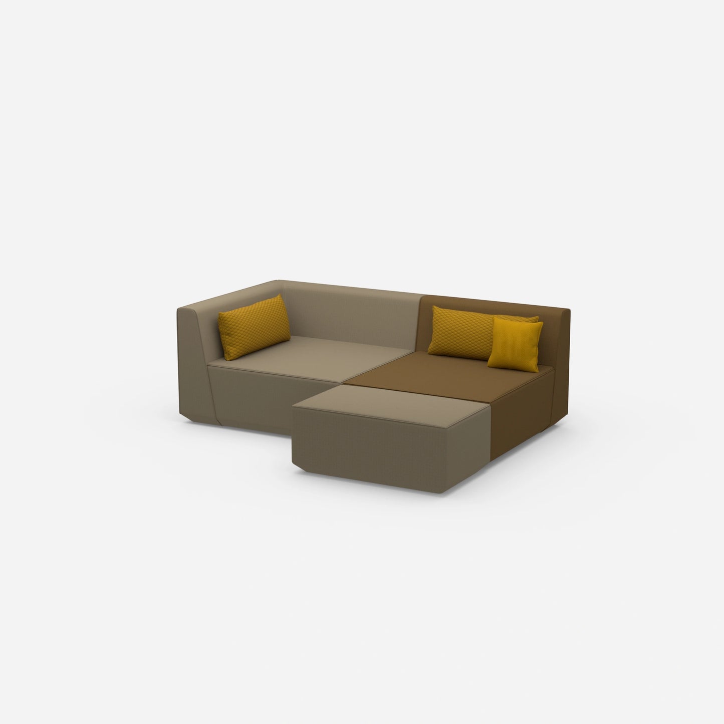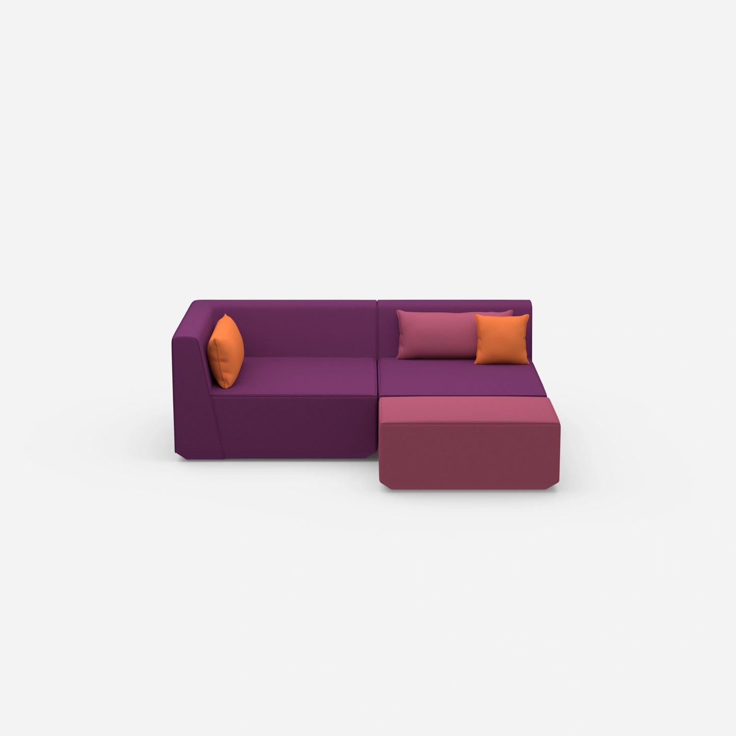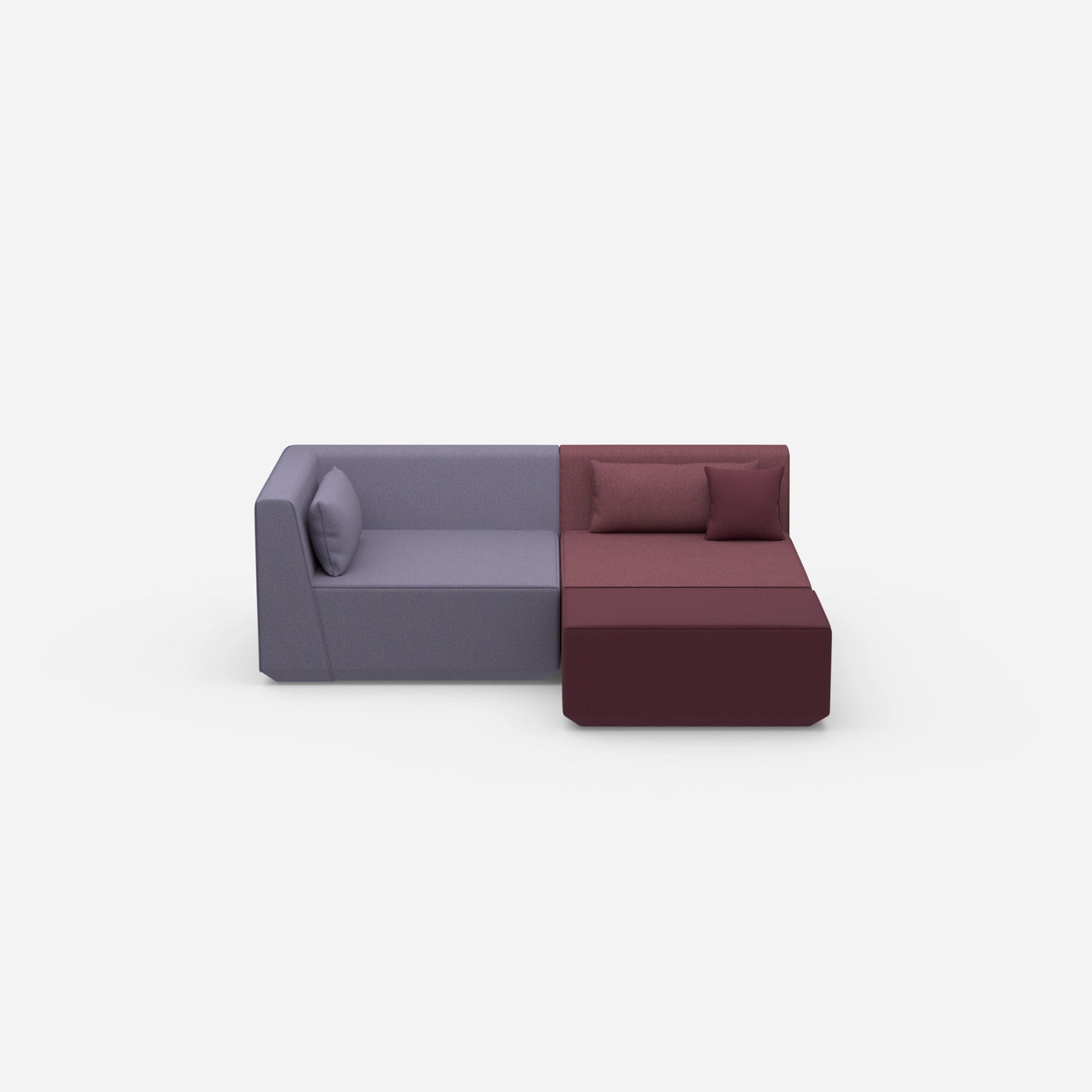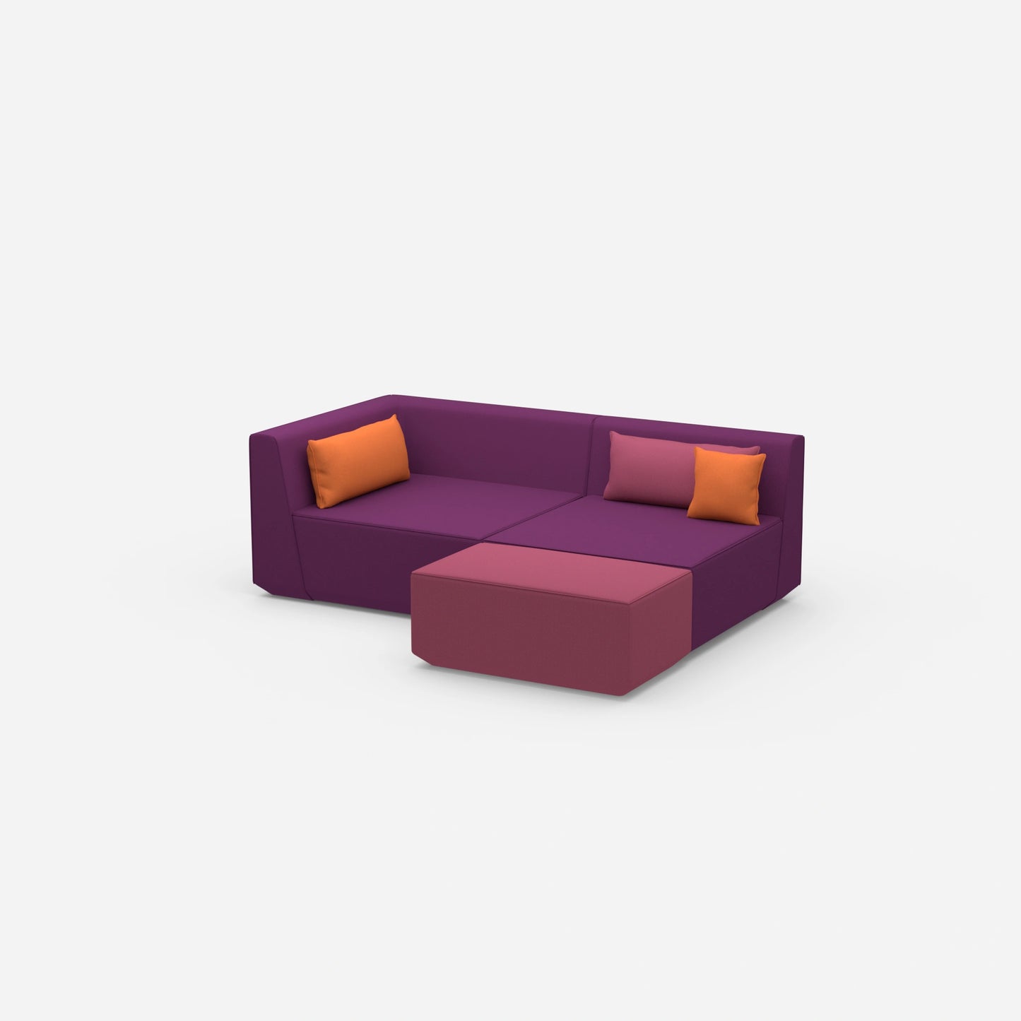Differently configured Cubit sofa modules in a large, open space - shows the variety of possible combinations and colours