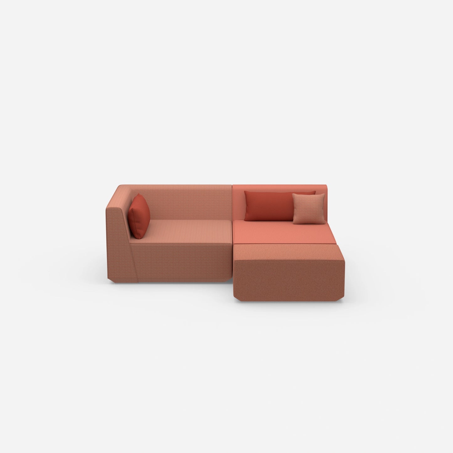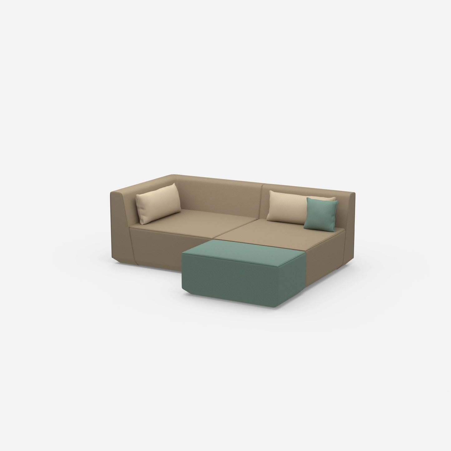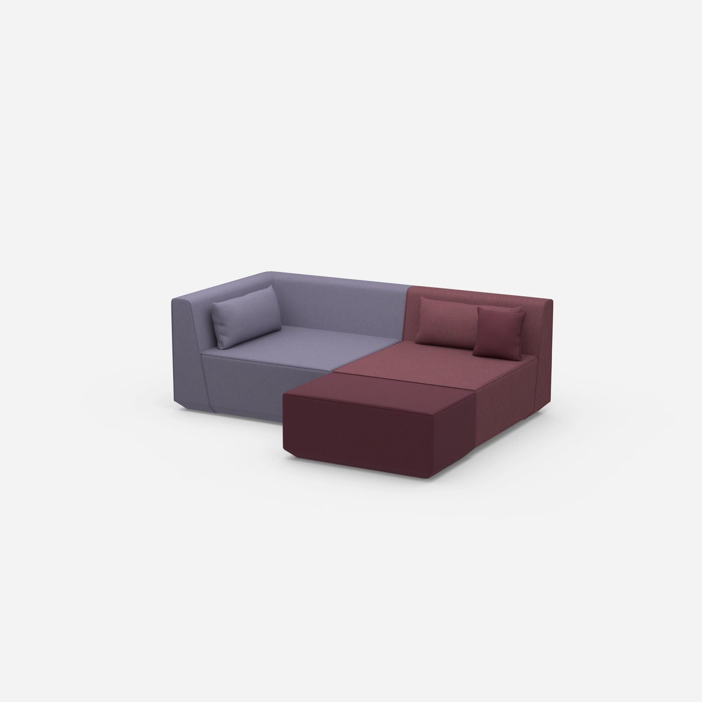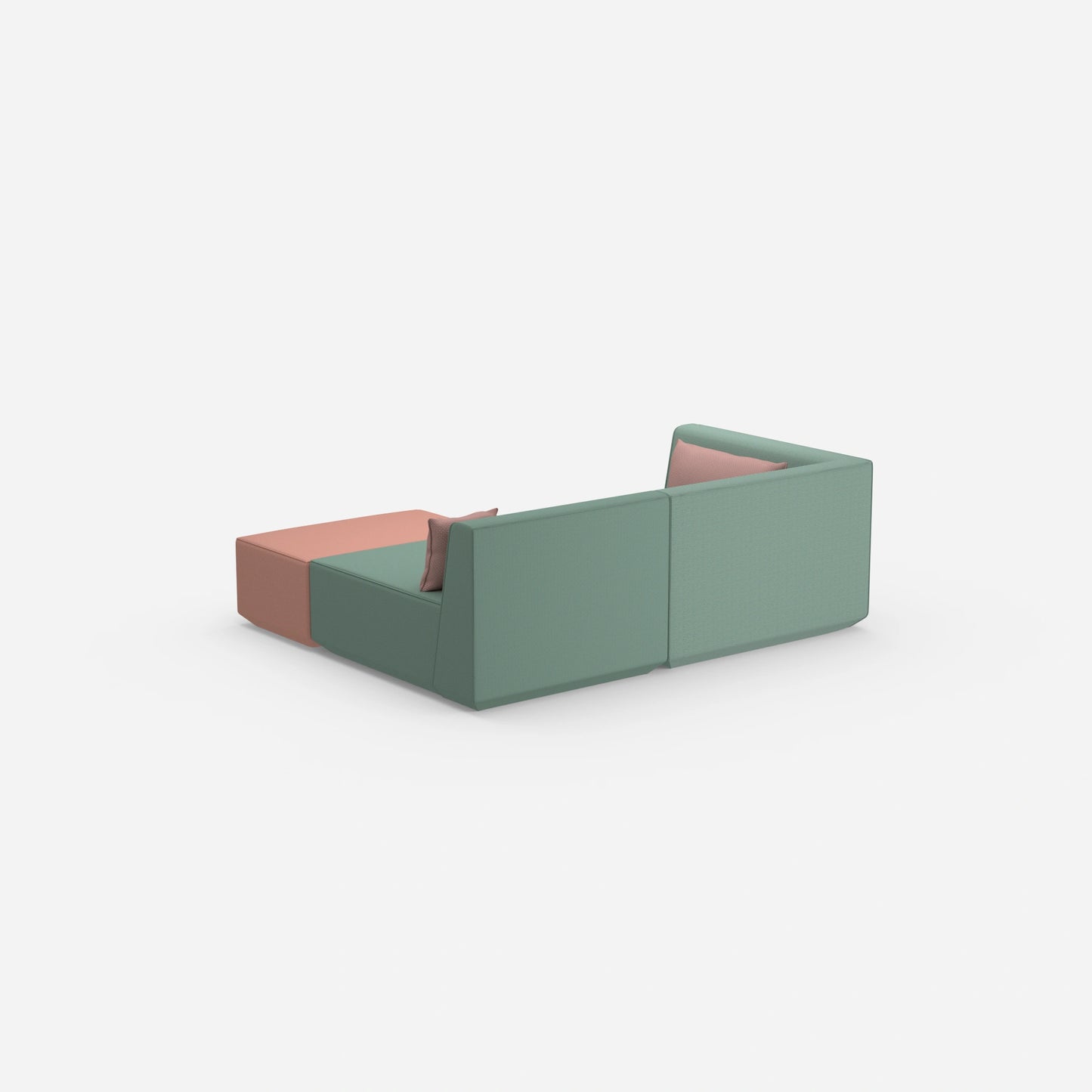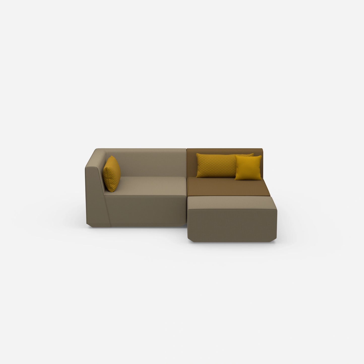 Differently configured Cubit sofa modules in a large, open space - shows the variety of possible combinations and colours