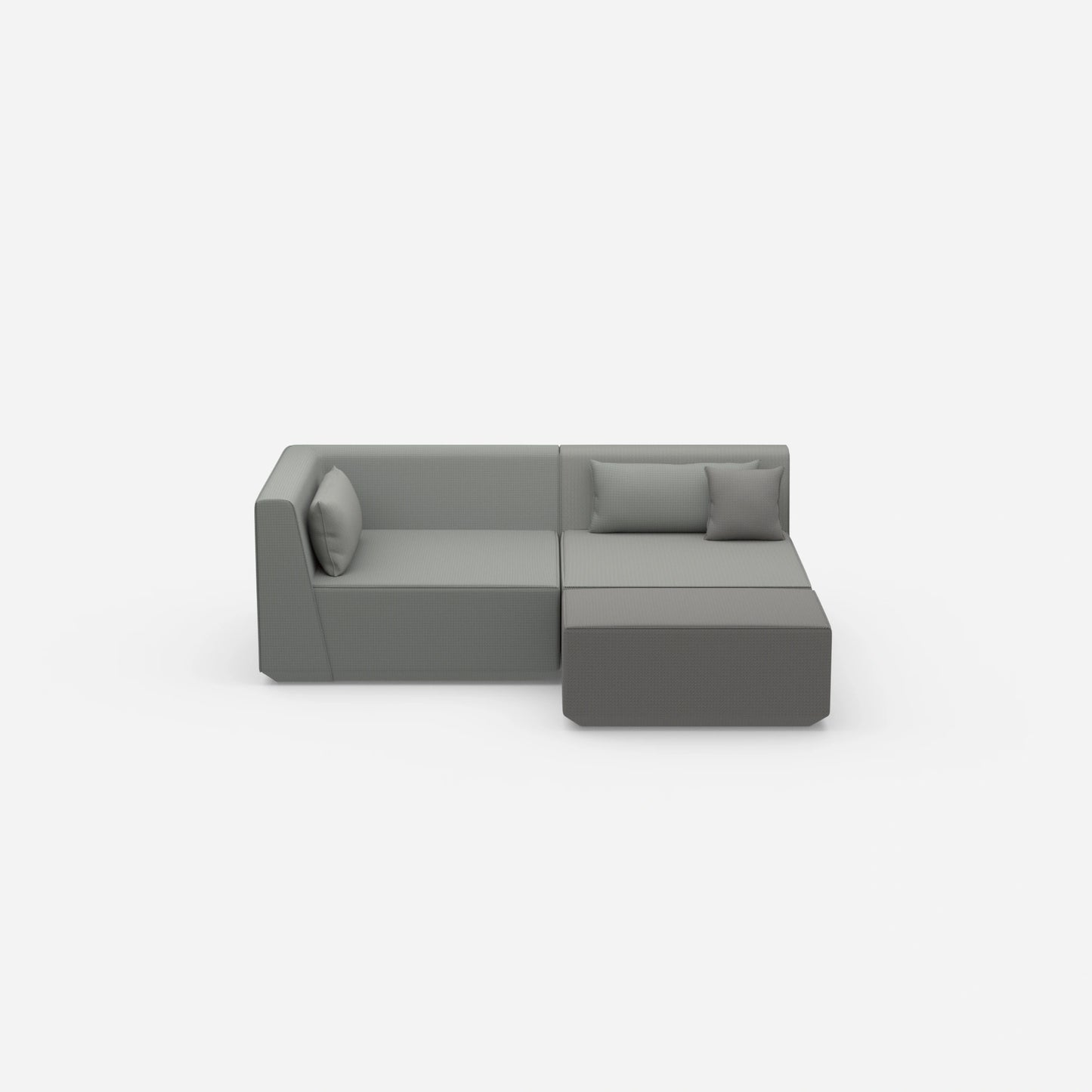 The deep corner sofa is an impressive Corner sofa that is an eye-catcher in any room. With three sofa modules, it offers a sophisticated arrangement. A left-hand corner module combined with a back module and a versatile pouf module. Three comfortable cushions complete the design. This structure creates an inviting and flexible seating landscape.
