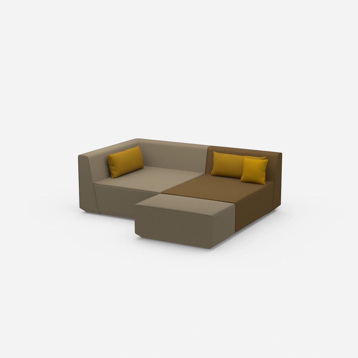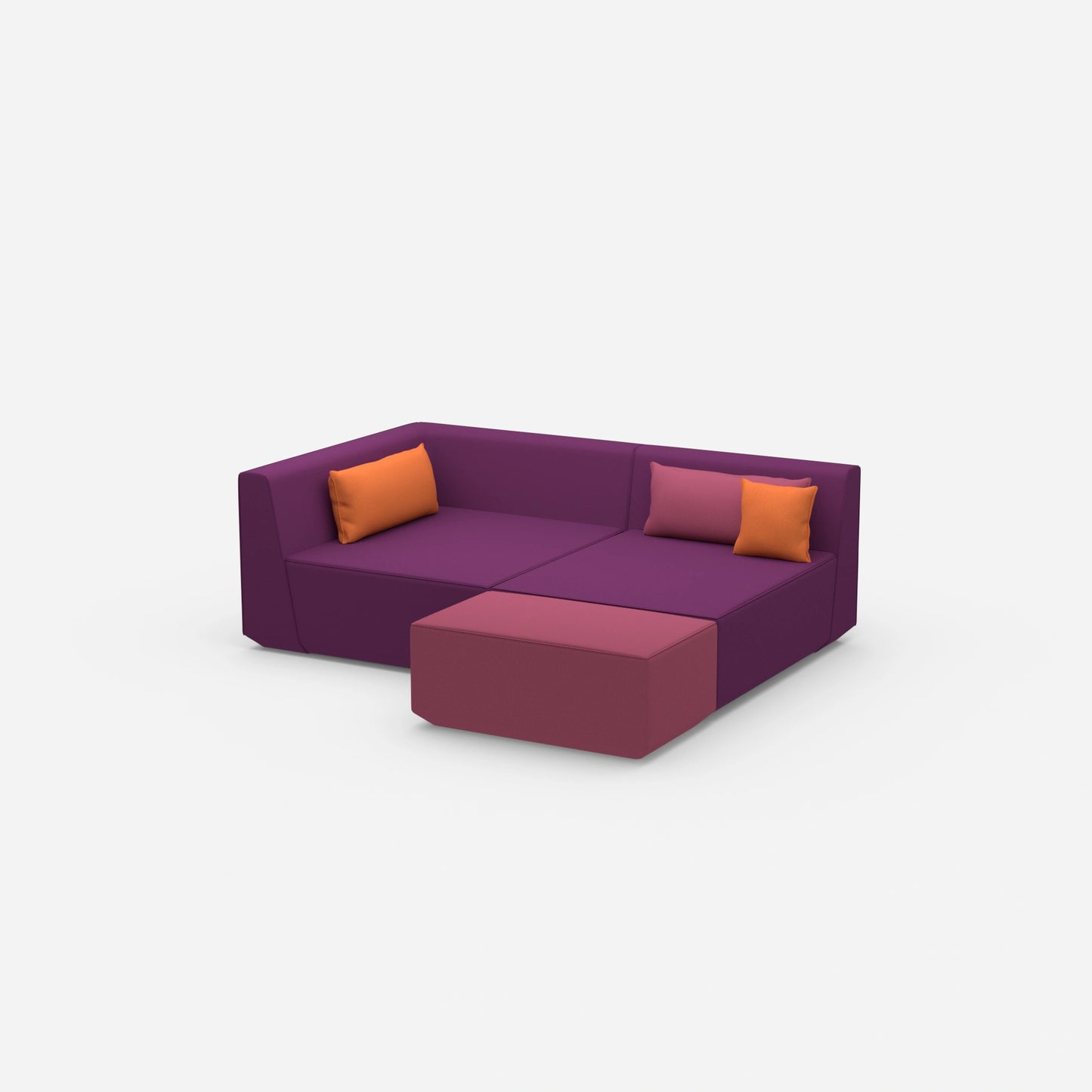 Differently configured Cubit sofa modules in a large, open space - shows the variety of possible combinations and colours