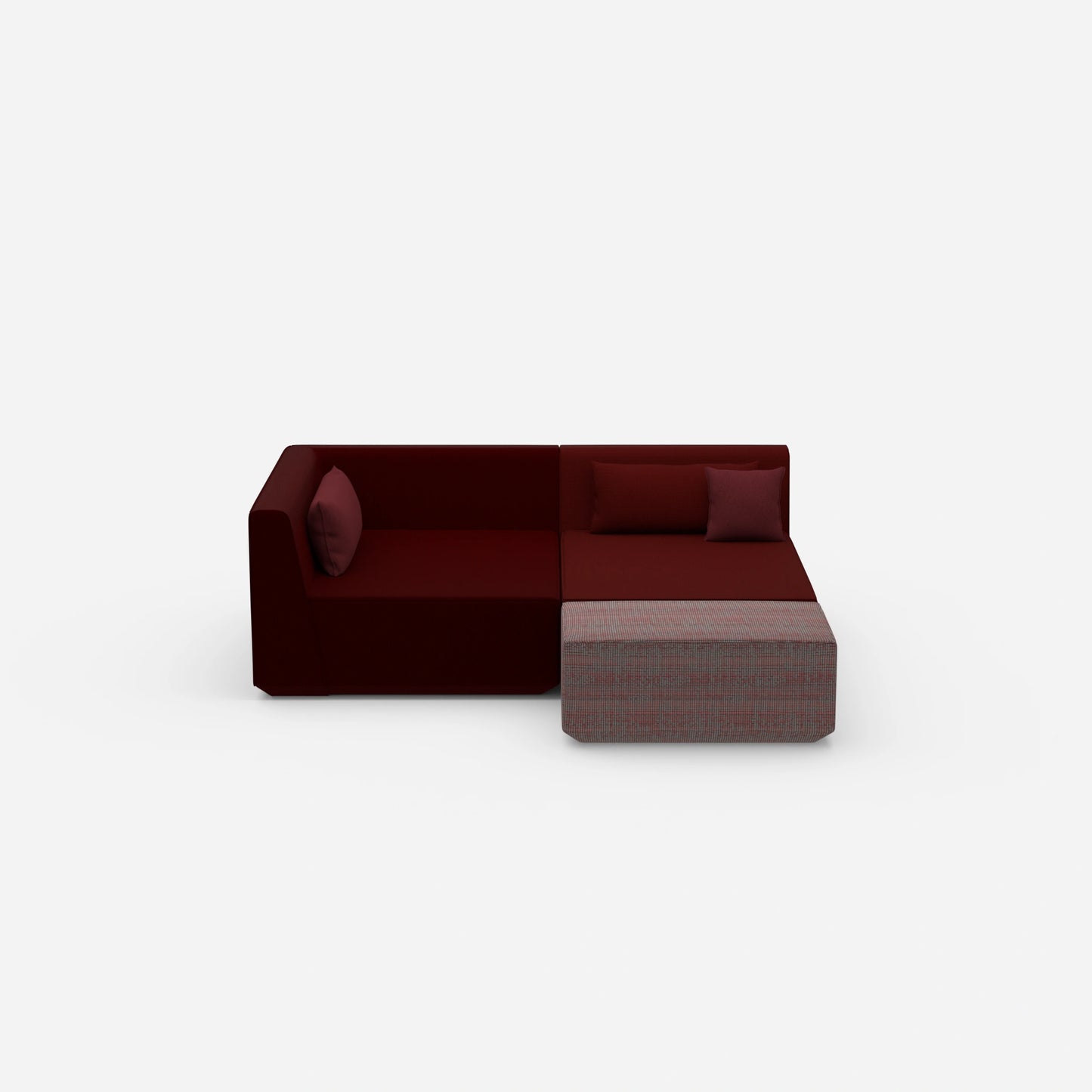 The deep modular corner sofa impresses in the world of flexible living solutions. This sofa offers a harmonious combination of three cushions, a pouf module, a corner module on the left and a back module. The modular structure allows for versatile arrangements to suit your style.