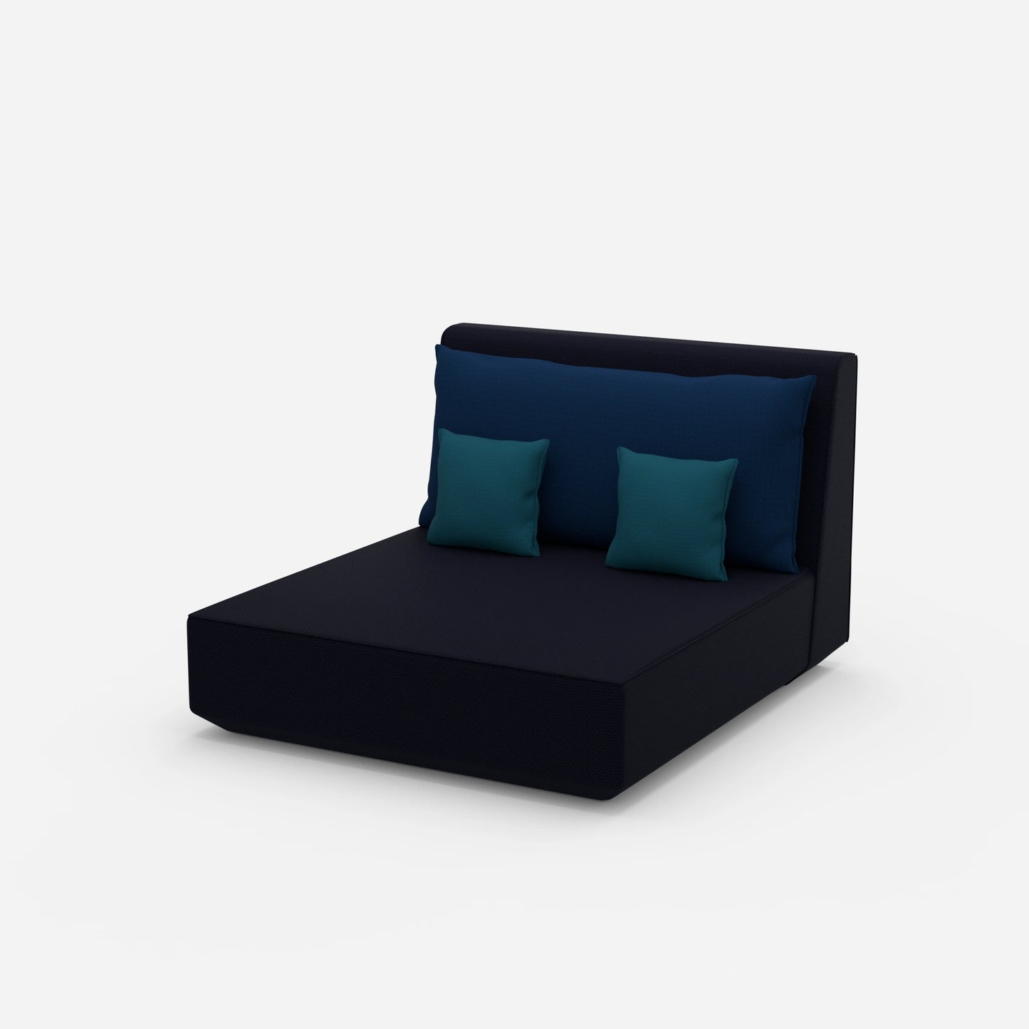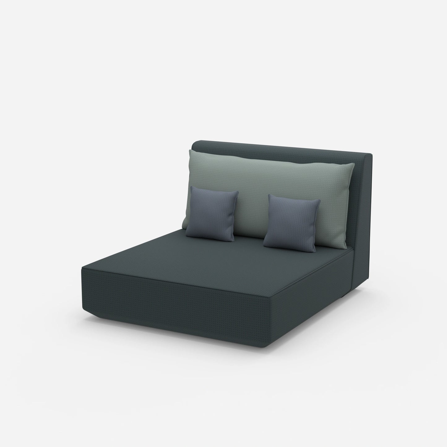 The double sofa bed is a masterpiece of the art of reclining. It consists of a single module with three soft cushions and a sturdy backrest module. This combination offers flexibility and comfort. Perfect for a dynamic living ambience that adapts easily to different needs.