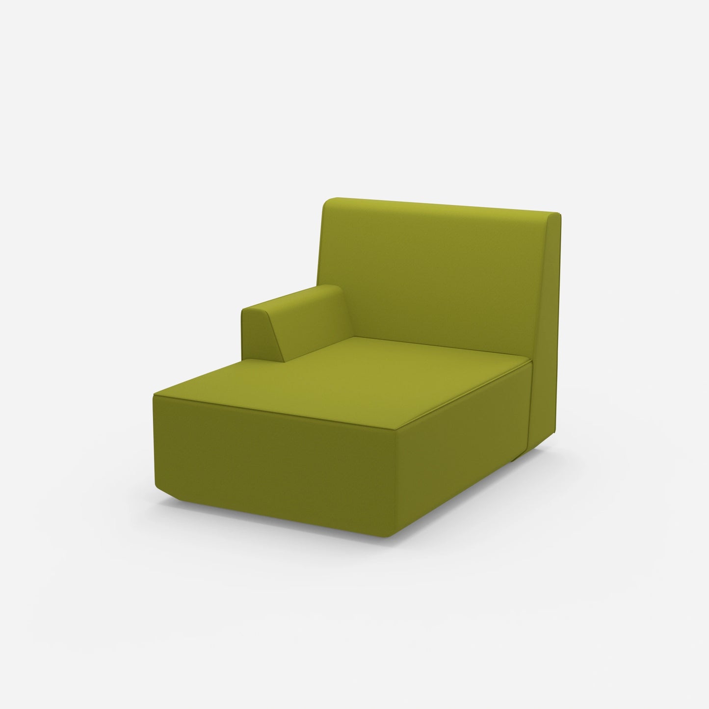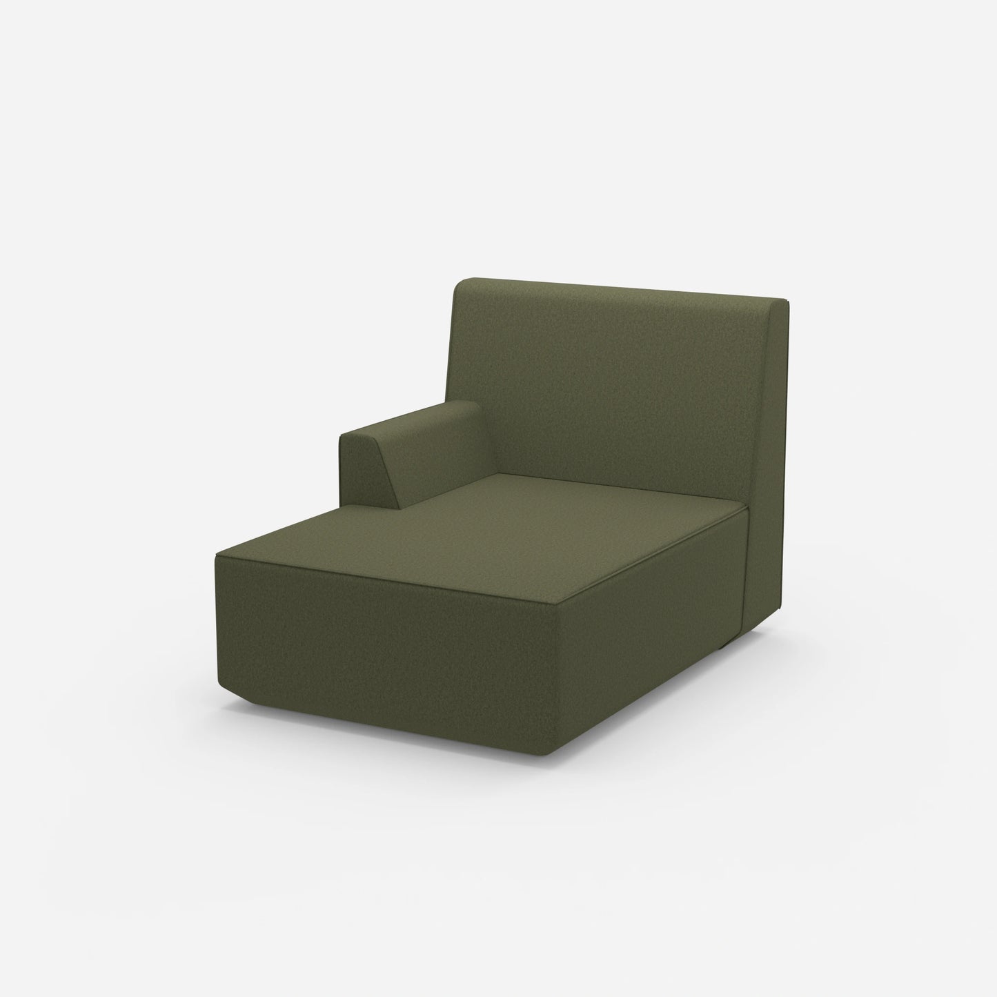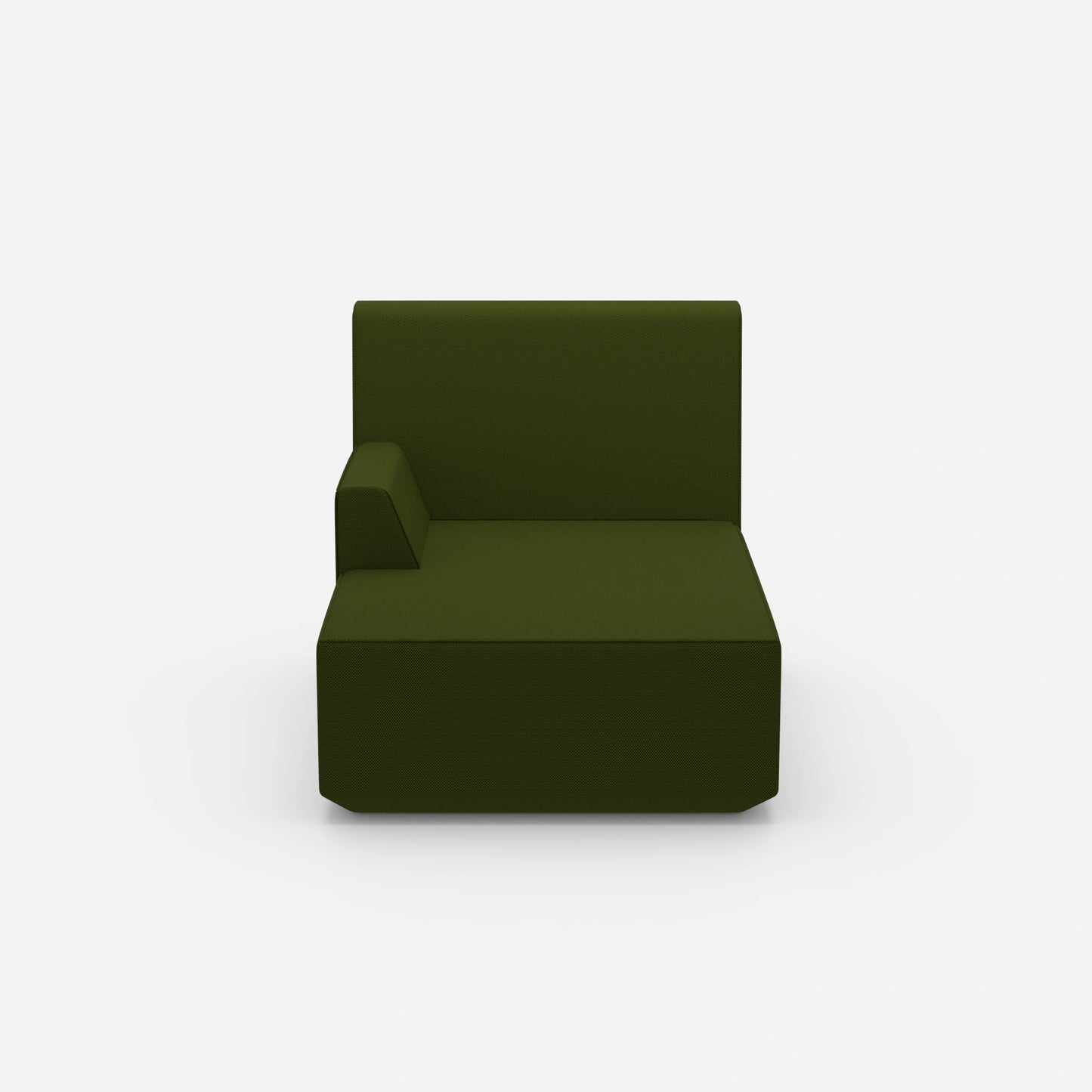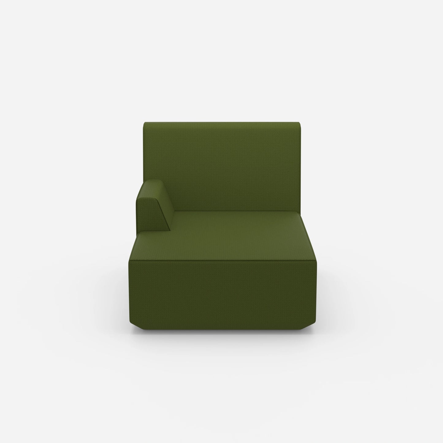 The green chaise longue 100 cm wide is a versatile eye-catcher in the daybeds range. With its single chaise longue module on the left, it offers a compact yet open structure. This design fits perfectly into any corner of the room and creates a cosy retreat.