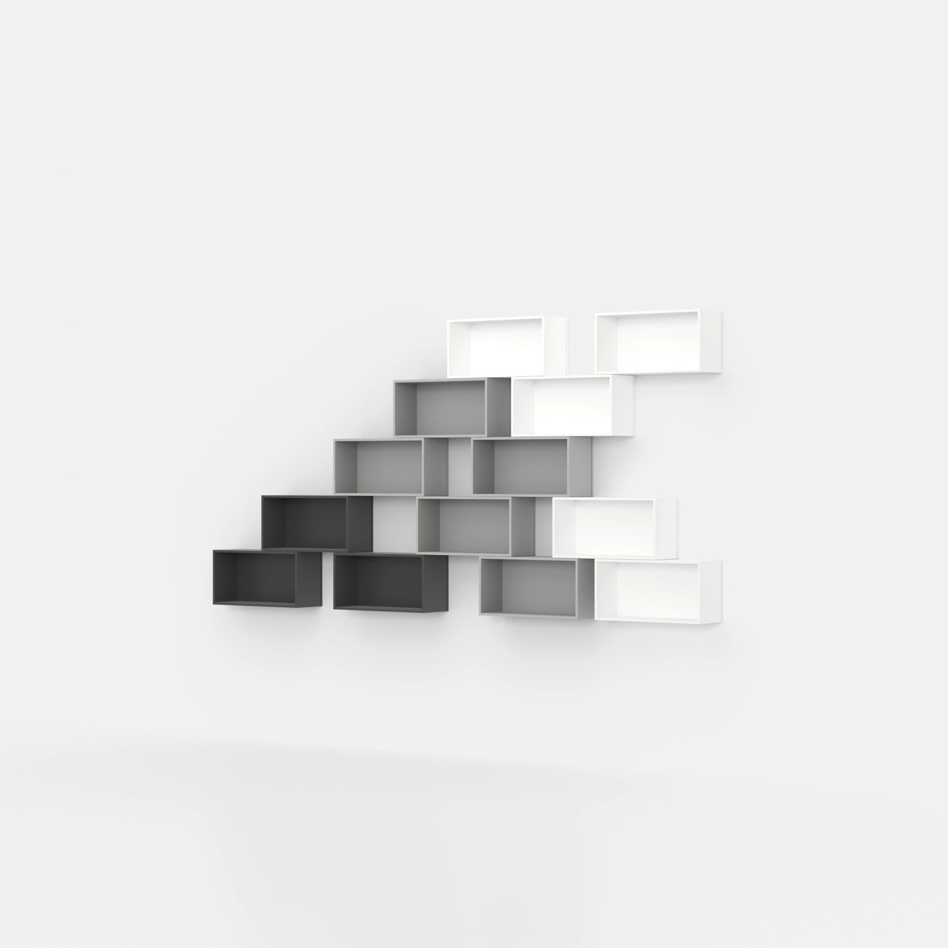• The solid rear wall of the shelving system is made of 23 mm MDF.