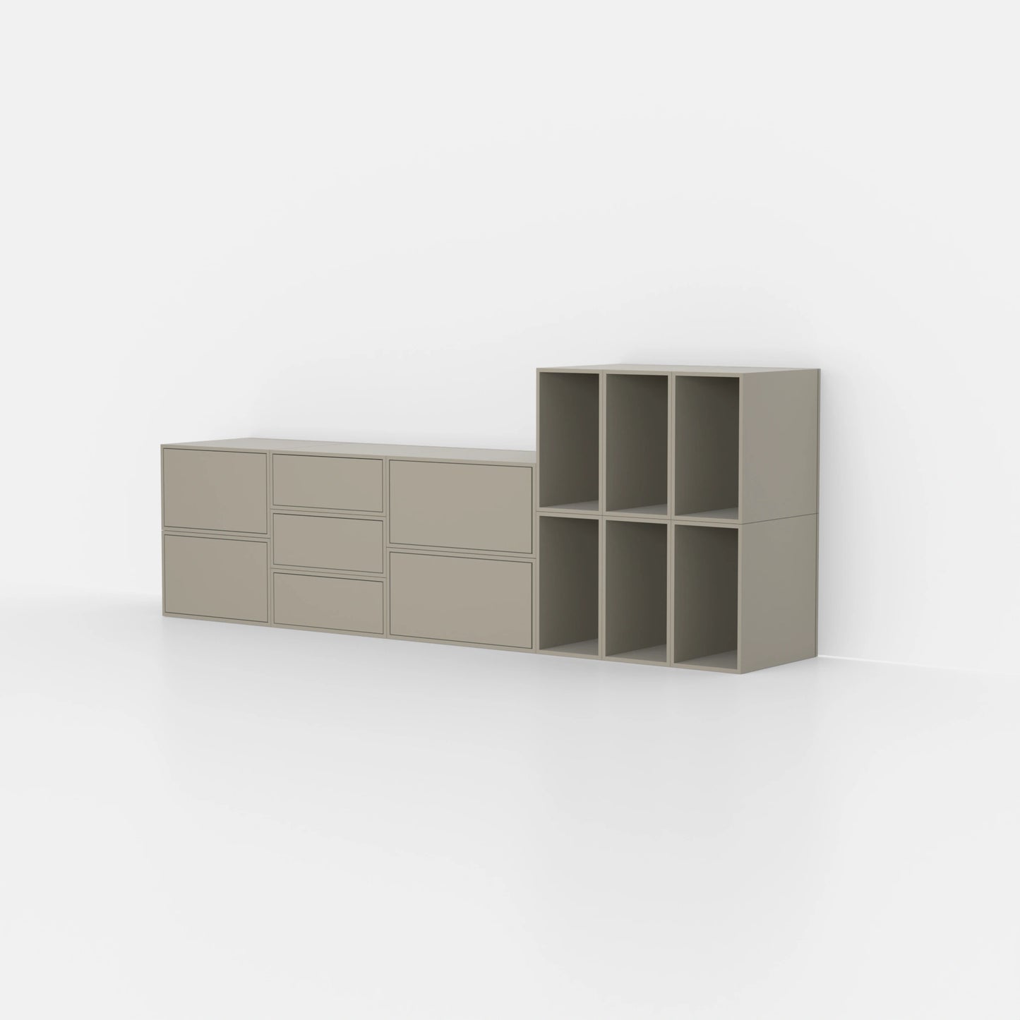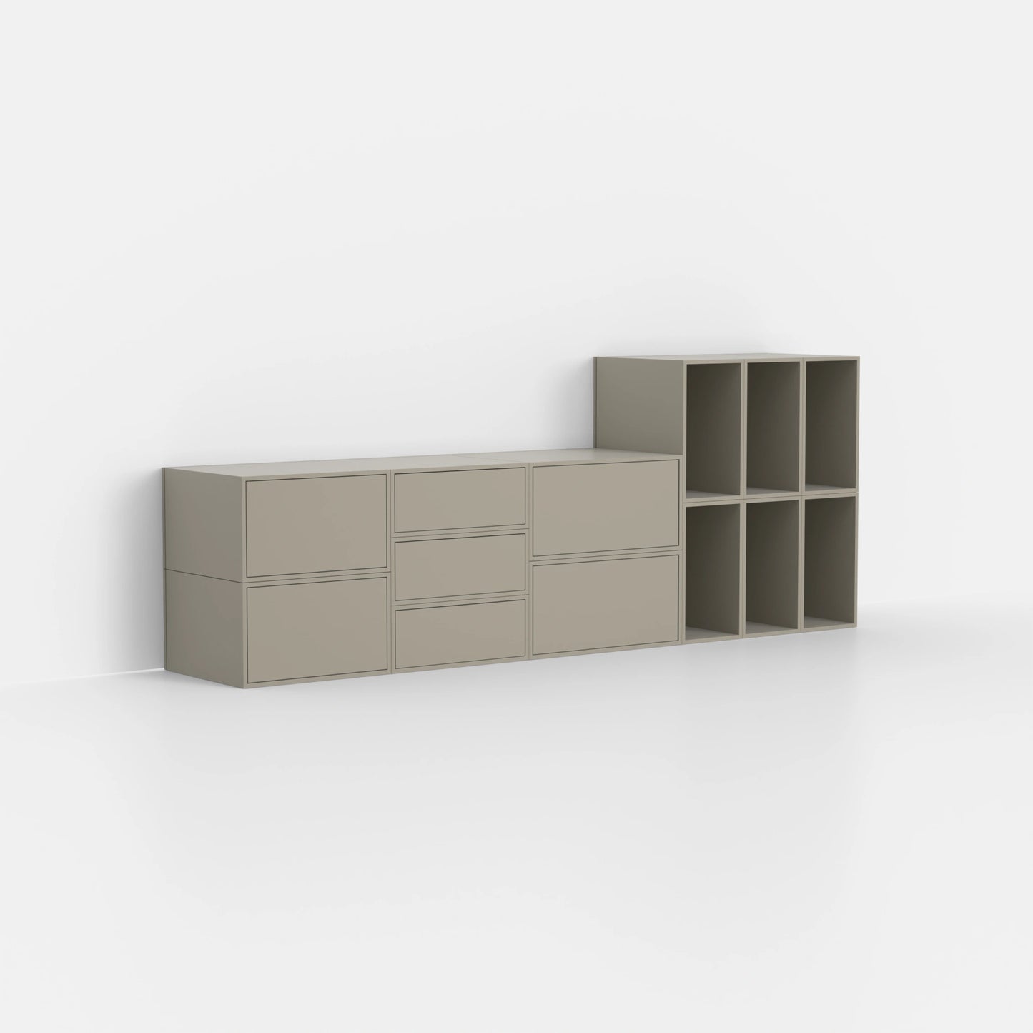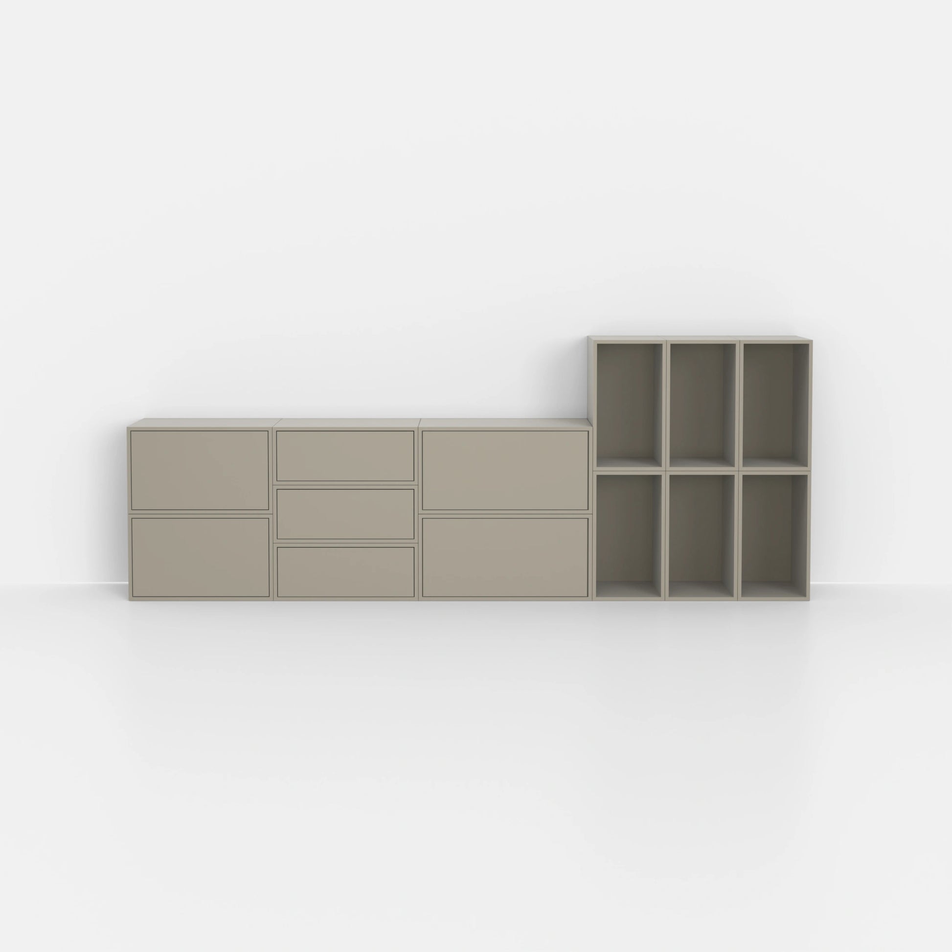 fango grey light is the color of the RK1049. It gives the shelf a modern, elegant look. This grey easily matches various furnishing styles and harmonizes with other shades.