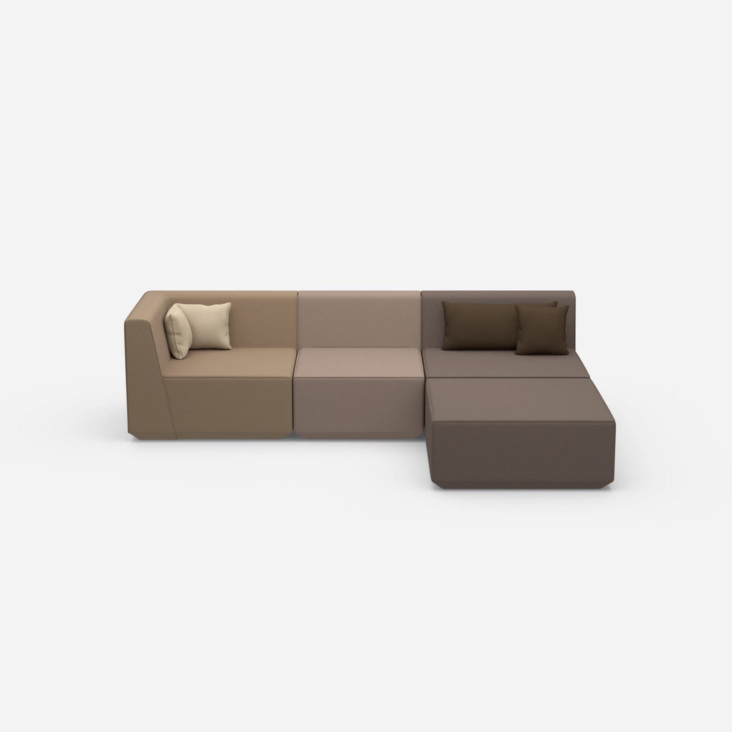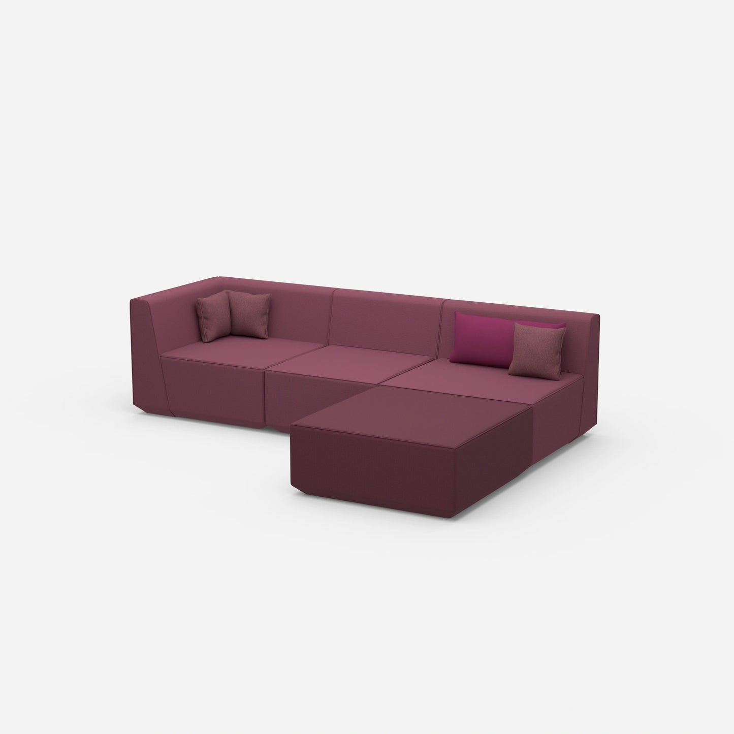 Differently configured Cubit sofa modules in a large, open space - shows the variety of possible combinations and colours