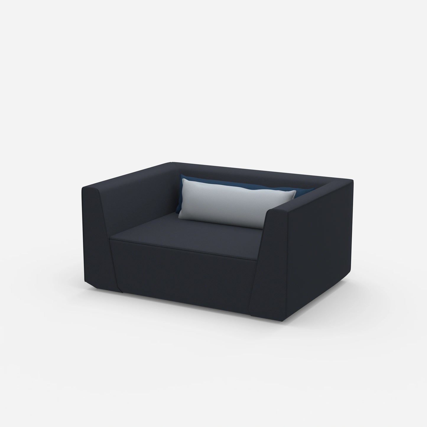 The large armchair 160 cm wide attracts everyone's attention. As part of the versatile armchair collection, it offers a perfect balance between comfort and style. An armchair module and two soft cushions form its modular structure. These elements create an inviting seat that blends harmoniously into any living concept.