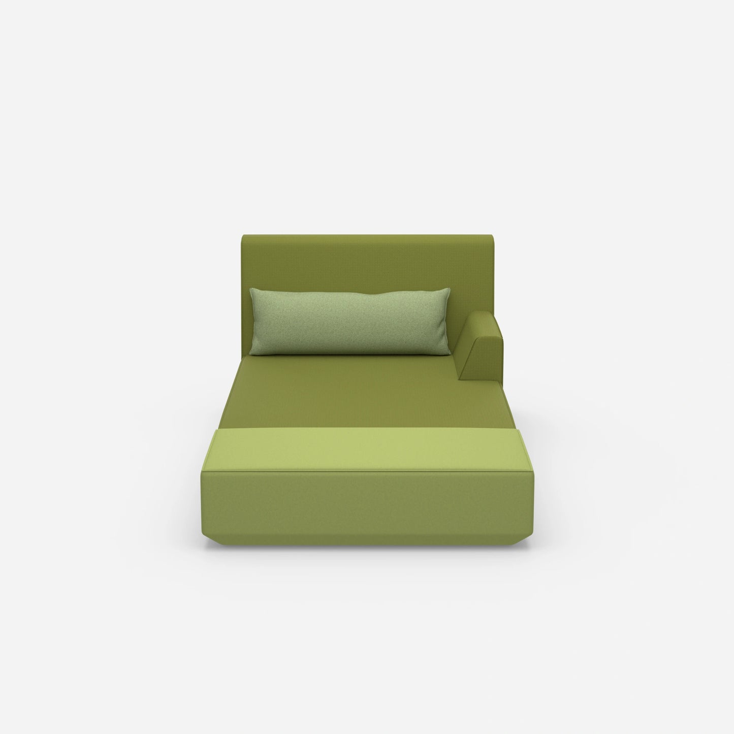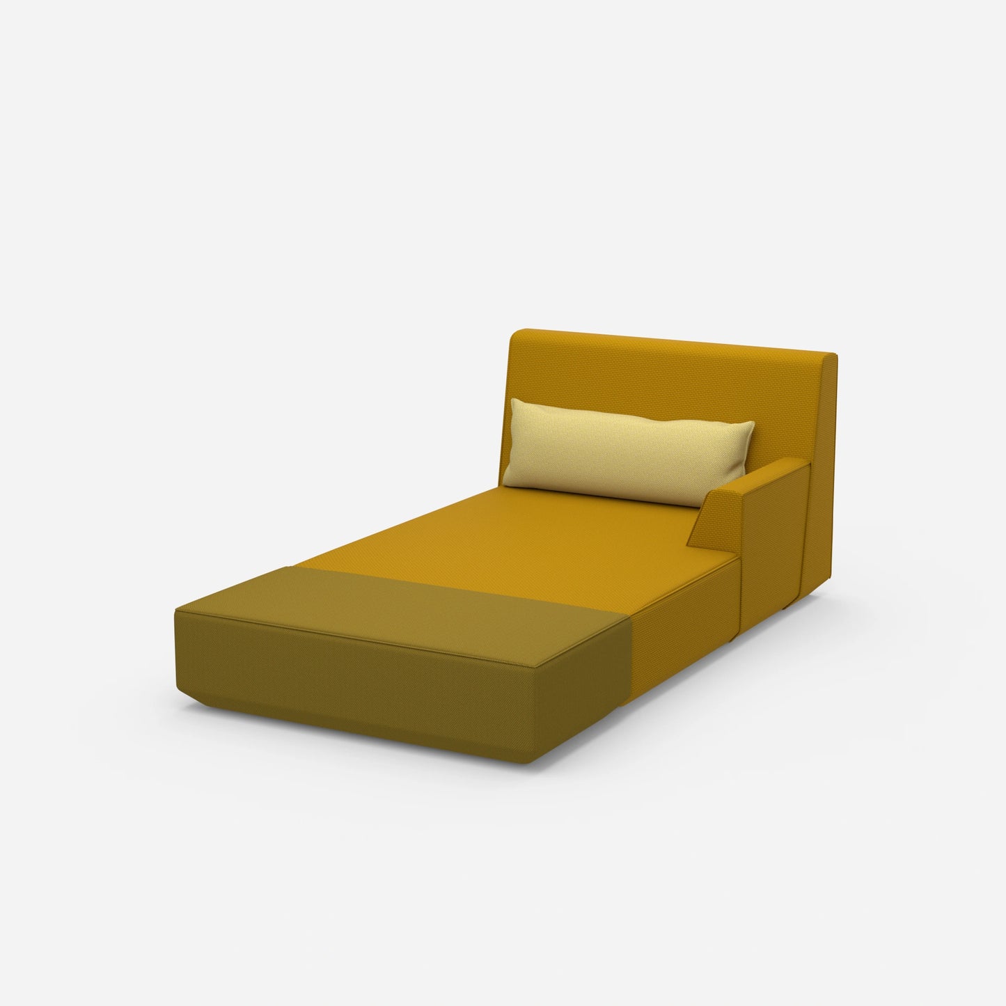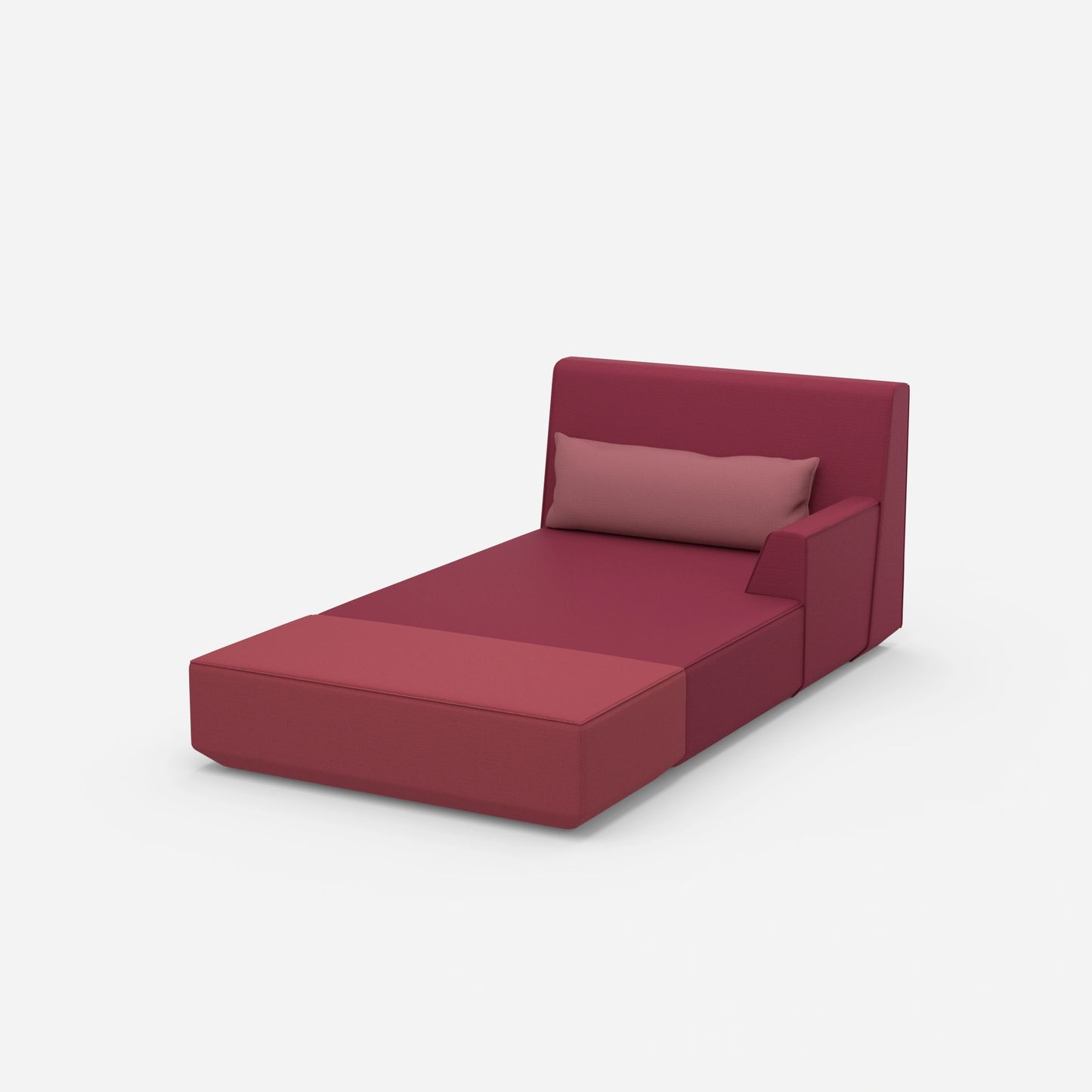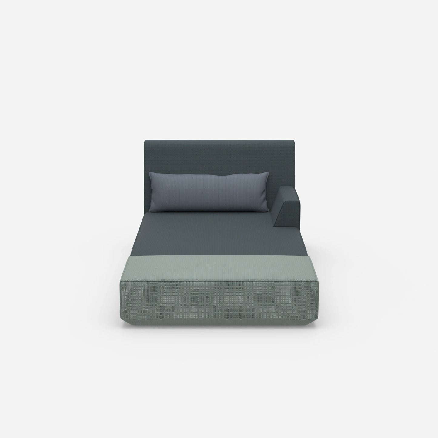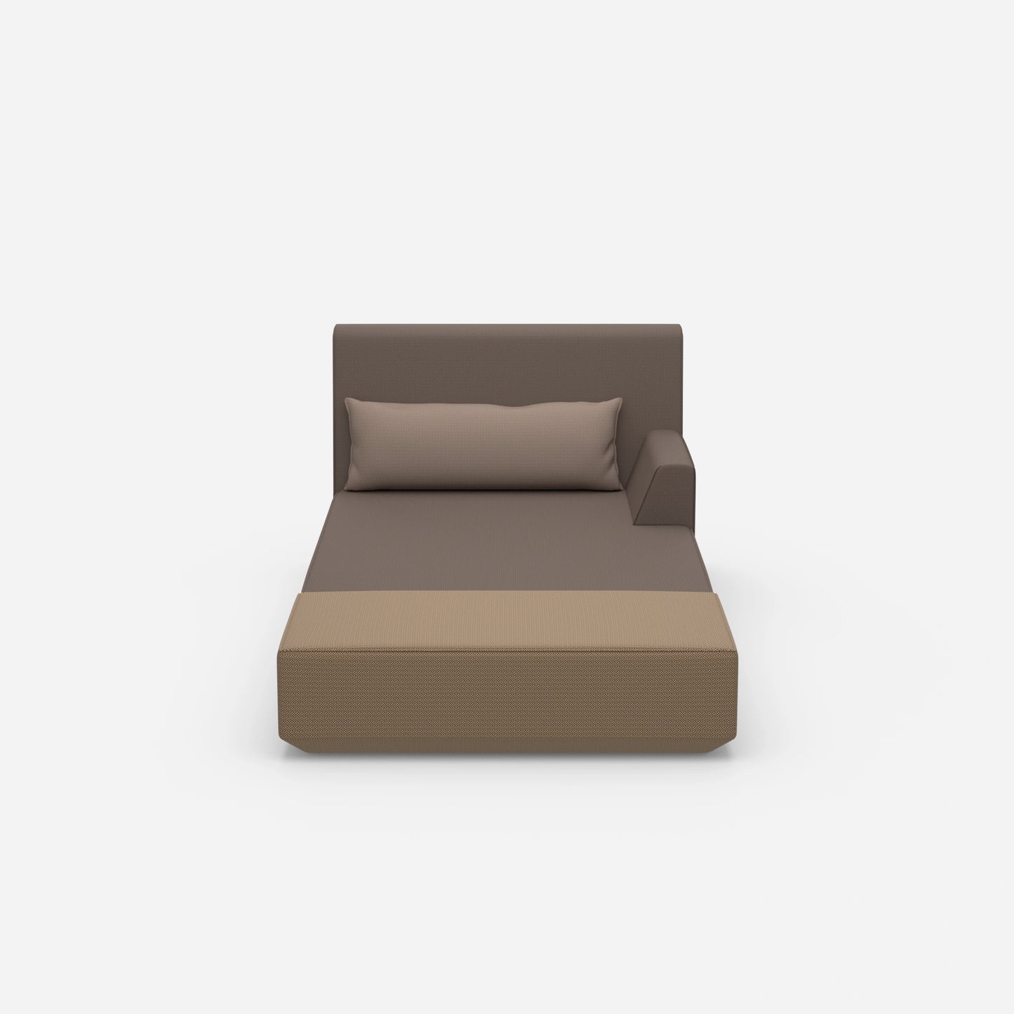 The modern chaise longue for sleeping brings a breath of fresh air into your living area. As a flexible piece of furniture in the daybeds category, it offers a wide range of possible uses. Two modules, consisting of a cushion and a pouf module, as well as a chaise longue module on the right, create a harmonious unit. This structure enables an open and compact arrangement that easily adapts to your needs.