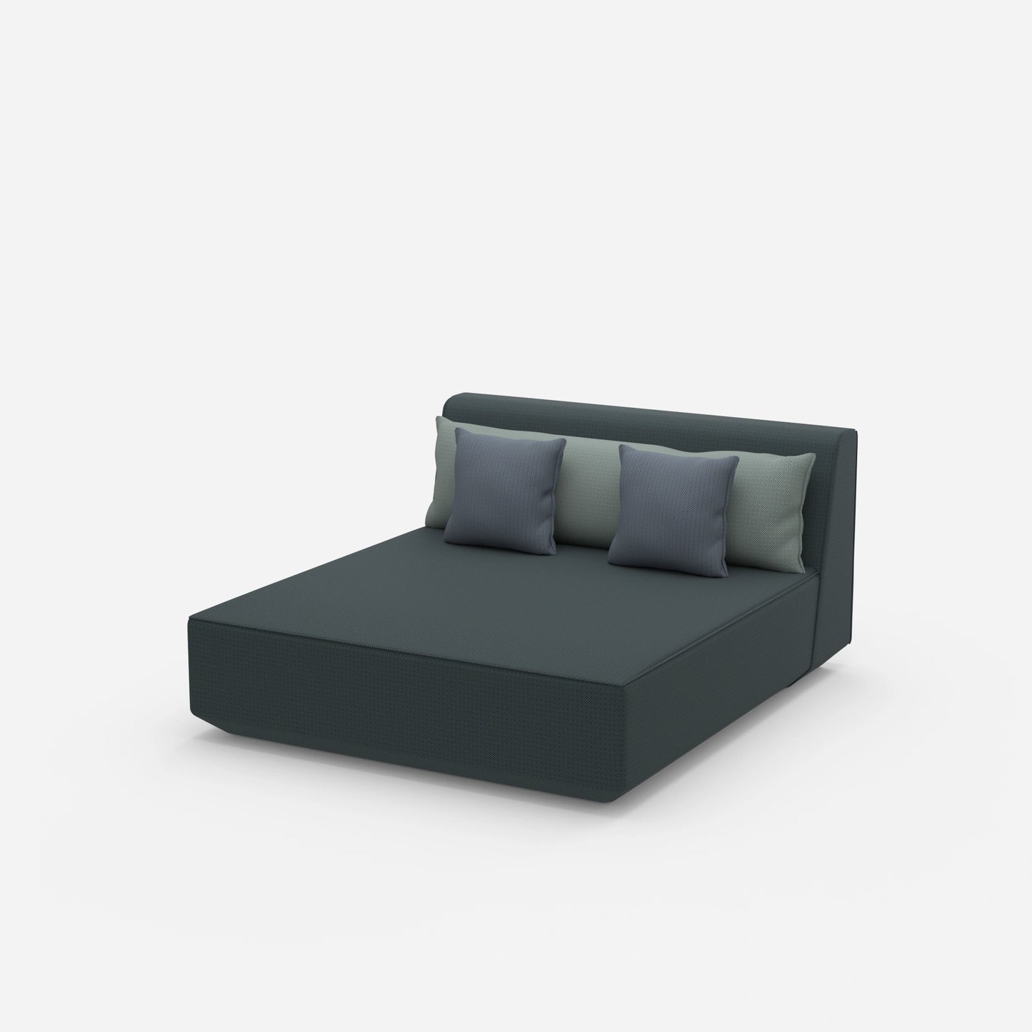 The modern double daybed is a stylish piece of furniture from the daybeds category. It offers a modular structure with a backrest module and three cushions. This combination allows flexibility and adaptation to your needs. Use the open design to create your own personal relaxation zone.