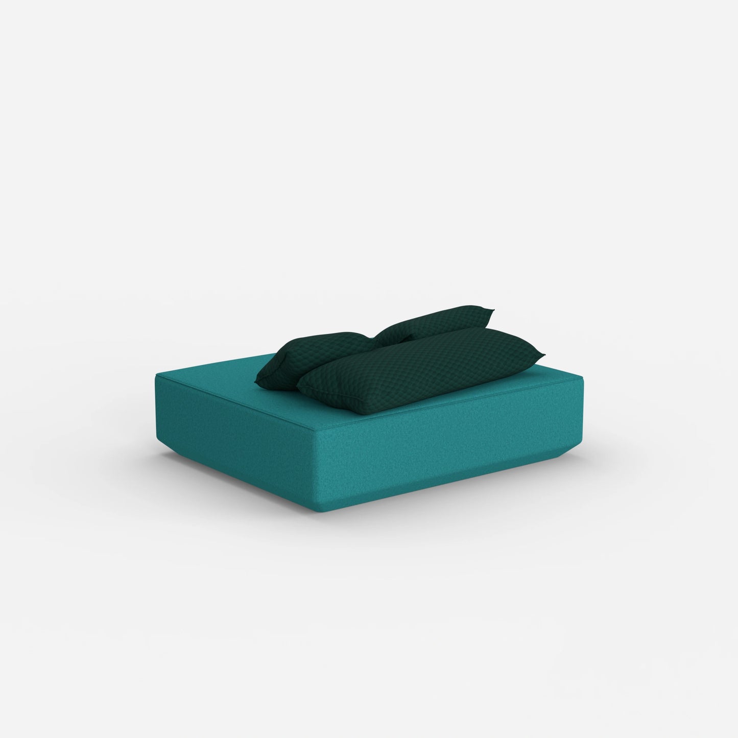 The modern petrol pouf is more than just a piece of seating furniture. As part of the versatile pouf category, it brings style and functionality to any room. With a single module consisting of a robust pouf and three elegant cushions, it offers flexibility. Whether open for relaxed moments or compact as additional seating, the possibilities are endless.