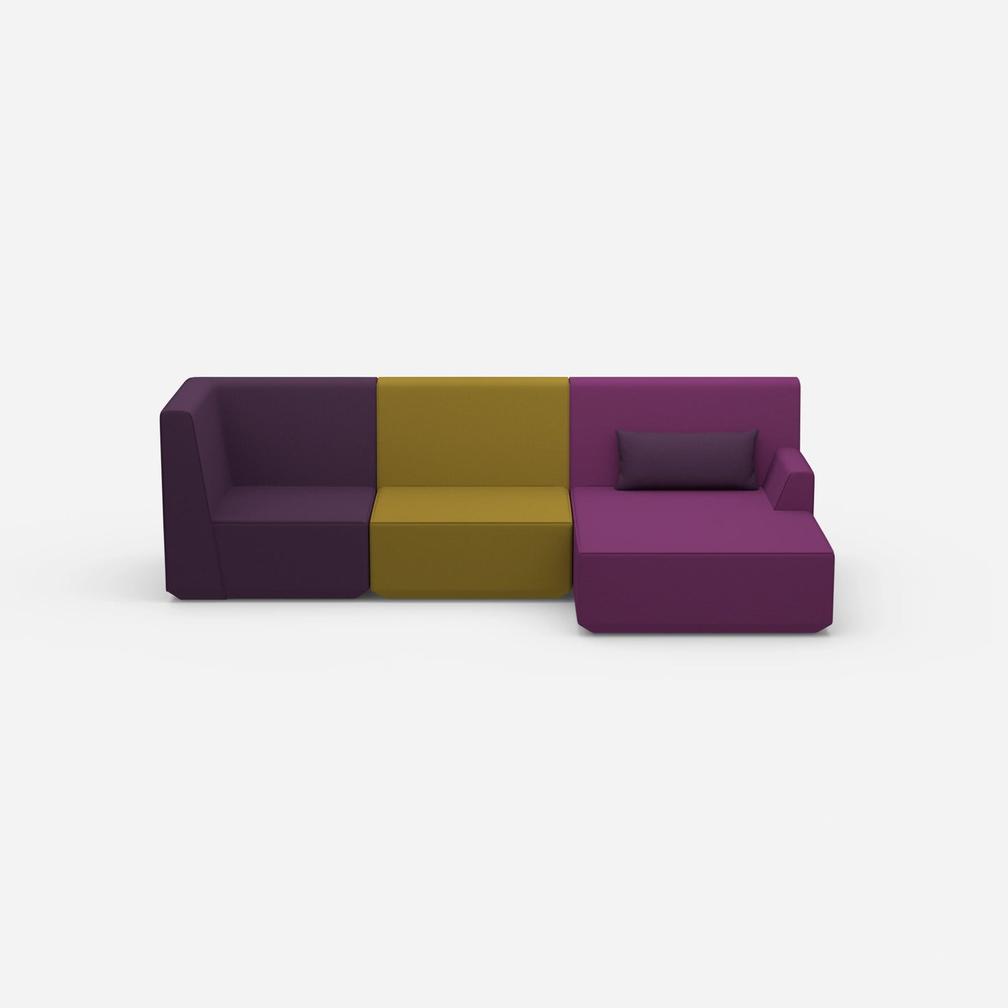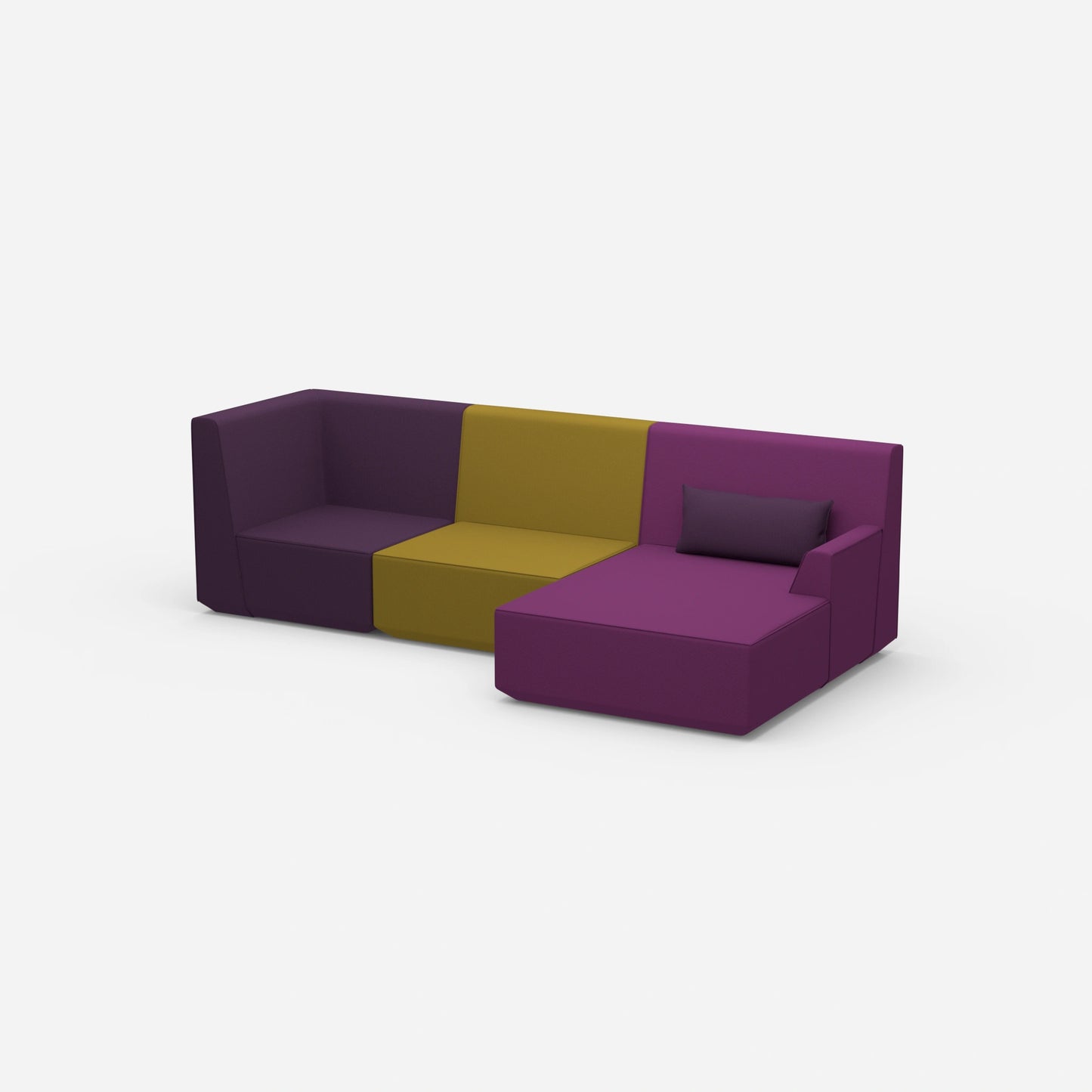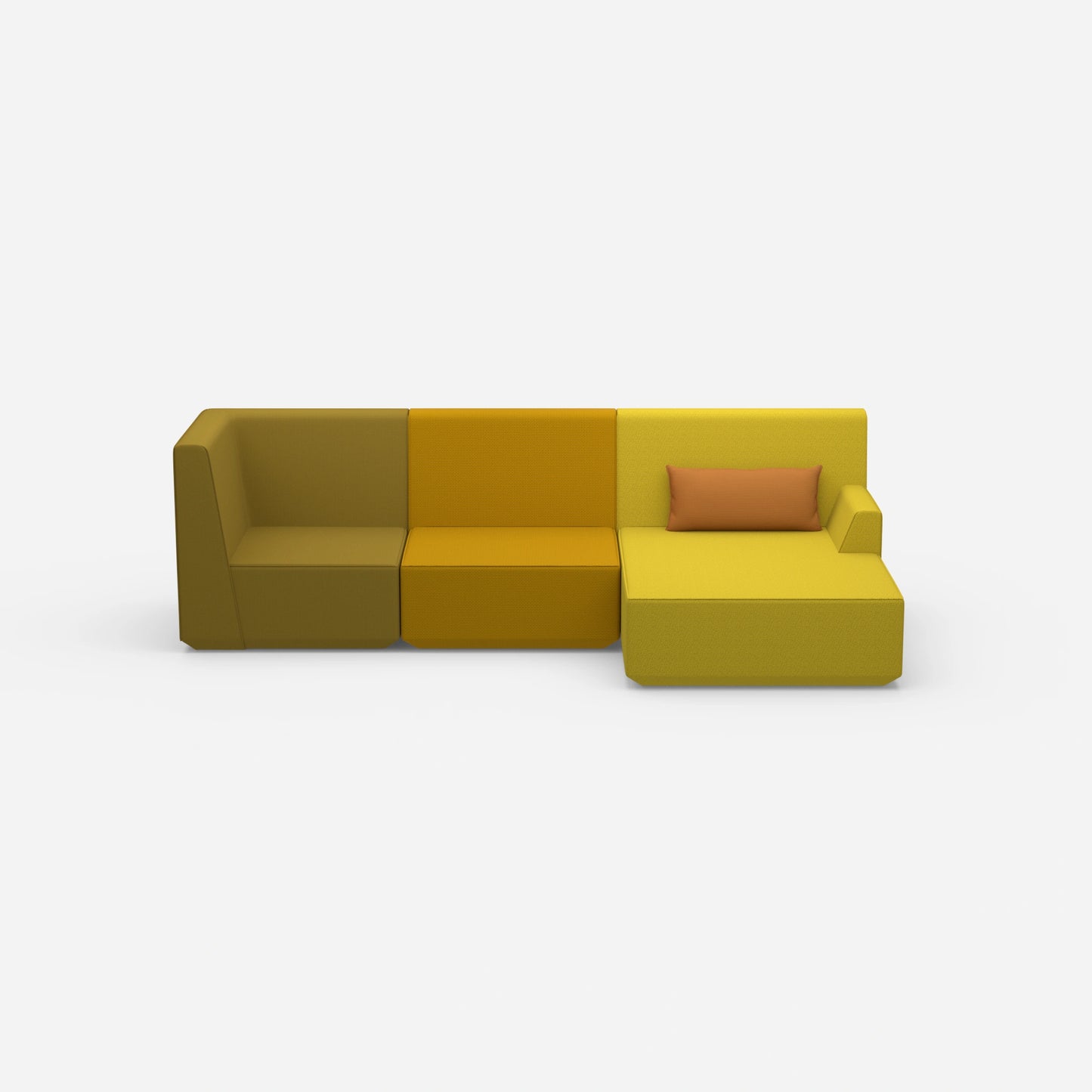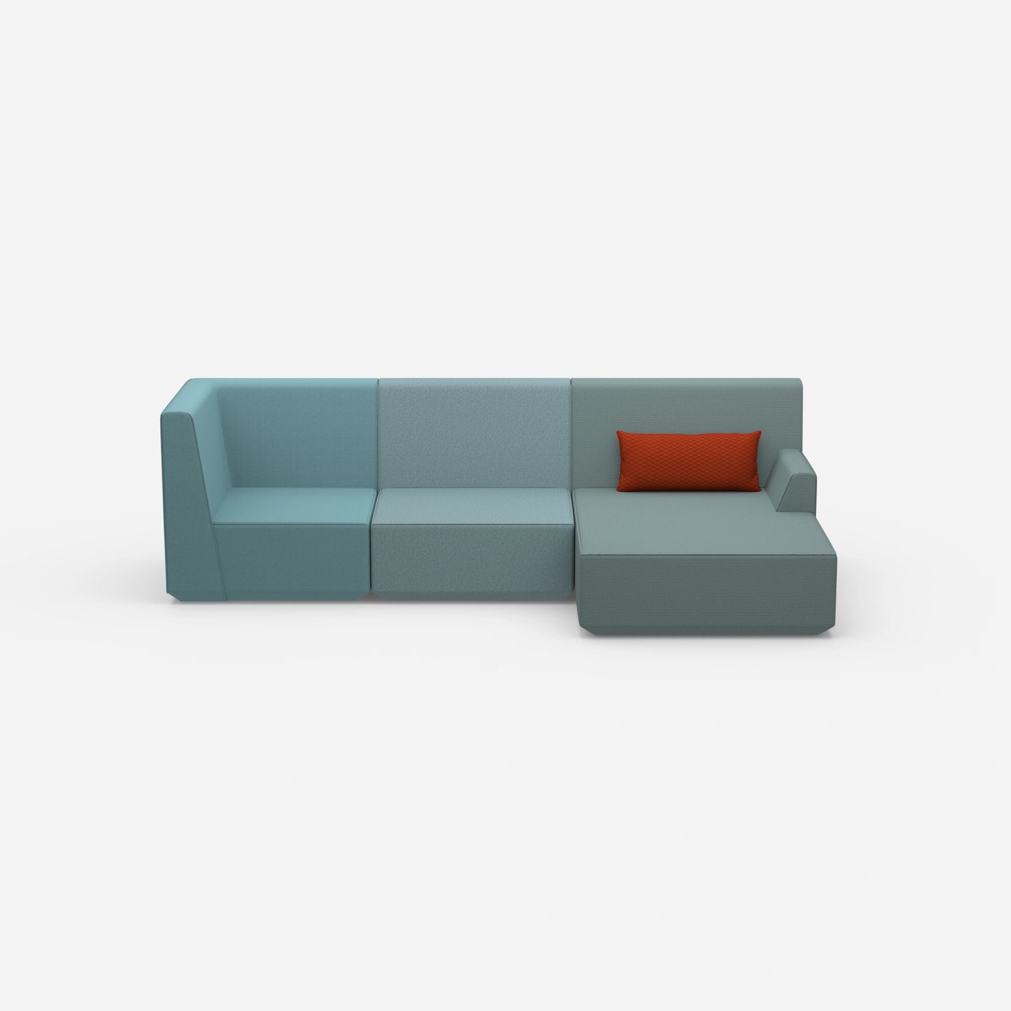 Differently configured Cubit sofa modules in a large, open space - shows the variety of possible combinations and colours