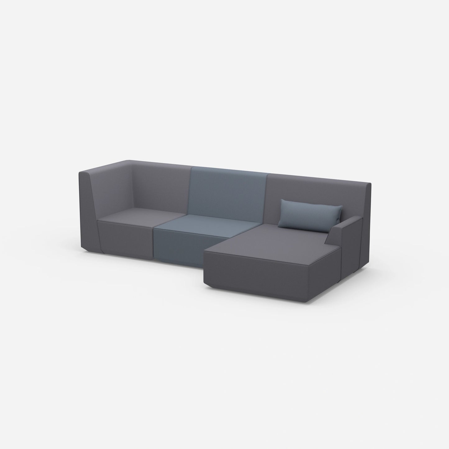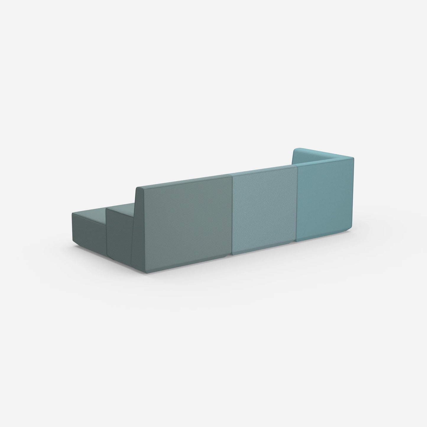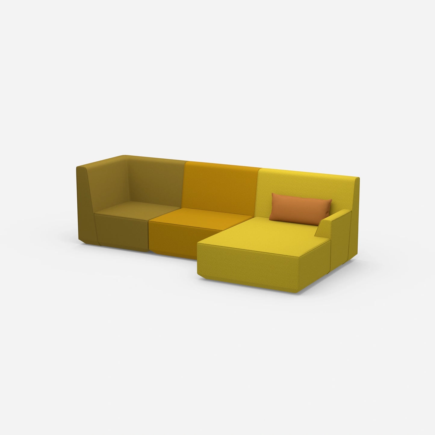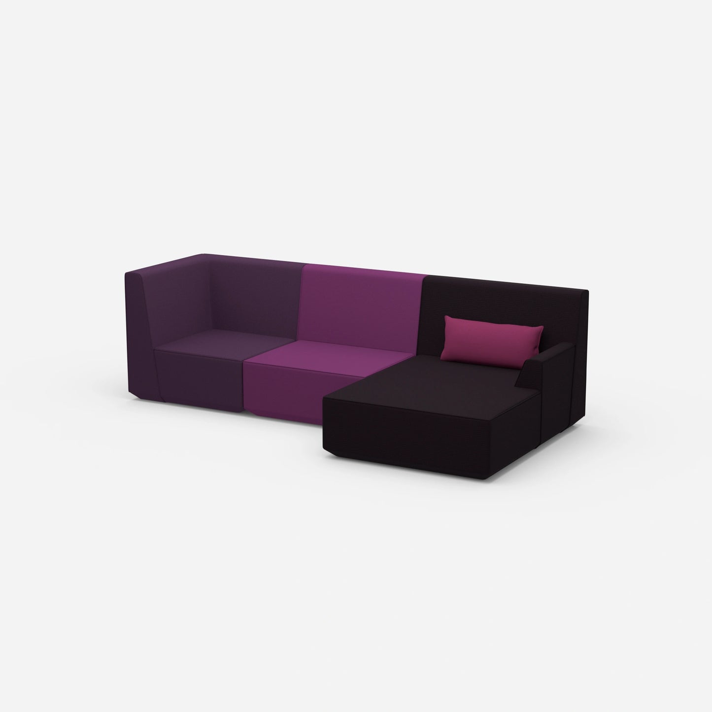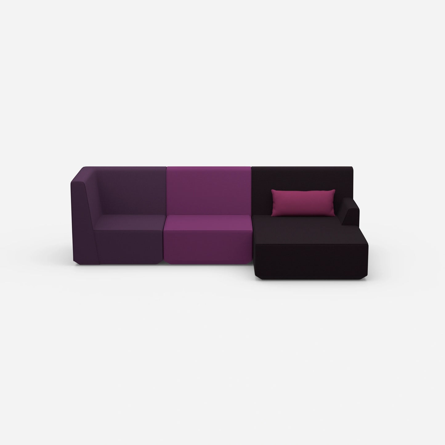 Differently configured Cubit sofa modules in a large, open space - shows the variety of possible combinations and colours